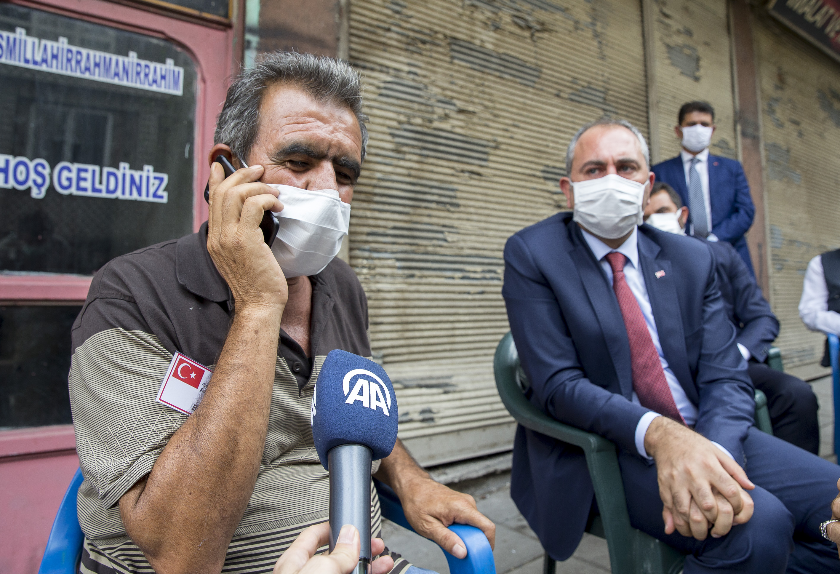 Çeşitli temaslarda bulunmak üzere Gaziantep'e gelen Adalet Bakanı Abdulhamit Gül, 6 Eylül'de şehit düşen Aslan'ın Kocatepe Mahallesi'nde oturan ailesini ziyaret etti.