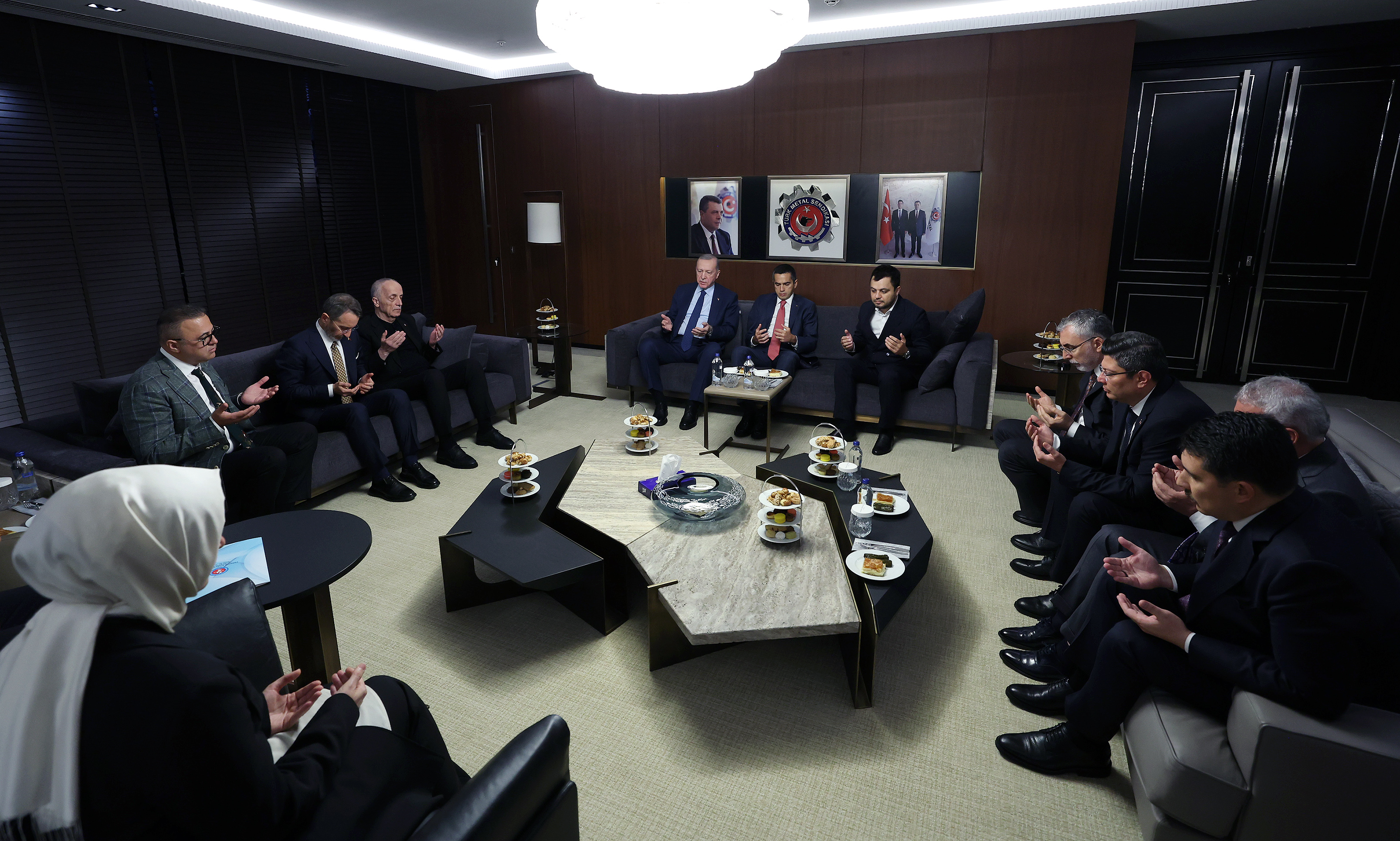 Yaklaşık 40 dakika süren ziyarette, Çalışma ve Sosyal Güvenlik Bakanı Vedat Işıkhan, Cumhurbaşkanlığı İletişim Başkanı Fahrettin Altun, TÜRK-İŞ Genel Başkanı Ergün Atalay, Türkiye İşveren Sendikaları Konfederasyonu Yönetim Kurulu Başkanı Özgür Burak Akkol ve Türk Metal Sendikası Genel Başkanı Uysal Altundağ hazır bulundu.