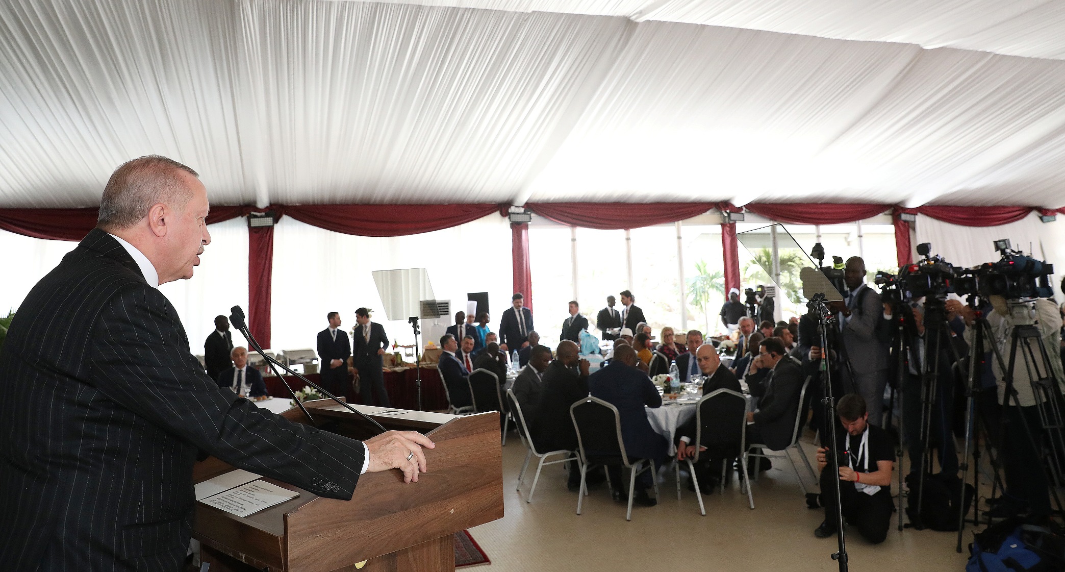 "Afrika'nın sorunlarına en iyi çözümlerin yine Afrikalı kardeşlerimiz tarafından geliştirilebileceğine inanıyoruz. Afrikalı kardeşlerimizin eski emperyalist güçlerin yol göstericiliğine ihtiyacı yoktur. Afrikalı dostlarımızın çıkar hesabı yapmadan iyi ve kötü gününde yanlarında olacak yol arkadaşlarına ihtiyacı var. Kıta ile bin yıllık kadim bağları olan Türkiye, Afrikalıların kader ortağıdır. Afrika ile ilişkilerimizin harcı samimiyettir, hasbiliktir, kardeşliktir. Hedefimiz birlikte kazanmak, birlikte başarmak, birlikte yol yürümektir."