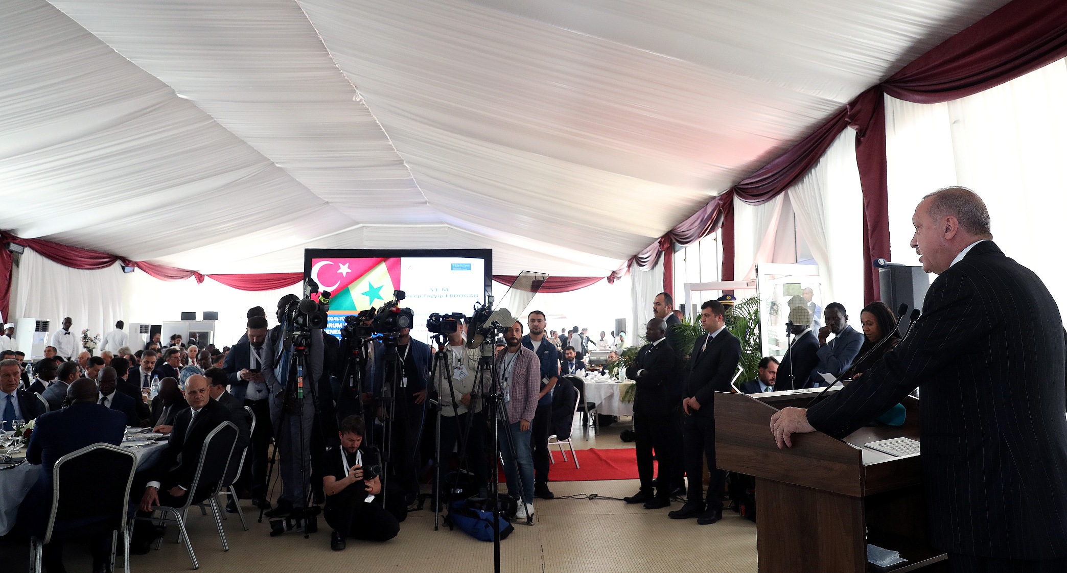 Cumhurbaşkanı Recep Tayyip Erdoğan, Senegal Cumhurbaşkanı Macky Sall ile Cumhurbaşkanlığı Sarayı'nda düzenlenen Türkiye-Senegal İş Forumu'na iştirak ederek, katılımcılara seslendi.