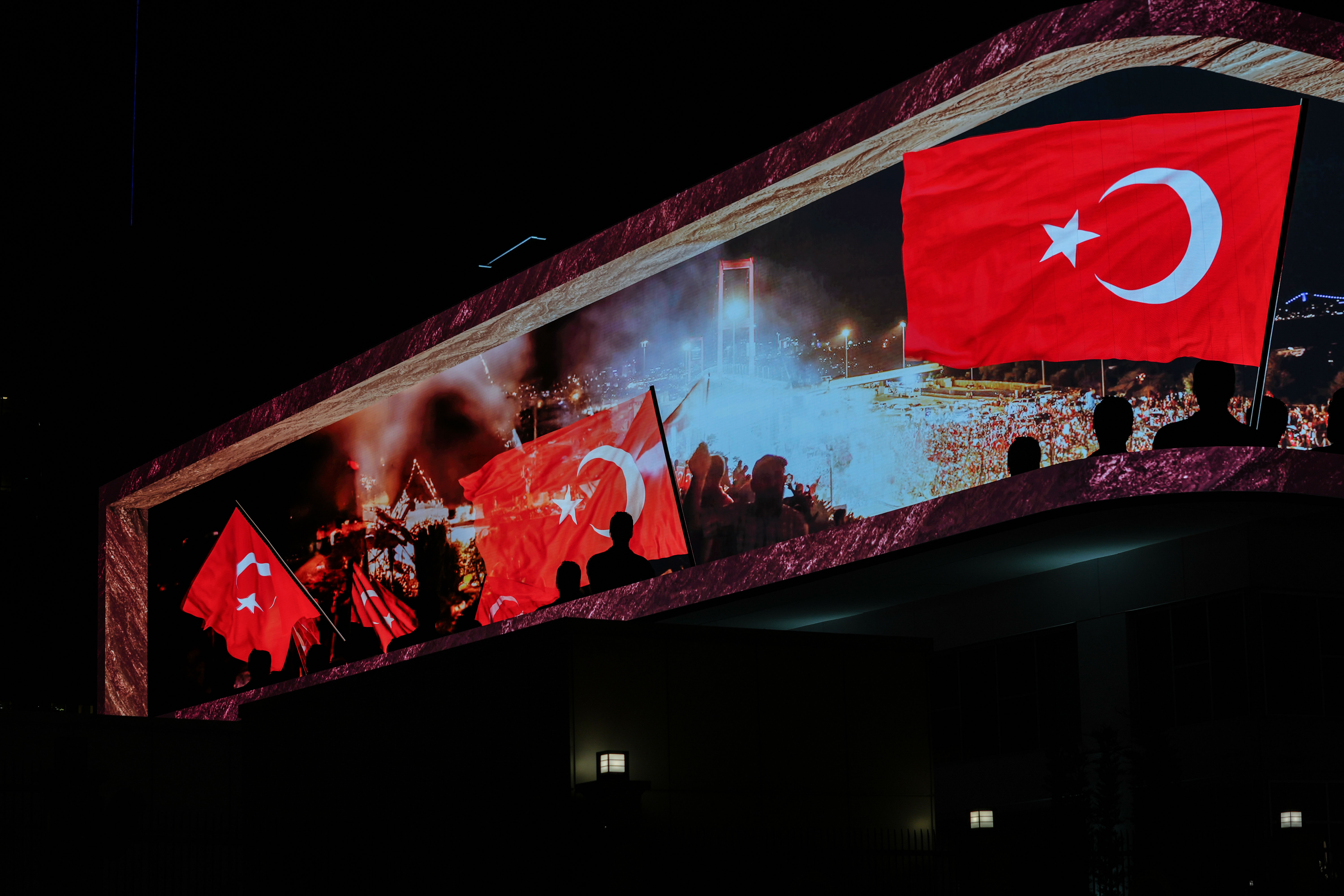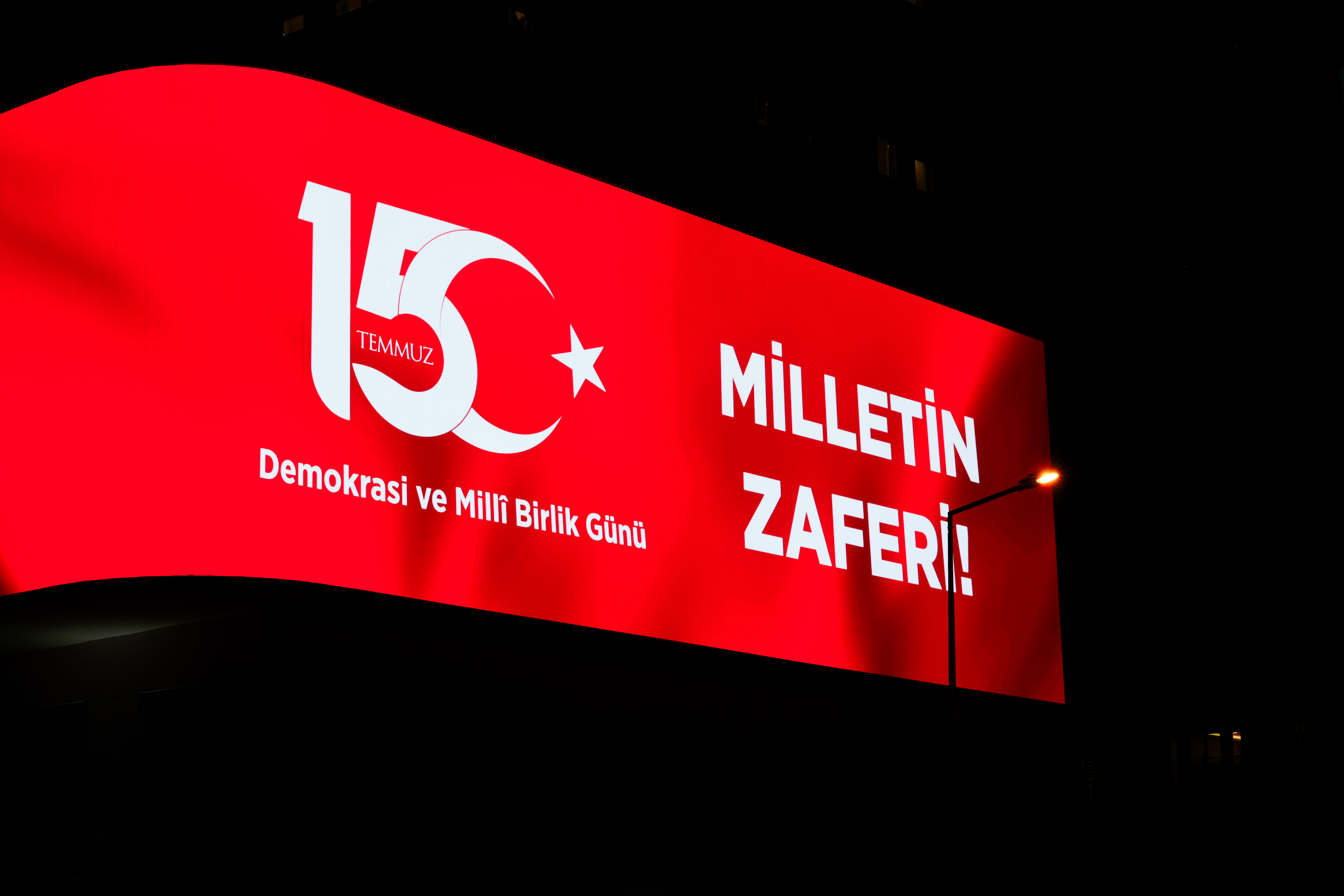 Cumhurbaşkanı Recep Tayyip Erdoğan'ın 15 Temmuz Demokrasi ve Millî Birlik Günü mesajı, Cumhurbaşkanlığı İletişim Başkanlığımız dijital gösterim ekranında yayınlandı.