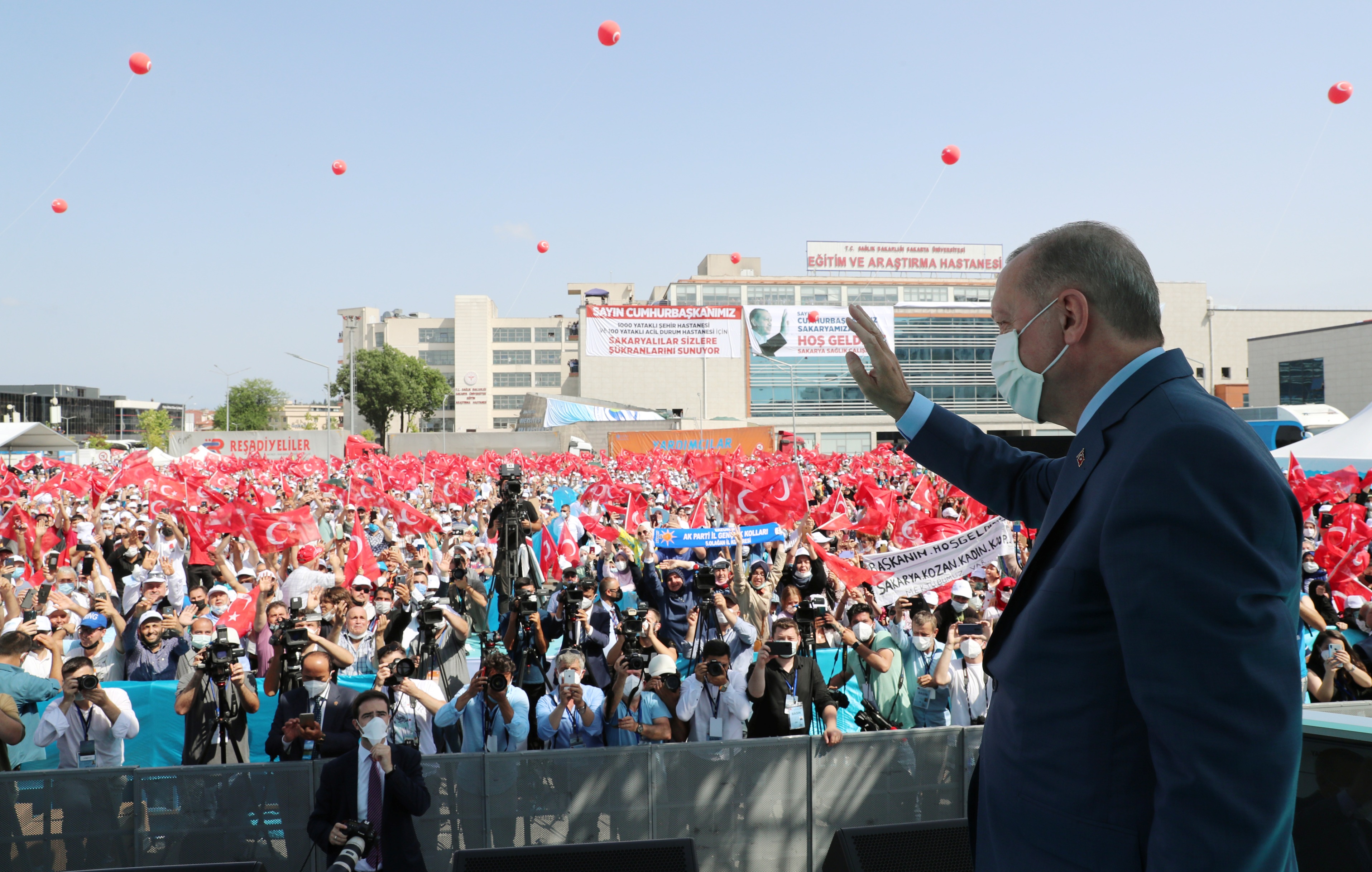 "Sakarya'ya son 19 yılda 30 katrilyon eski rakamla, 30 milyar liralık yatırım yaptık. Eğitimde şehrimize 3 bin 366 adet yeni derslik kazandırdık. İkinci devlet üniversitesi olan Sakarya Uygulamalı Bilimler Üniversitesini kurduk. Üniversite öğrencilerimiz için 10 bin 639 kişi kapasiteli yurt binaları açtık. Aralarında 28 bin seyirci kapasiteli stadyumumuzun da olduğu 44 adet spor tesisi inşa ettik. Sakaryalı ihtiyaç sahiplerine 2 milyar lirayı aşan sosyal yardım yaptık. Sağlıkta toplamda 155 yataklı 19'u hastane olmak üzere 52 adet sağlık tesisimizi şehrimize kazandırdık. Halen 10 adet sağlık tesisimizin inşası sürüyor. İnşallah Sakarya'mıza 1000 yataklı bir şehir hastanesi de kazandırıyoruz. Bu hastanenin ihalesi tamamlandı. İnşallah yakında yapımına başlıyoruz. Şehir hastanesiyle birlikte ayrıca 100 yataklı acil durum hastanesi de inşa ediyoruz."