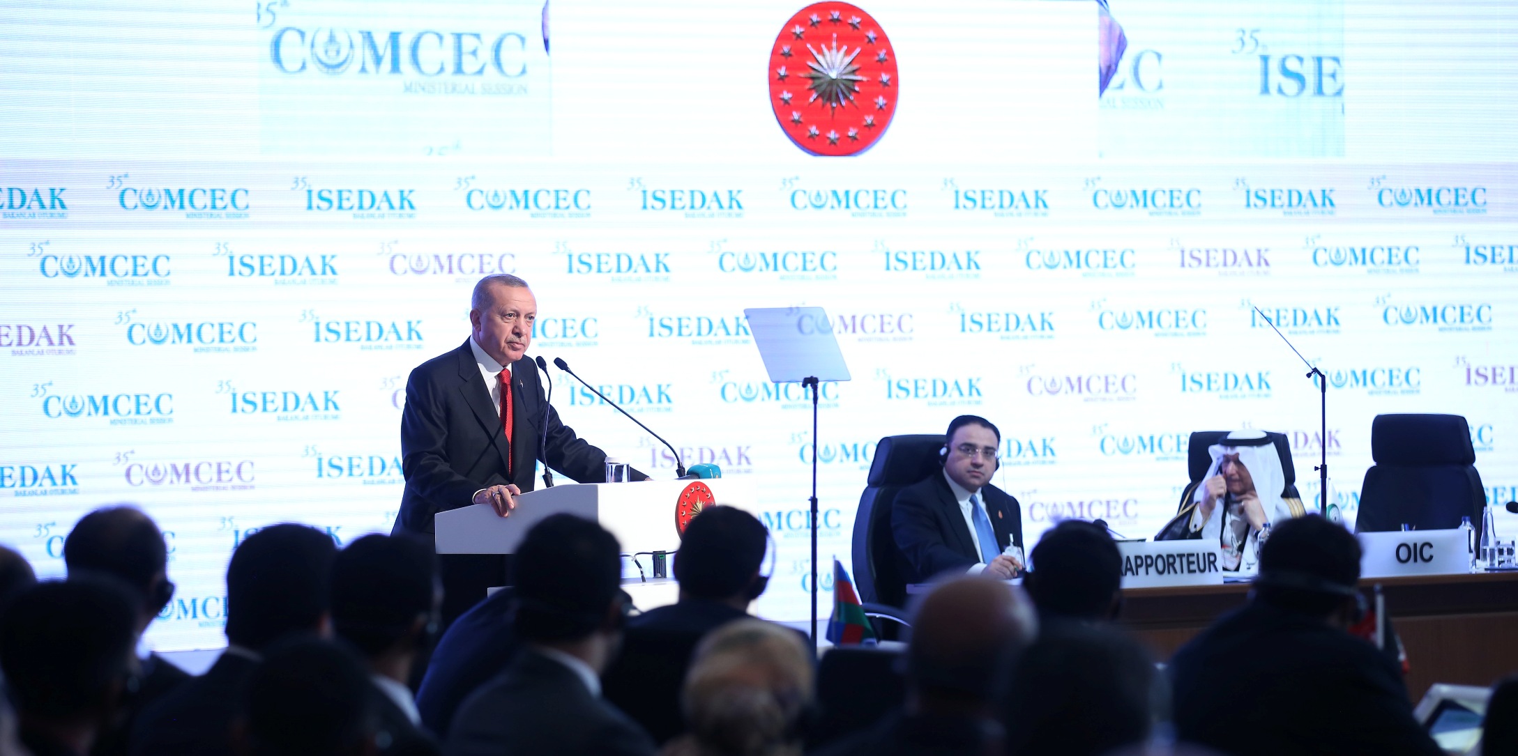 Cumhurbaşkanı Recep Tayyip Erdoğan, İstanbul Kongre Merkezinde düzenlenen 35. İSEDAK Toplantısı Bakanlar Açılış Oturumu'nda yaptığı konuşmada, gönül coğrafyasının farklı köşelerinden gelen katılımcıları medeniyetlerin, kıtaların ve kültürlerin buluşma noktası İstanbul'da ağırlamaktan büyük bir memnuniyet duyduğunu dile getirdi.