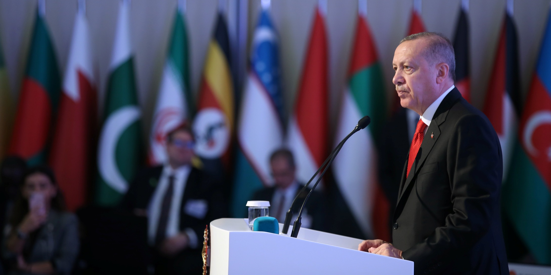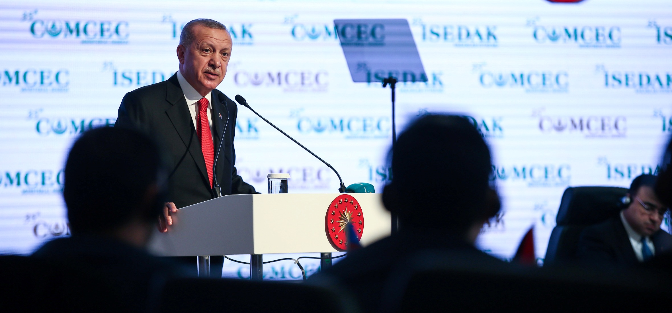 Cumhurbaşkanı Erdoğan yaptığı konuşmada, İslam dünyası dahil tüm insanlığın kaderinin, Birleşmiş Milletler Güvenlik Konseyi (BMGK) üyesi 5 ülkenin insafına terk edildiğini anlatarak, İslam aleminin kendi geleceği, istikbali üzerinde özgürce karar alma ve uygulama hakkı bulunmadığını söyledi.