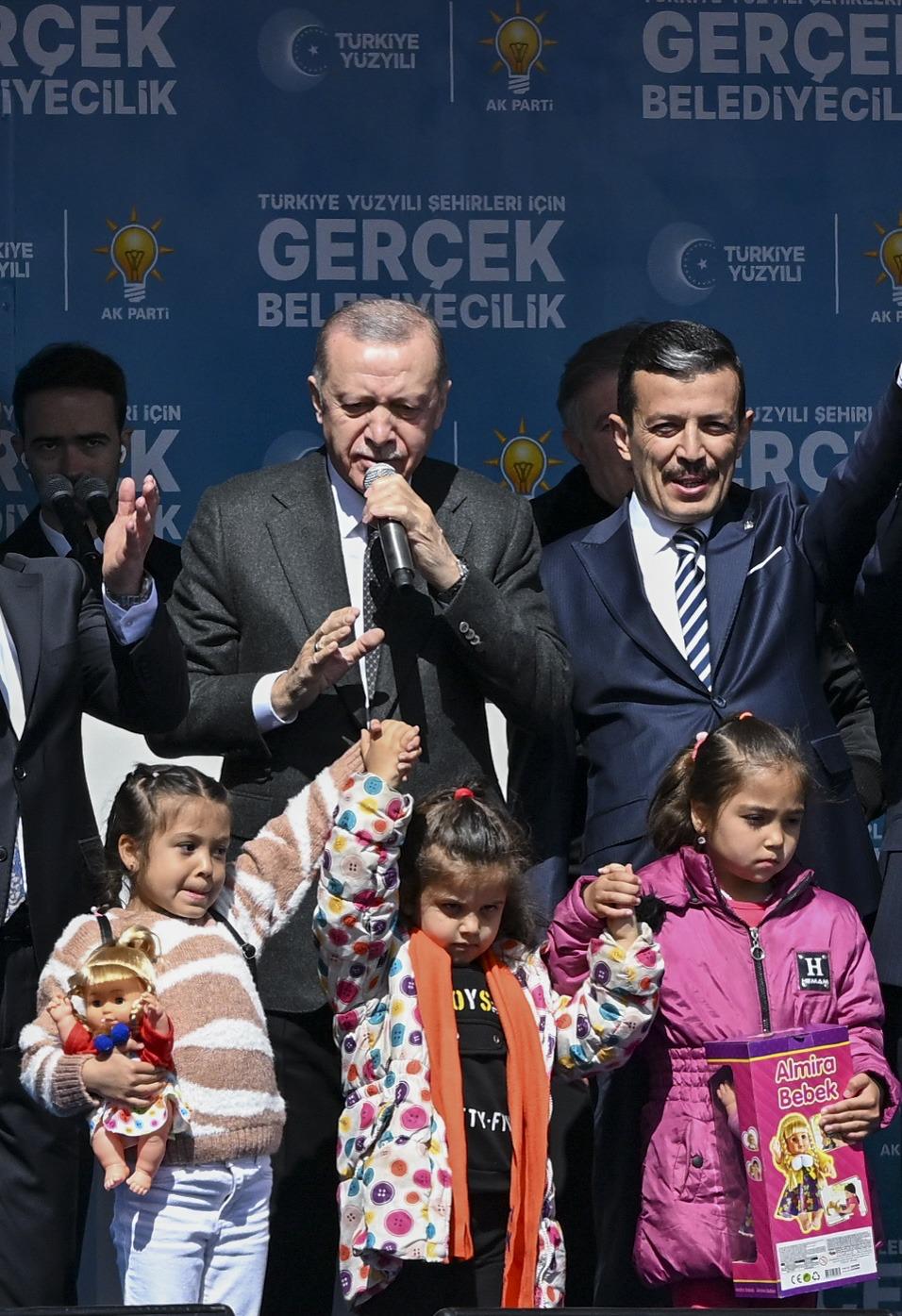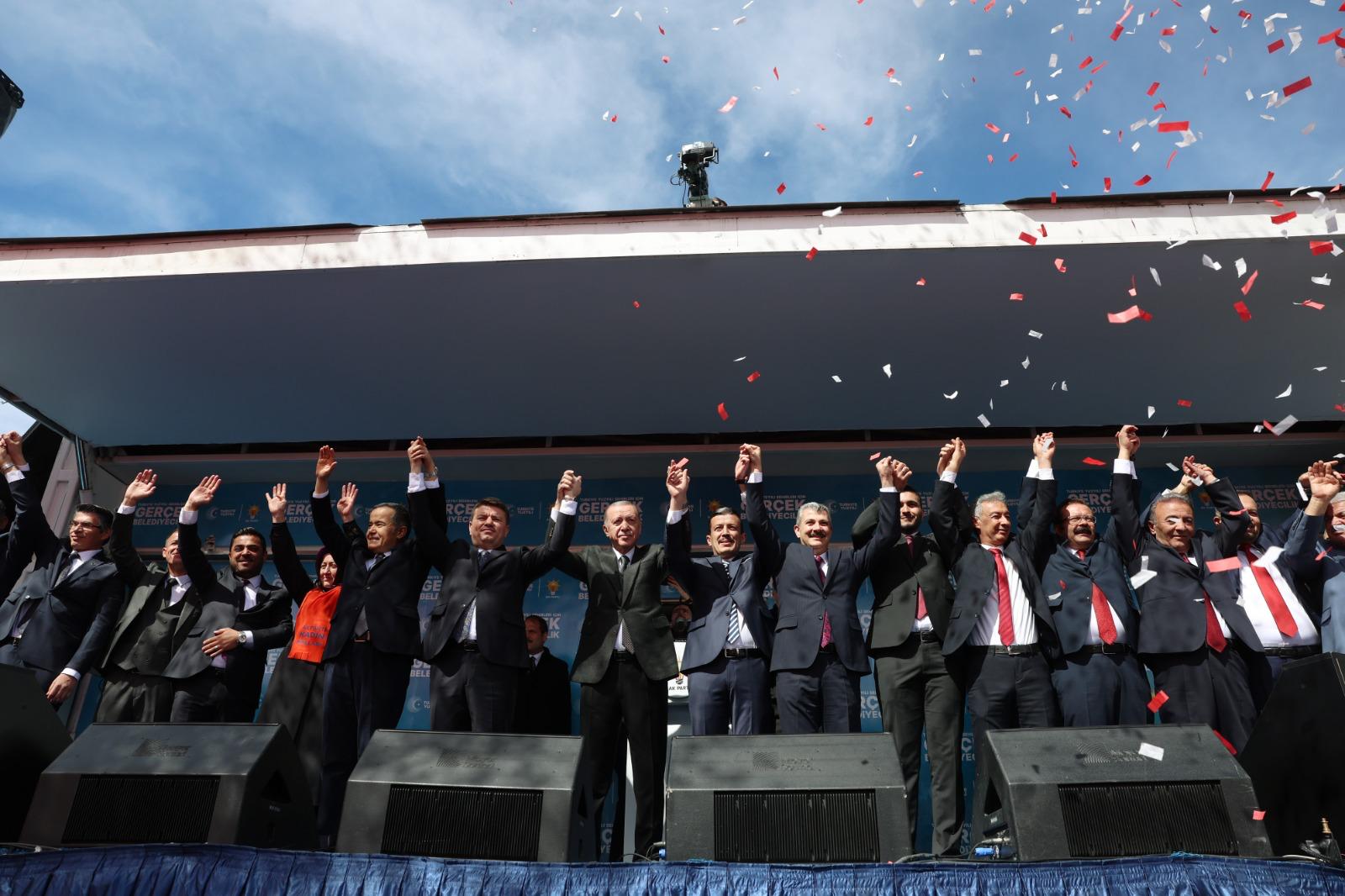 Cumhurbaşkanı Erdoğan, "Cumhurbaşkanı olarak bu kardeşiniz yerel yönetimlerle el ele verecek ve yoğun bir şekilde hizmetlerimizi, illerimize, ilçelerimize, beldelerimize kadar ulaştıracağız. Bu duygularla merkez ve ilçe belediye başkan adaylarımızı ben, sizlere emanet ediyorum. Onlara sahip çıkıyorsunuz değil mi, sahip çıkacaksınız değil mi? Sonradan aramıza karışmak isteyenler vardı ya, onlara gerekli dersi sandıklarda vereceksiniz değil mi?" diye konuştu.
