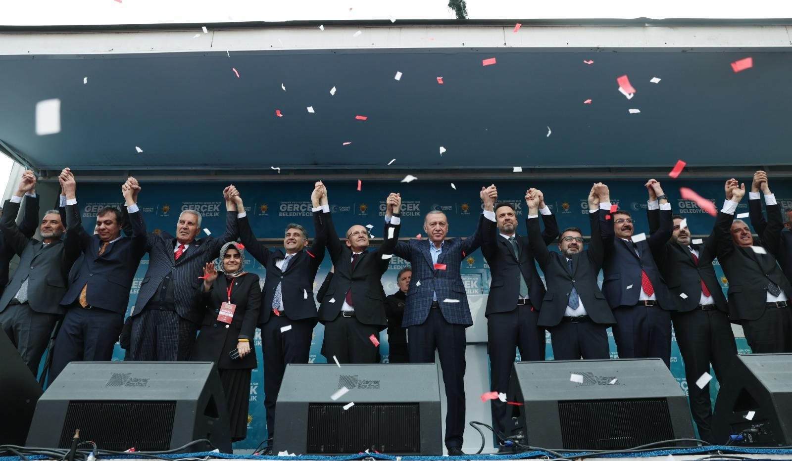 Cumhurbaşkanı Erdoğan, mitingdeki konuşmasının ardından partisinin Batman il ve ilçe belediye başkan adaylarını sahneye çağırarak vatandaşları selamladı.