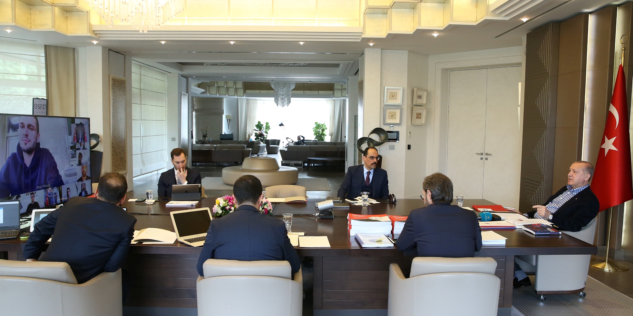 Cumhurbaşkanı Erdoğan, Tarabya'daki Huber Köşkü'nde saat 13.00'te milli futbolcularla video-konferans yöntemiyle bir araya geldi. Görüşmede, İletişim Başkanı Fahrettin Altun ve Cumhurbaşkanlığı Sözcüsü İbrahim Kalın da yer aldı.