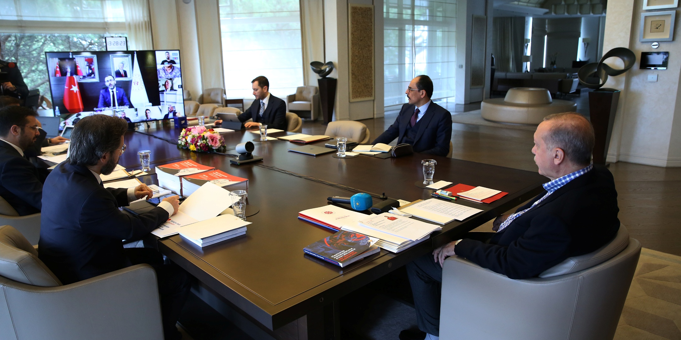 Cumhurbaşkanı Recep Tayyip Erdoğan, A Milli Futbol Takımı oyuncularıyla video-konferans yöntemiyle görüşme gerçekleştirdi.