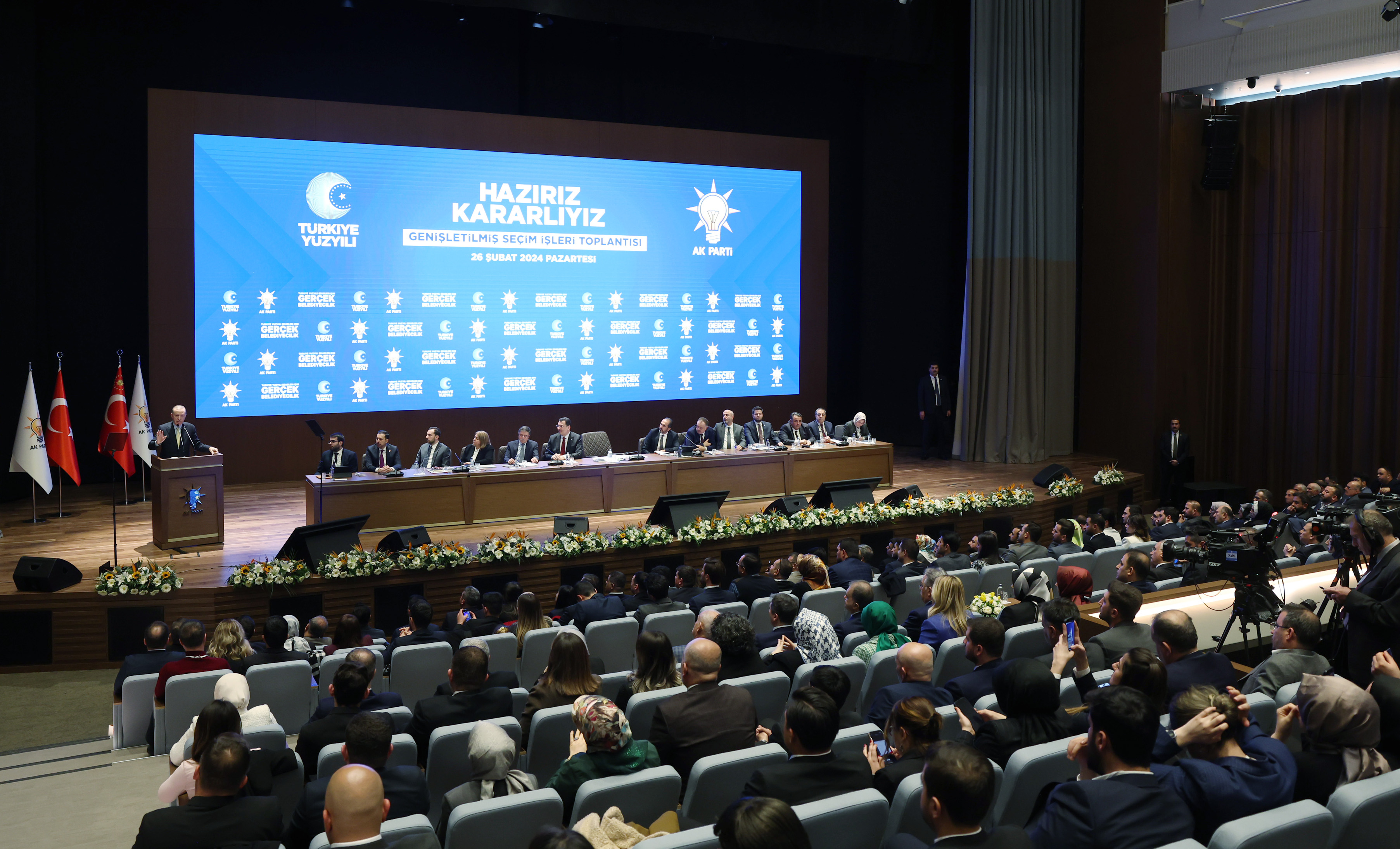 Cumhurbaşkanı Recep Tayyip Erdoğan, AK Parti Kongre Merkezi'nde partisinin Genişletilmiş İl Seçim İşleri Başkanları Toplantısı'na katıldı. Cumhurbaşkanı Erdoğan, burada yaptığı konuşmada, partisinin genel merkezine ilave olarak inşa edilen Seçim Koordinasyon Merkezi'nin ülkeye, millete ve şehirlere yapılacak hizmetlerin çıtasını yükseltme iradelerinin bir sembolü olduğunu söyledi.