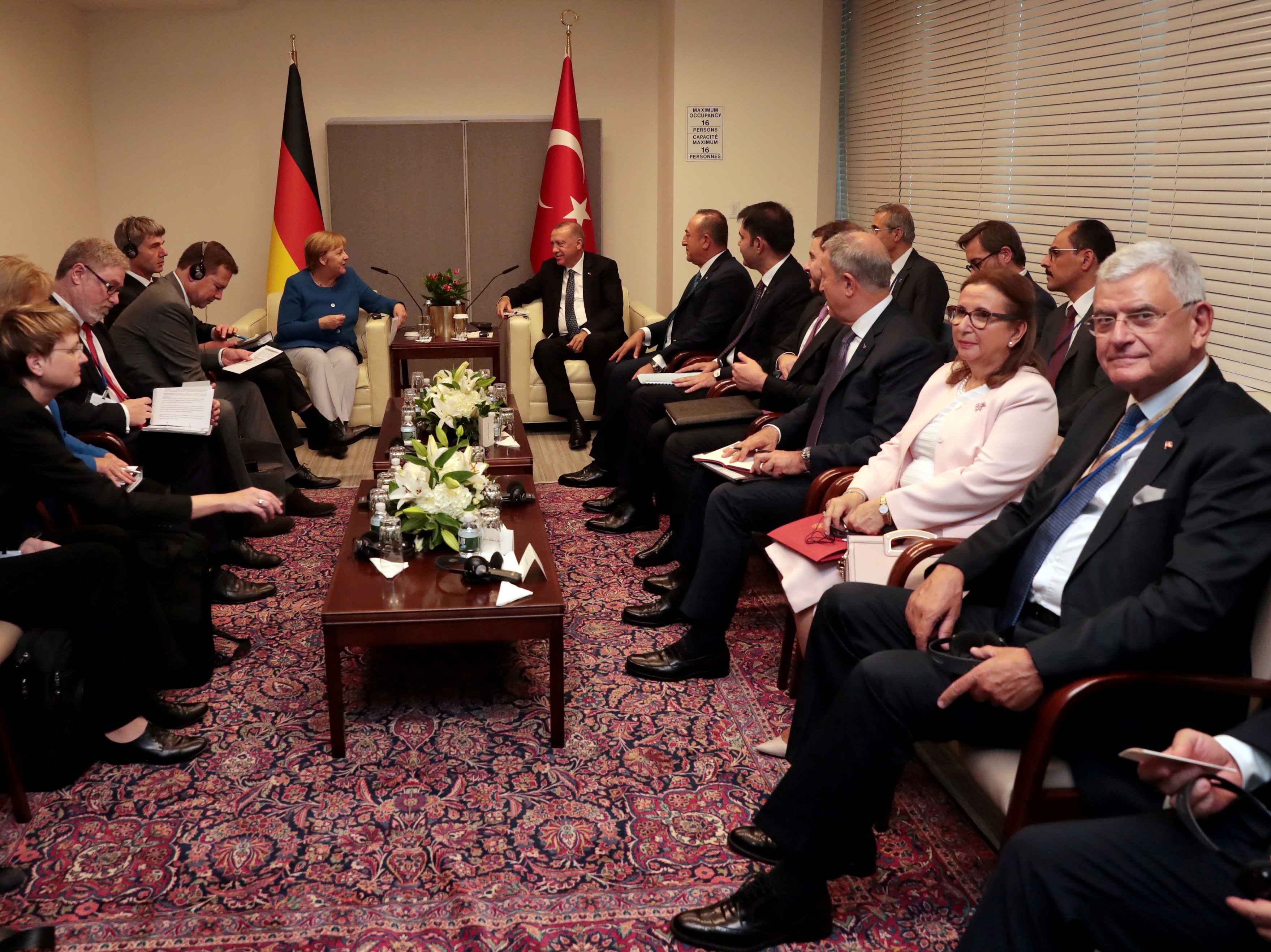 BM Genel Merkezi'nde basına kapalı gerçekleşen görüşmede, Dışişleri Bakanı Mevlüt Çavuşoğlu, Çevre ve Şehircilik Bakanı Murat Kurum, Hazine ve Maliye Bakanı Berat Albayrak, Milli Savunma Bakanı Hulusi Akar, Ticaret Bakanı Ruhsar Pekcan, TBMM Dışişleri Komisyonu Başkanı Volkan Bozkır, İletişim Başkanı Fahrettin Altun ve Cumhurbaşkanlığı Sözcüsü İbrahim Kalın da hazır bulundu.