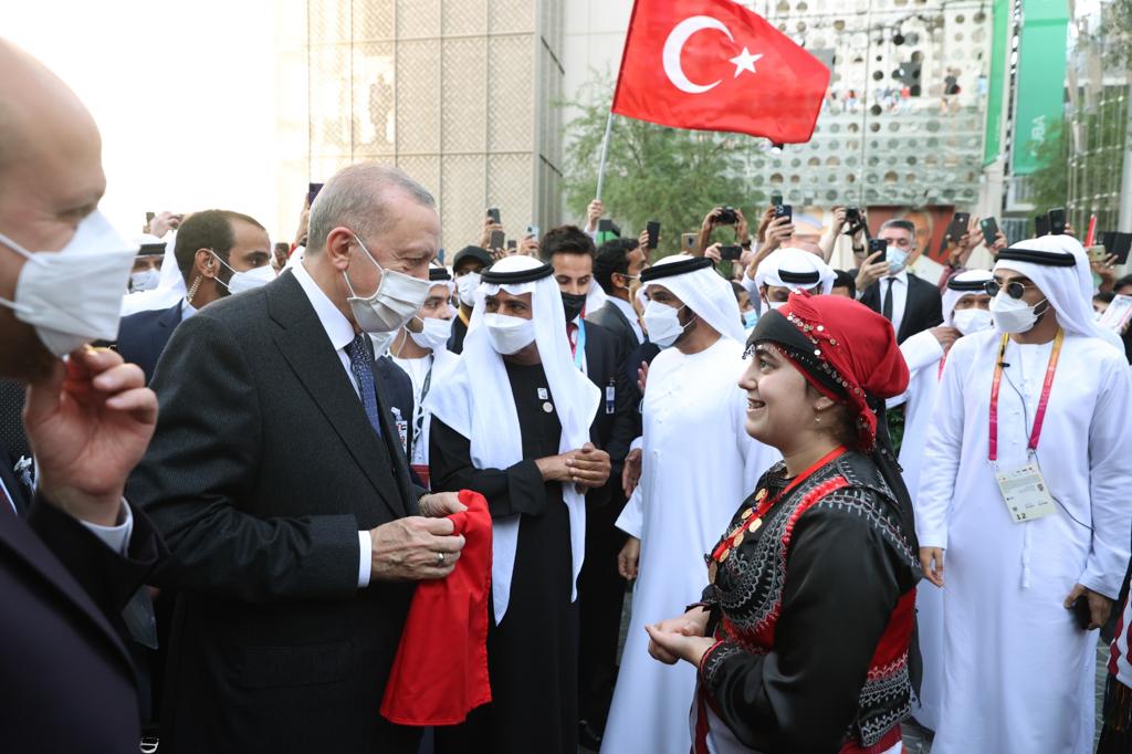 Cumhurbaşkanı Erdoğan'ın geçişi esnasında mehteran takımı da konser verdi. Dubai EXPO alanındaki ziyaretçilerin de yoğun ilgi gösterdiği Cumhurbaşkanı Erdoğan, Türkiye'nin sergi alanına gelişinde horonla karşılandı.