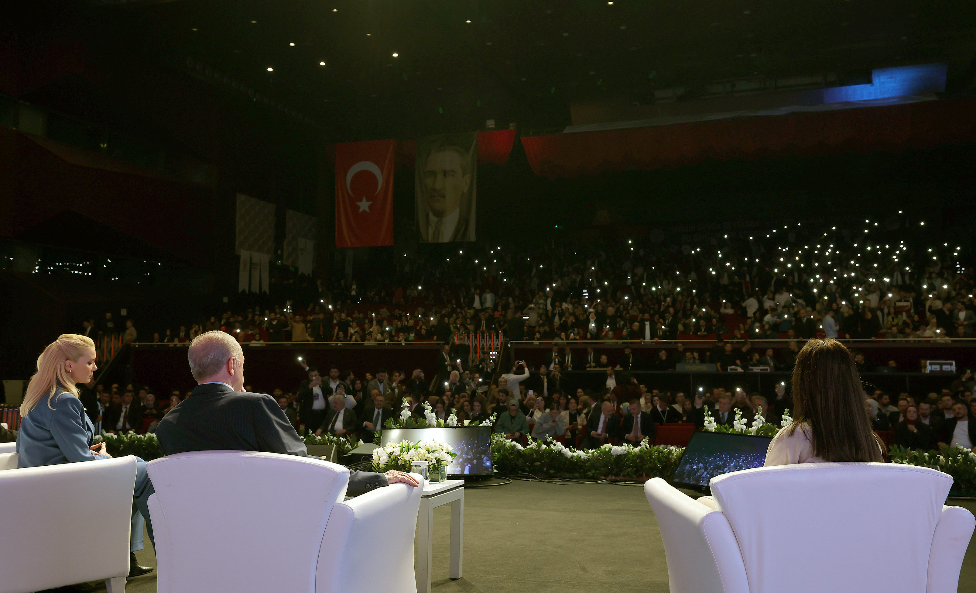 Moderatör Pelin Çift'in "Sayın Cumhurbaşkanım gençler, buradakiler 21-22 yaşında. Keşke bu yaşlarda olsaydım dediniz mi?" sorusuna Cumhurbaşkanı Erdoğan, "Nasıl istemeyiz?" karşılığını verdi.