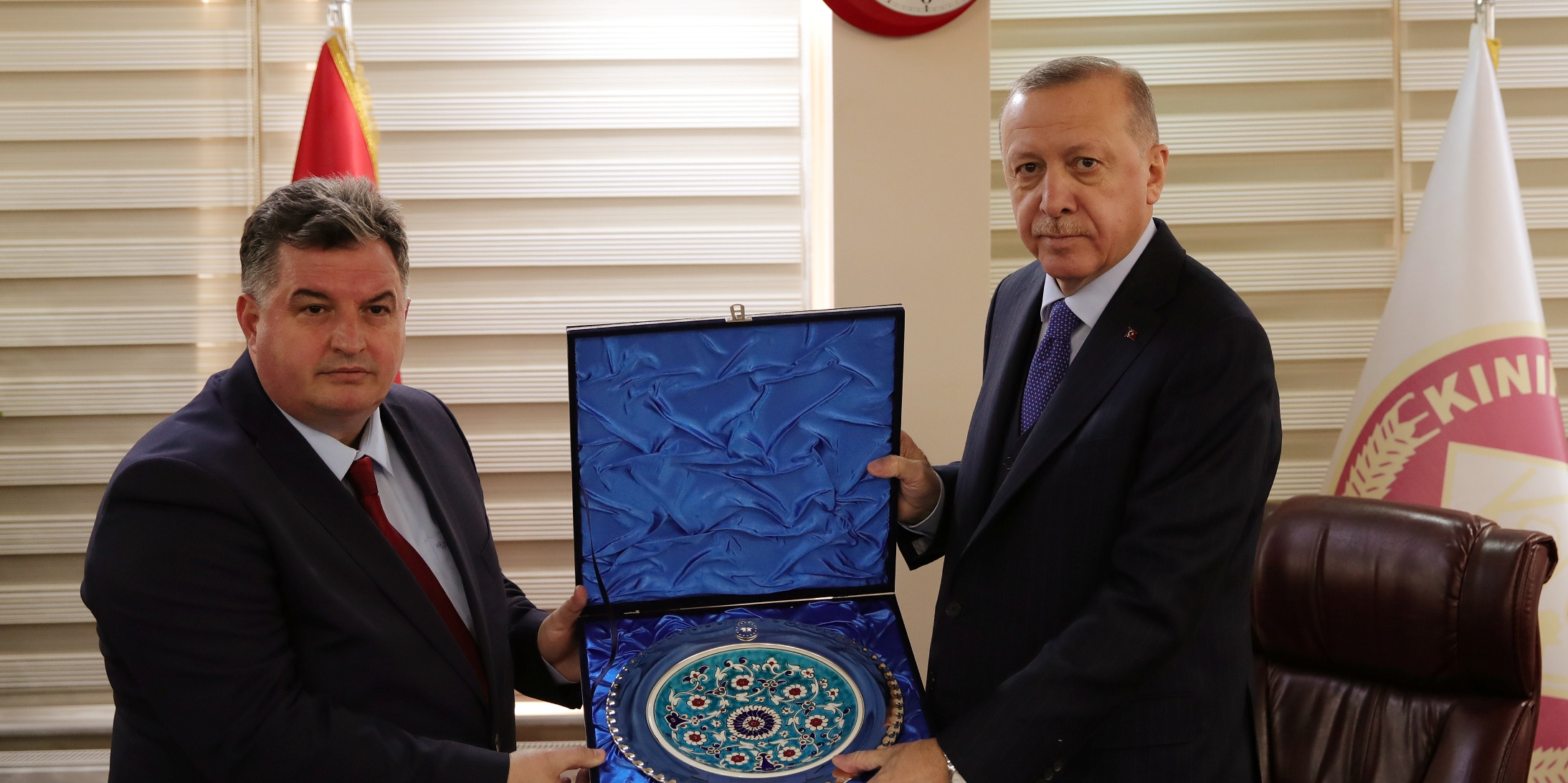 Belediye Başkanı Doğruer, ziyaret sonunda Cumhurbaşkanı Erdoğan'a hediye takdim etti.