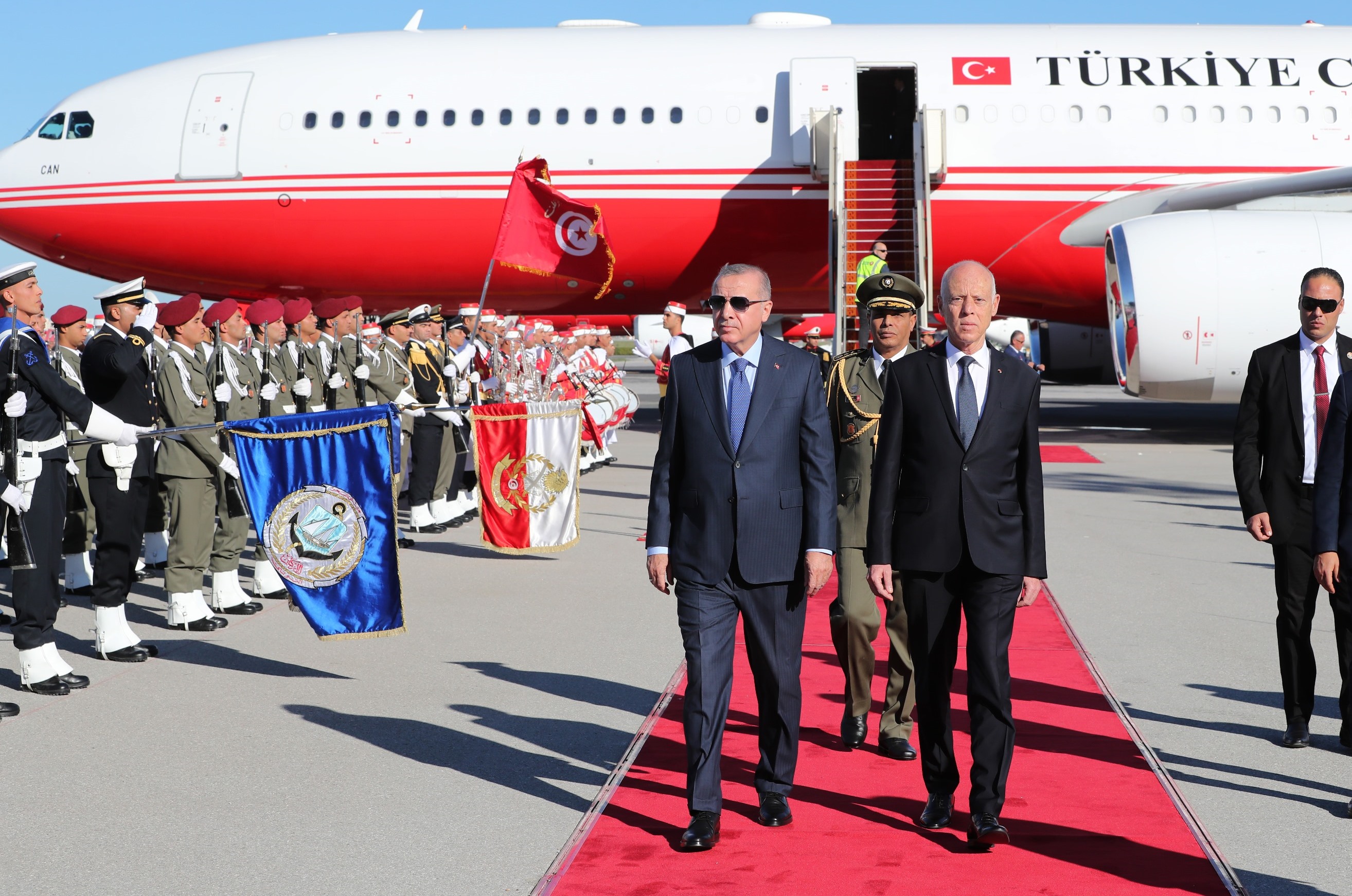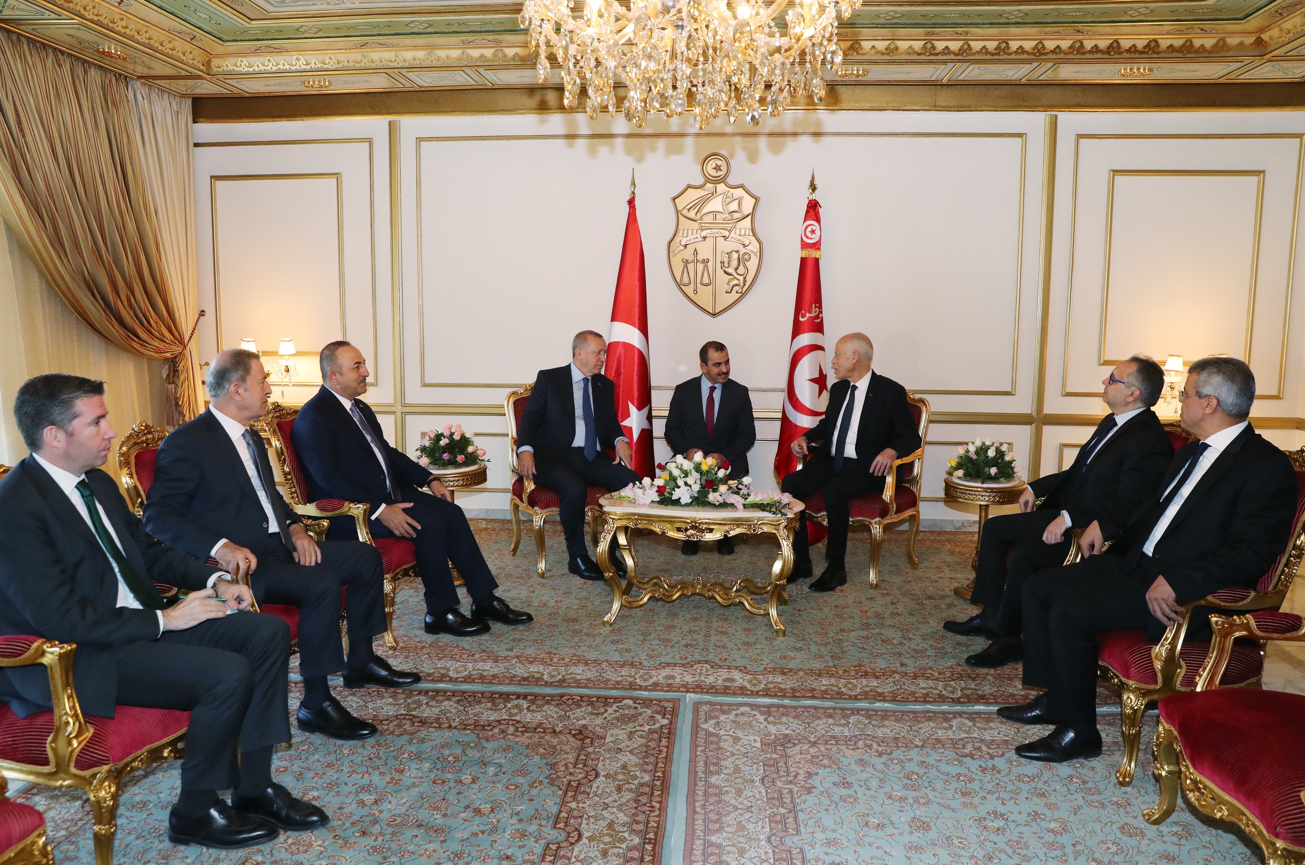Dar kapsamlı tutulan Tunus ziyaretinde Cumhurbaşkanı Erdoğan'a, Mevlüt Çavuşoğlu, Hulusi Akar, Fahrettin Altun ve İbrahim Kalın eşlik etti.