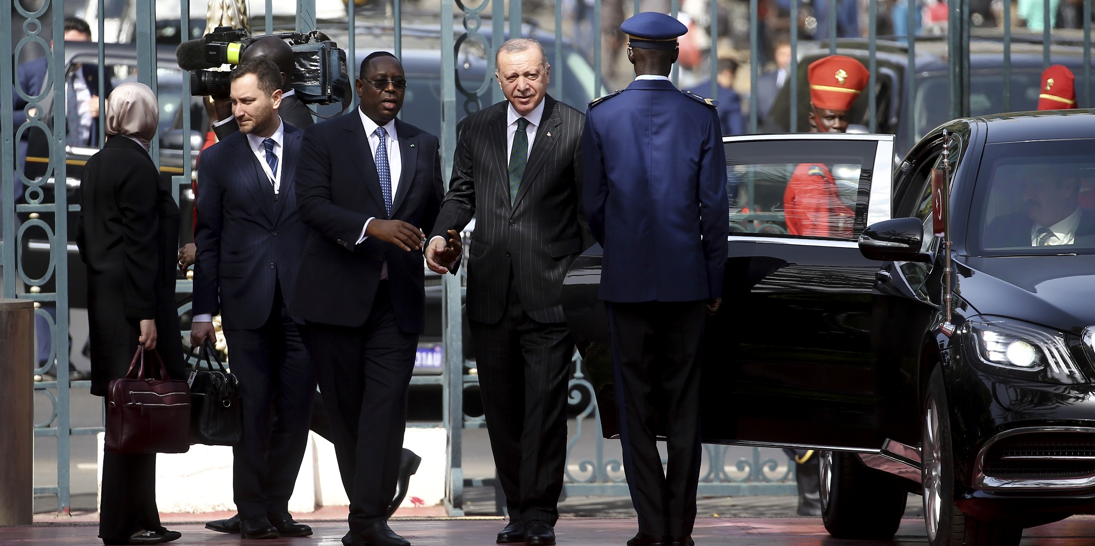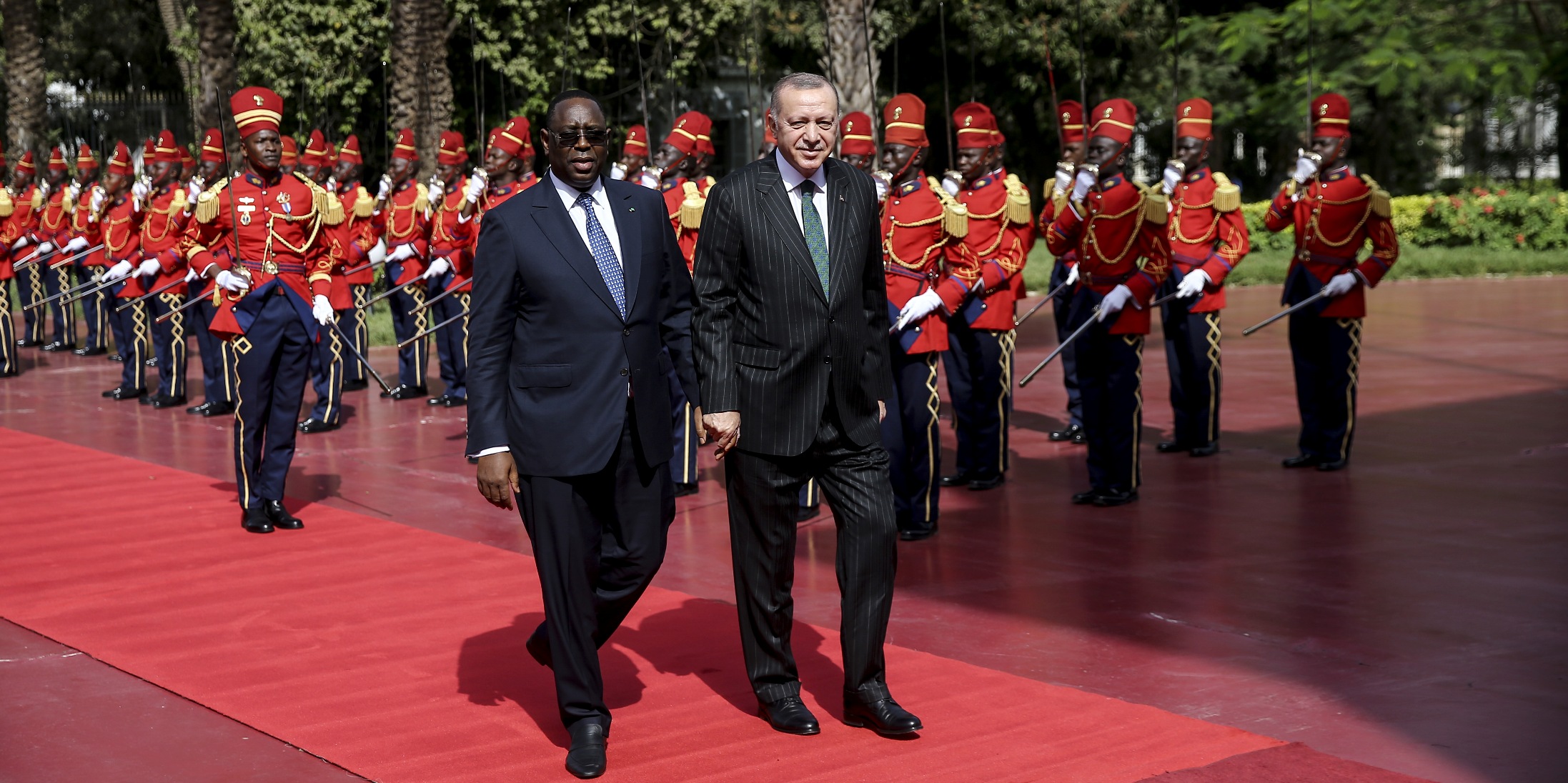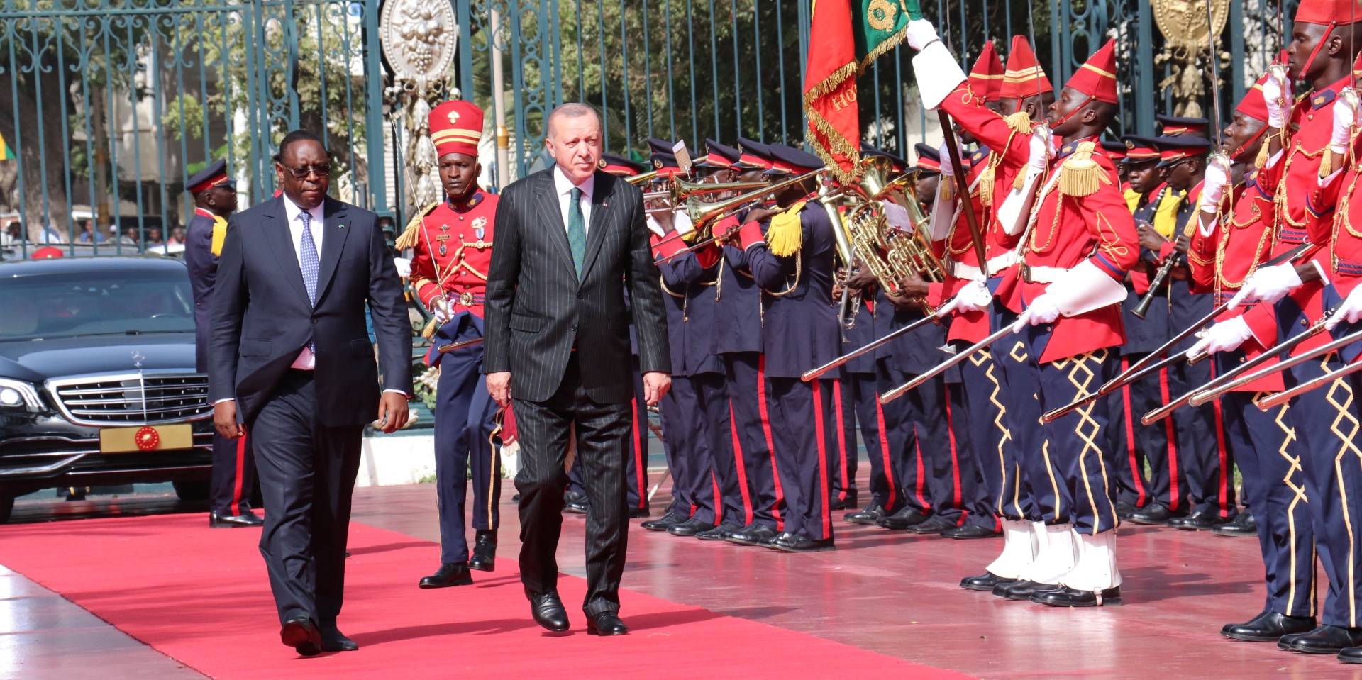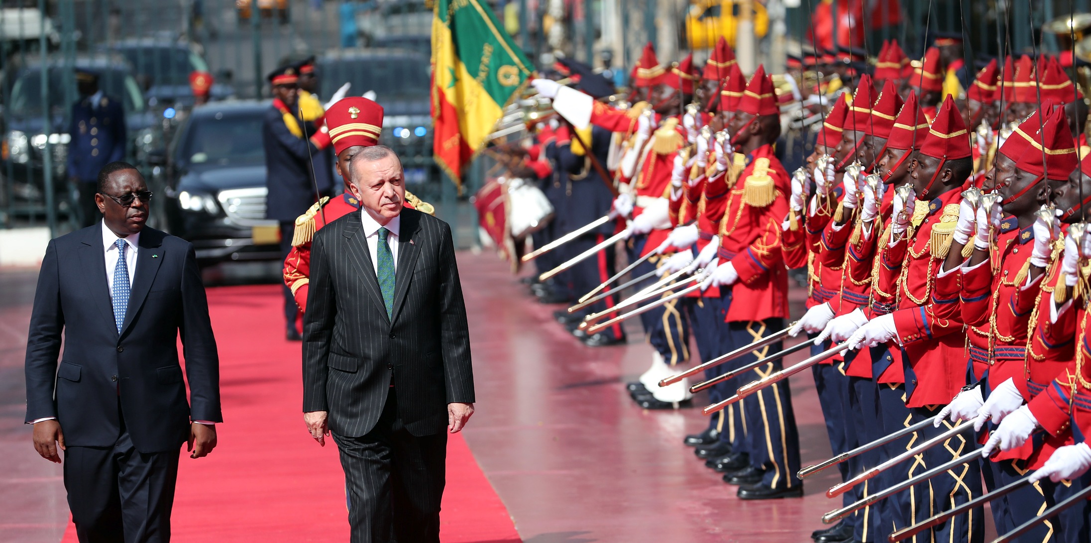 Cumhurbaşkanı Recep Tayyip Erdoğan, Senegalli mevkidaşı Macky Sall'in davetine icabetle geldiği başkent Dakar'da resmî törenle karşılandı.