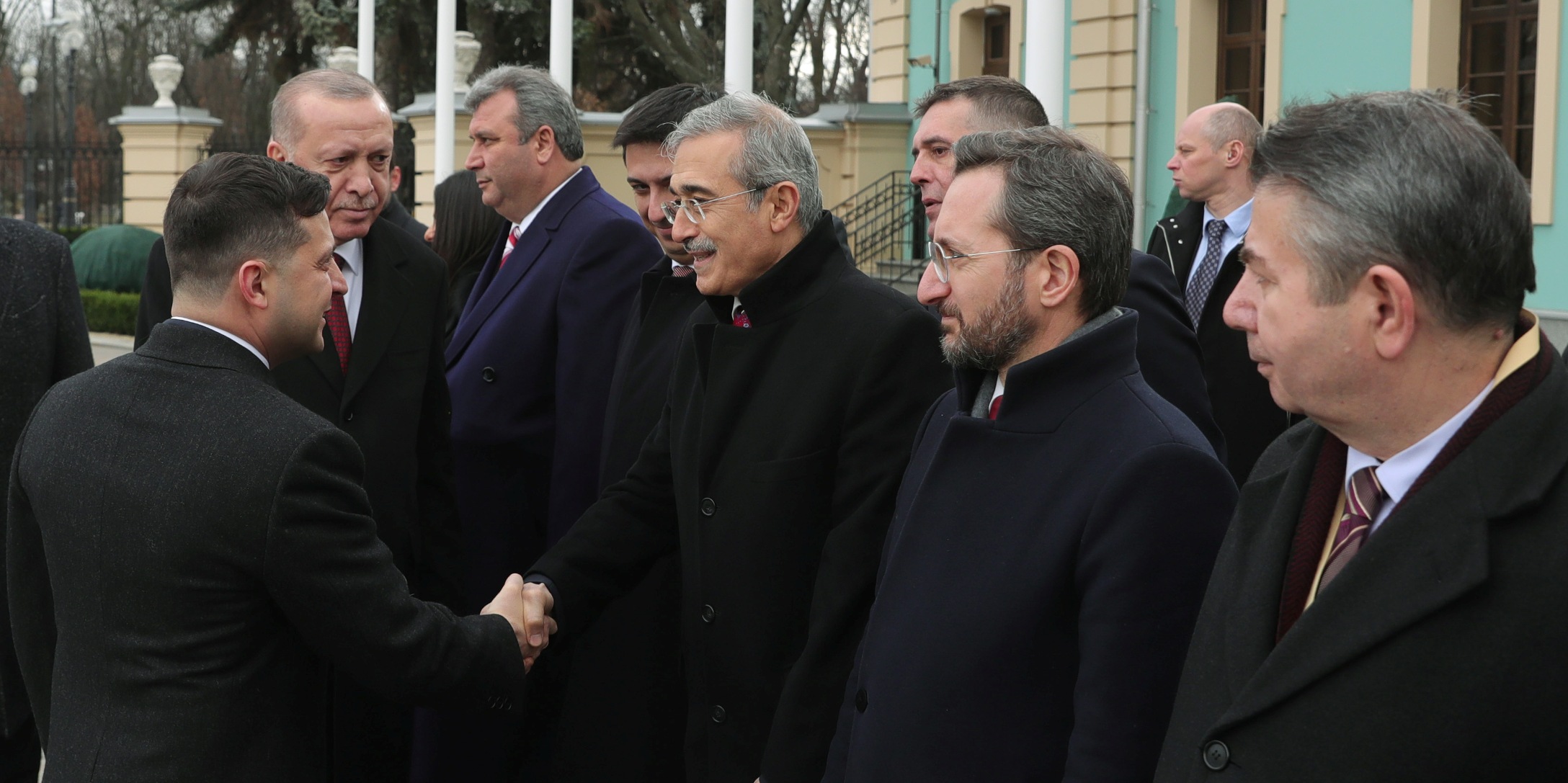 Cumhurbaşkanı Erdoğan ile Adalet Bakanı Abdulhamit Gül, Hazine ve Maliye Bakanı Berat Albayrak, Ticaret Bakanı Ruhsar Pekcan, İletişim Başkanı Fahrettin Altun, Cumhurbaşkanlığı Sözcüsü İbrahim Kalın da Kiev'e ulaştı.