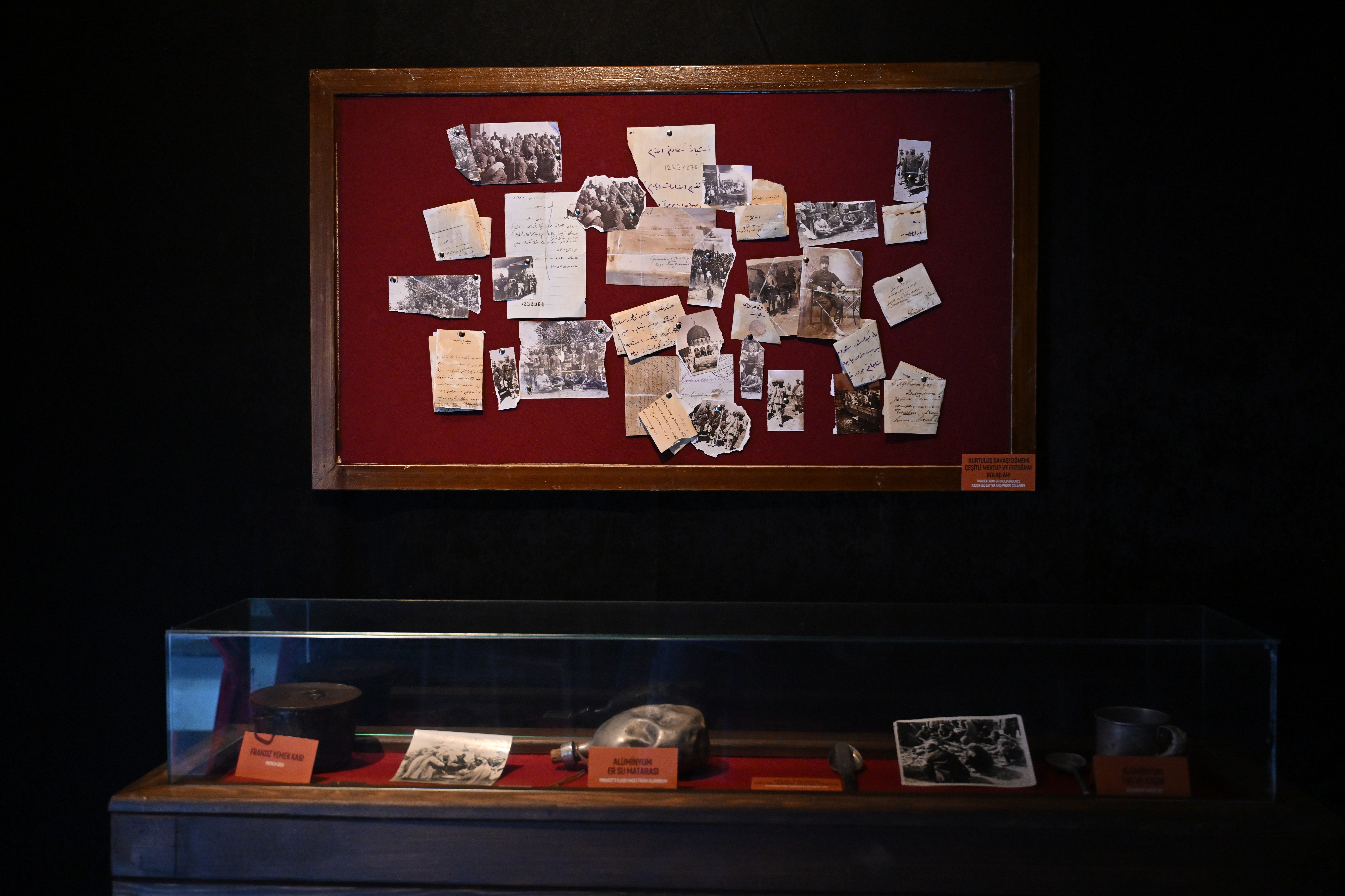 Filistin Cephesi’nde savaşan ve orada esir düşen askerlerin fotoğraf, mektup, esir kartı ve eşyasına özel bir bölümün ayrıldığı sergi, insanlık tarihinin hüzünlü kafiyelerine dikkati çekiyor.