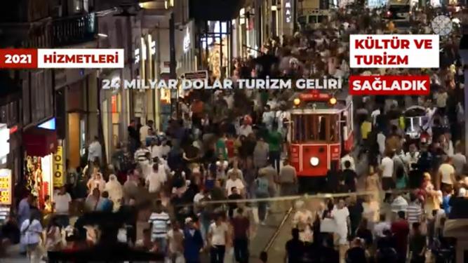 Videoda, 2021'de ekonomi, eğitim, enerji, sağlık, ulaştırma, tarım, çevre, kültür sanat, spor, dış politika, sosyal politikalar ve terörle mücadele alanlarındaki önemli icraat ve faaliyetlere ilişkin görüntüler yer aldı.