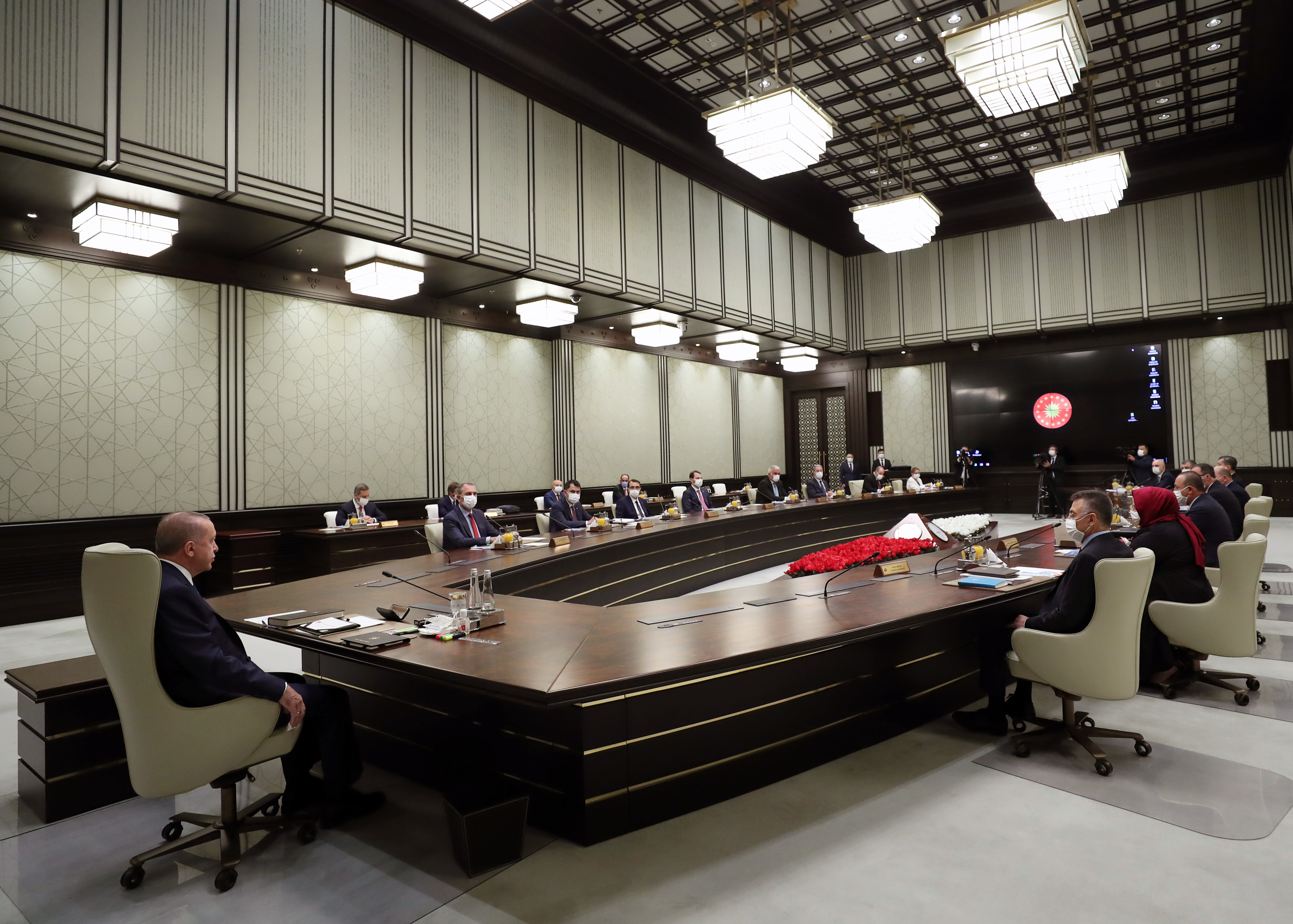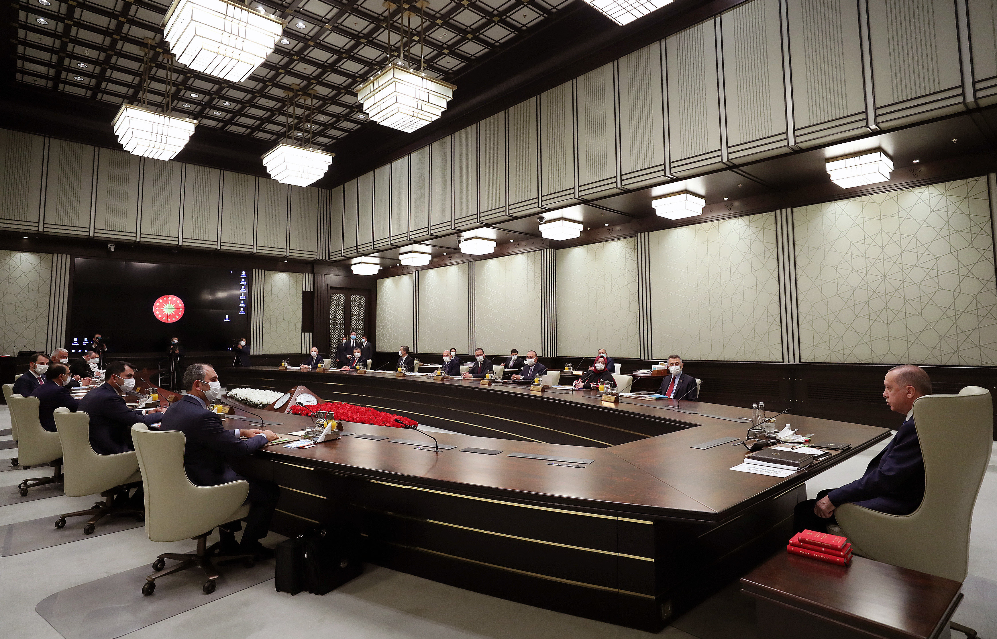 Cumhurbaşkanlığı Kabinesi, Cumhurbaşkanı Recep Tayyip Erdoğan başkanlığında toplandı. Cumhurbaşkanlığı Külliyesi'ndeki toplantı, 4 saat 10 dakika sürdü.