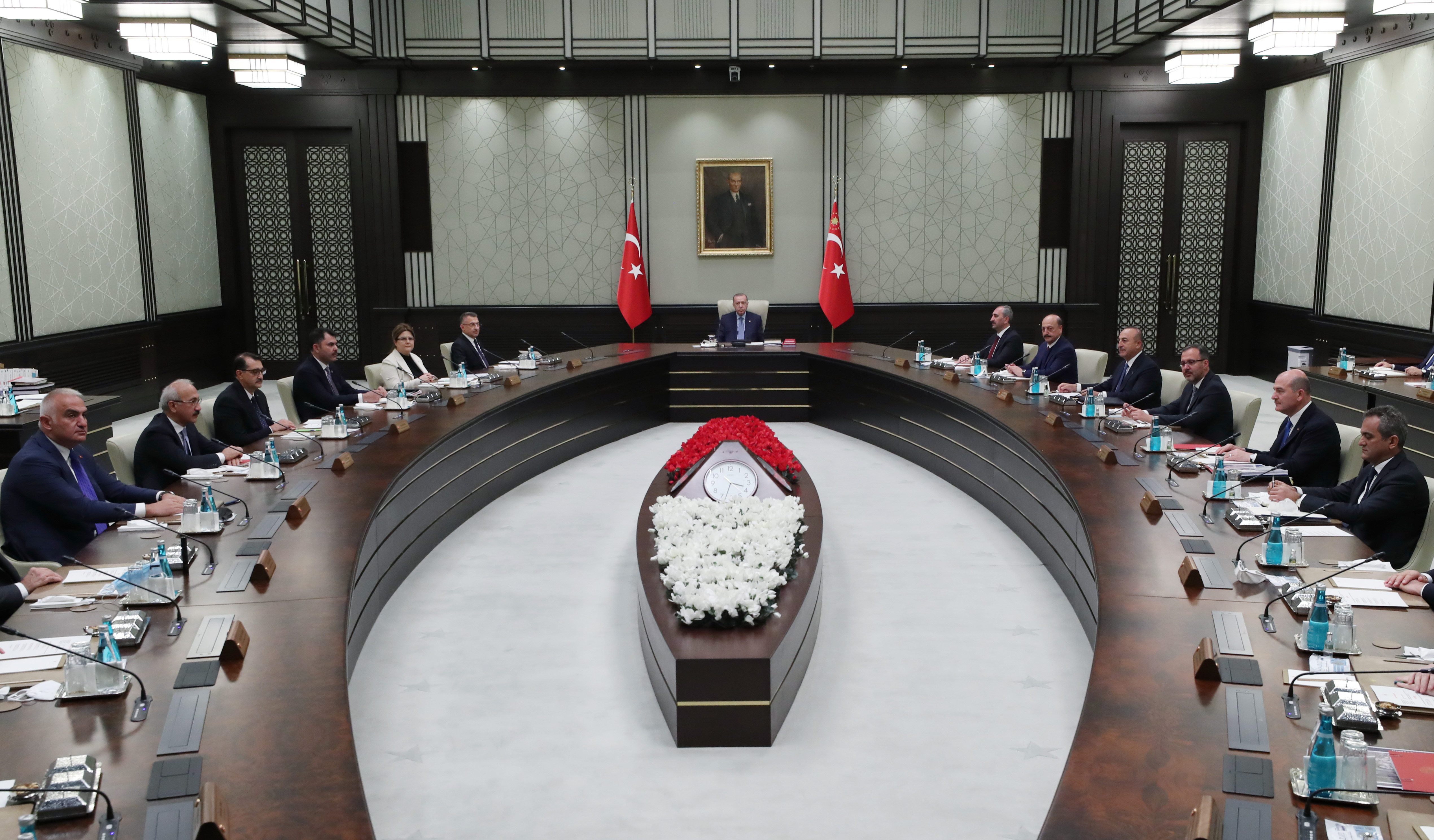Cumhurbaşkanlığı Kabinesi, Cumhurbaşkanı Recep Tayyip Erdoğan başkanlığında toplandı. Cumhurbaşkanlığı Külliyesi'nde, saat 15.35'te başlayan toplantı 3 saat 40 dakika sürdü.