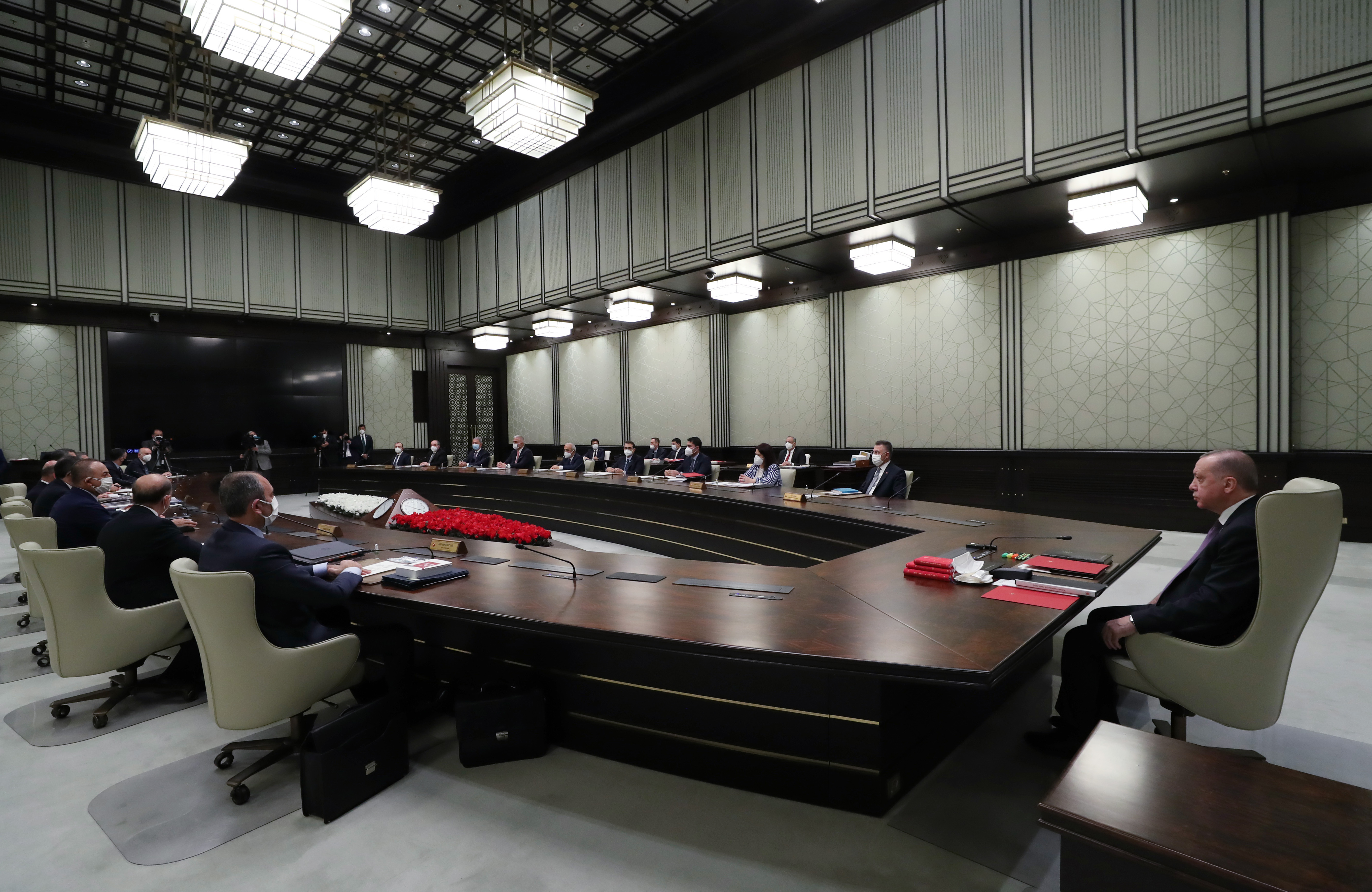 Cumhurbaşkanlığı Kabinesi, Cumhurbaşkanı Recep Tayyip Erdoğan başkanlığında toplandı. Cumhurbaşkanlığı Külliyesi'ndeki toplantı, yaklaşık 3 saat sürdü.