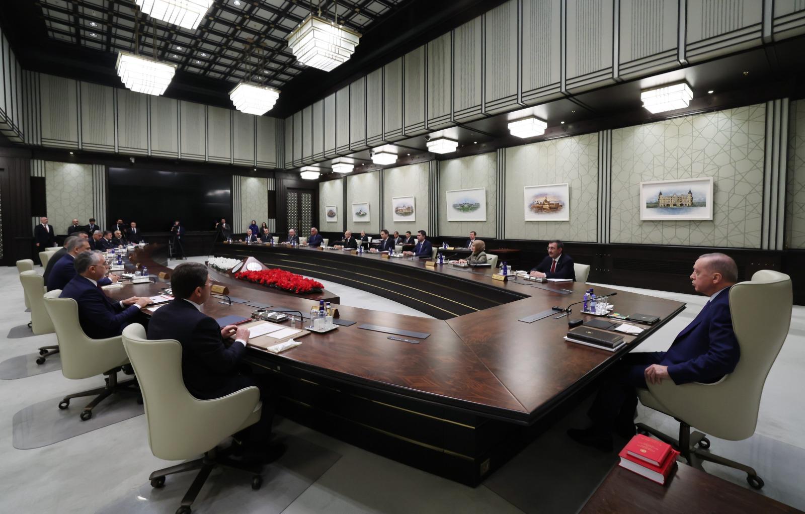 Kabine Toplantısında çok geniş bir yelpazede Türkiye'nin ve bölgenin gündemindeki meseleleri ele aldıklarını aktaran Cumhurbaşkanı Erdoğan, güvenlikten terörle mücadeleye, ulaştırmadan dış politikaya kadar her konuda kapsamlı değerlendirmelerde bulunduklarını vurguladı.