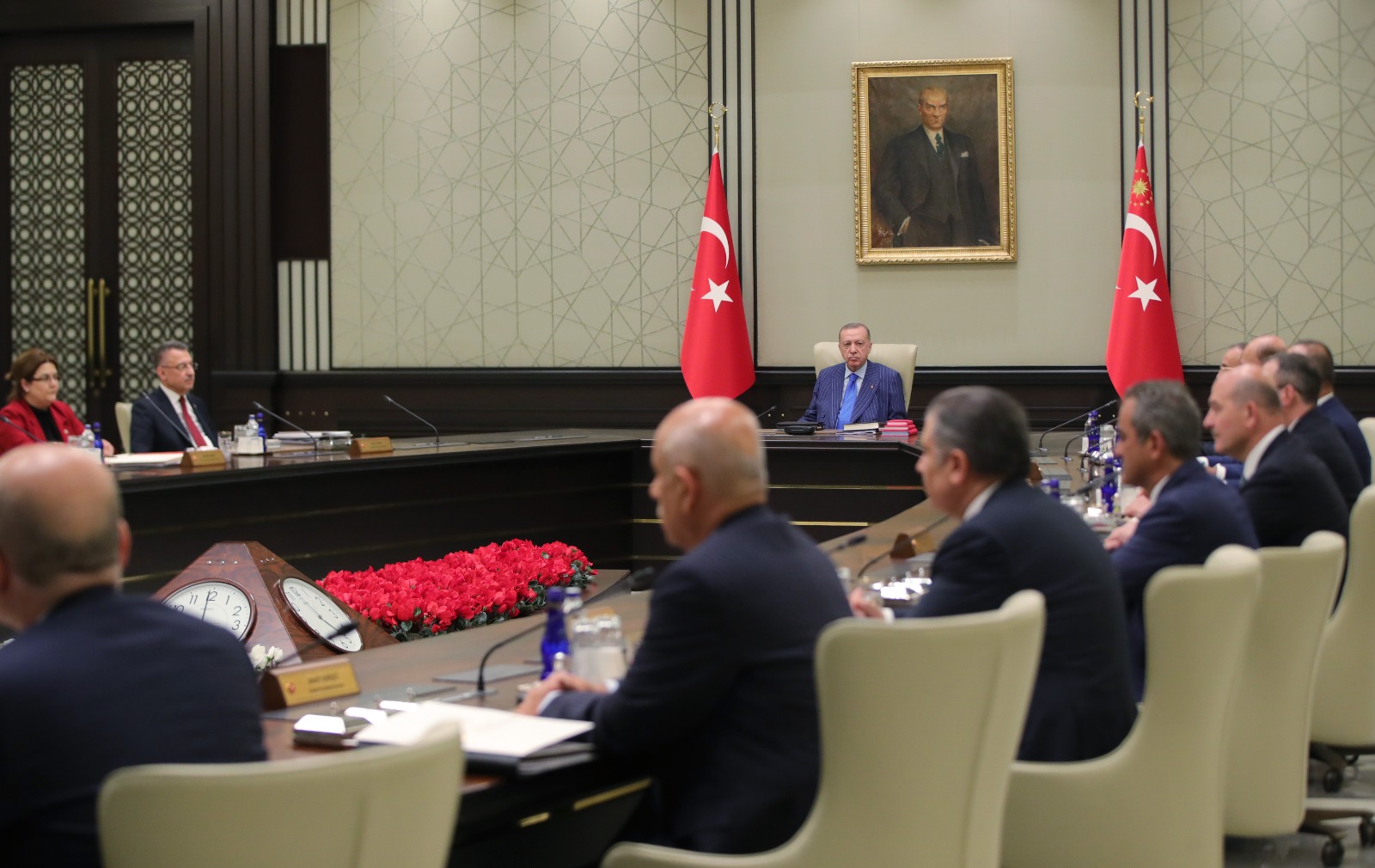 Cumhurbaşkanlığı Kabinesi, Cumhurbaşkanı Recep Tayyip Erdoğan başkanlığında toplandı. Cumhurbaşkanlığı Külliyesi'nde saat 16.55’te başlayan toplantı yaklaşık 3 saat sürdü.