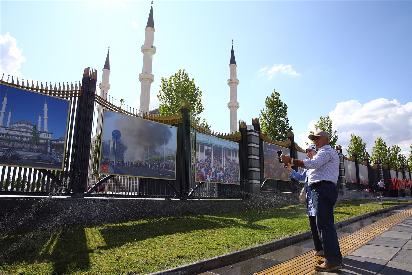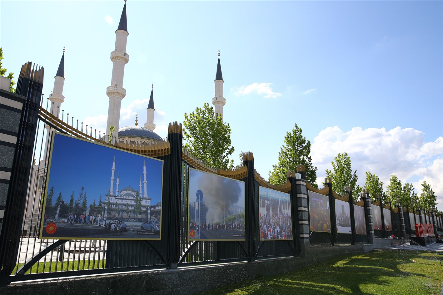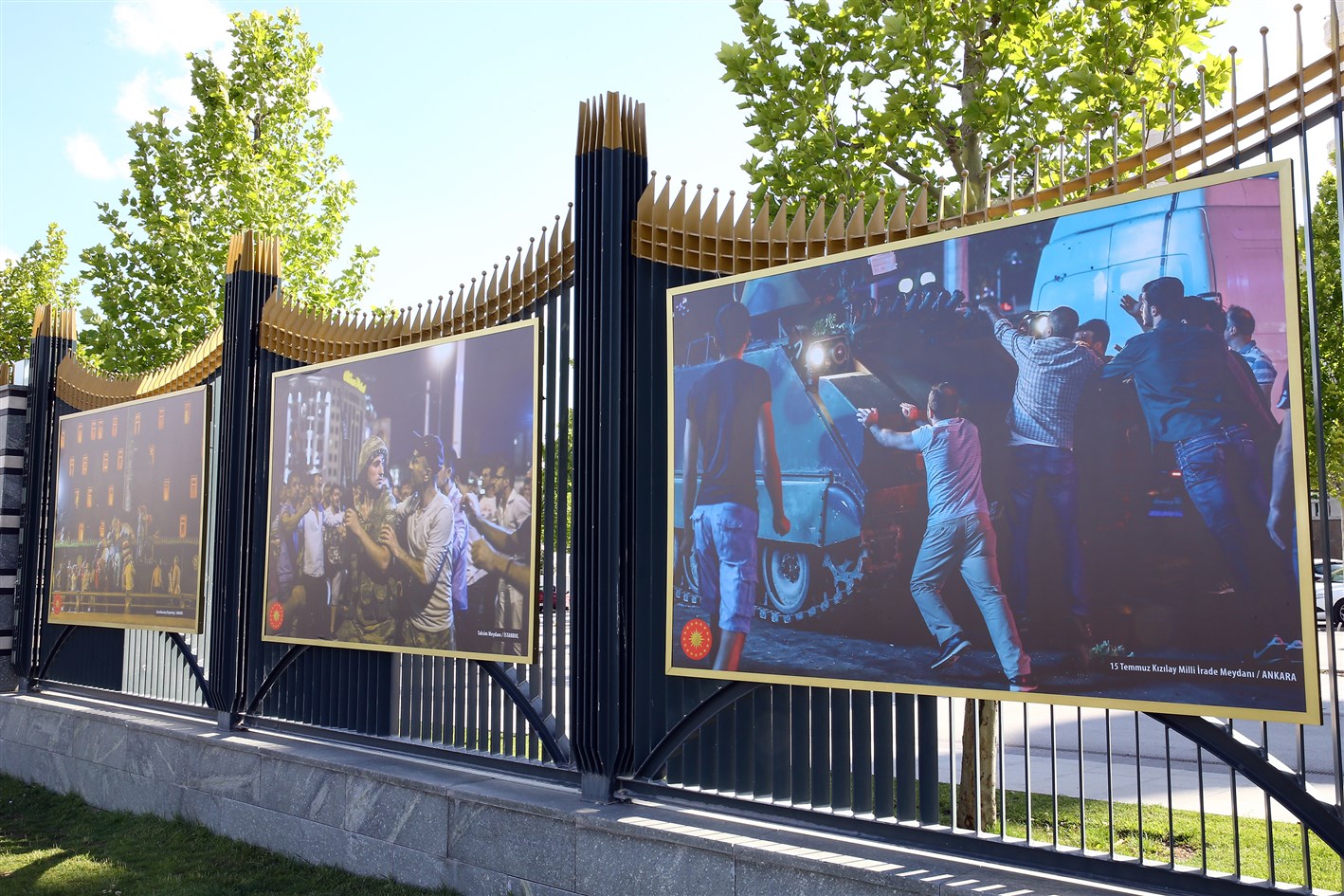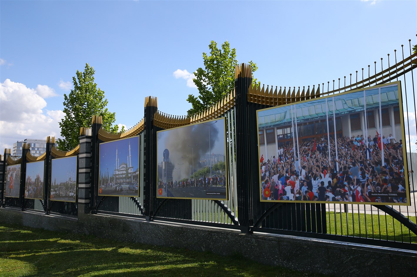 Cumhurbaşkanlığı İletişim Başkanlığı tarafından yürütülen etkinlikler kapsamında, Cumhurbaşkanlığı Külliyesi çevresine 15 Temmuz 2016'daki darbe girişimi gecesi ve sonrasında yaşananları yansıtan fotoğraflar asıldı.