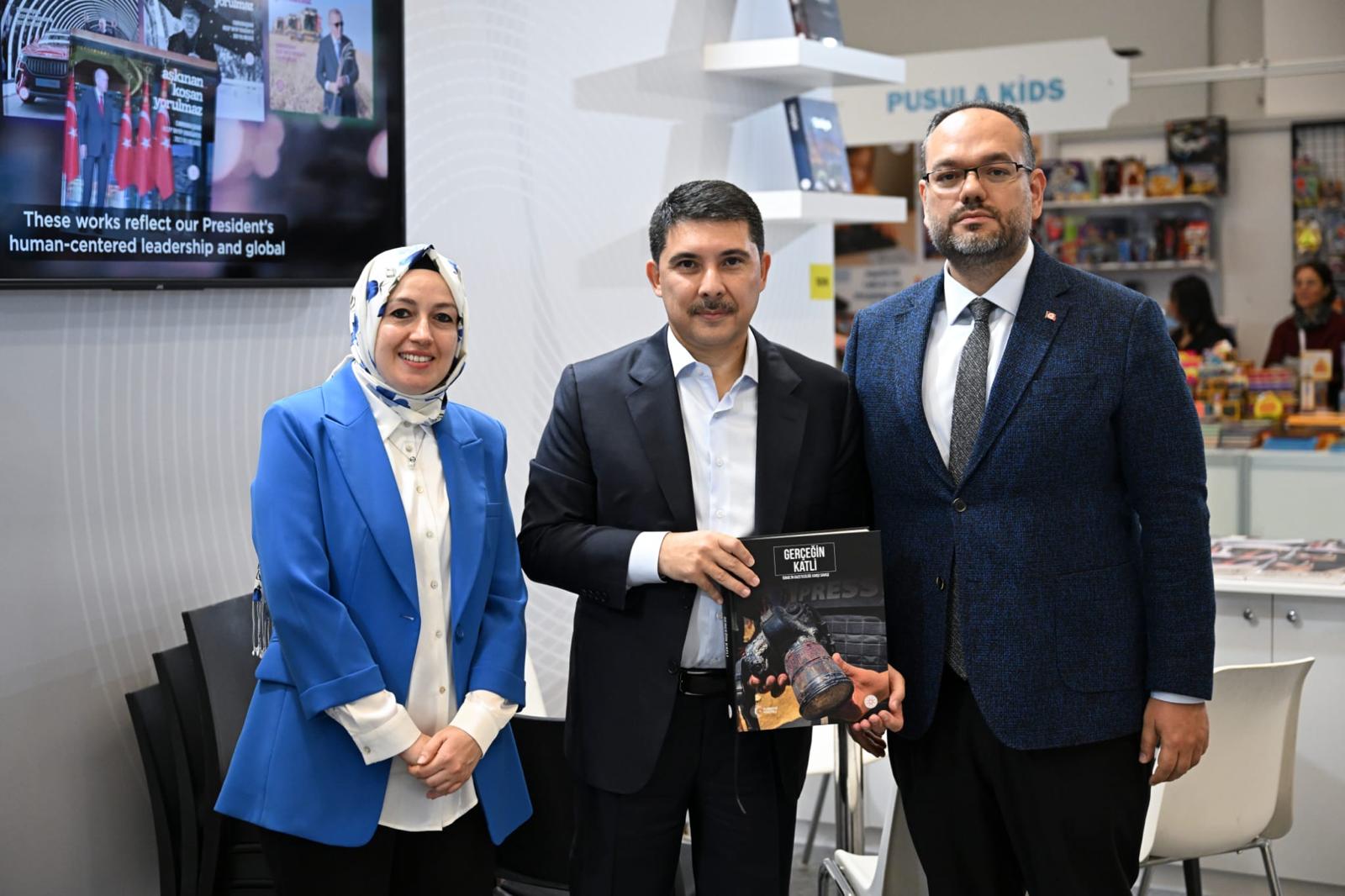 Türkiye’nin kültürel mirasını, iletişim vizyonunu ve millî değerlerini yansıtan eserlerin tanıtıldığı İletişim Başkanlığı standını ziyaret eden Doğan’ı, İletişim Başkan Yardımcımız İlhami Giray Şahin ağırladı.