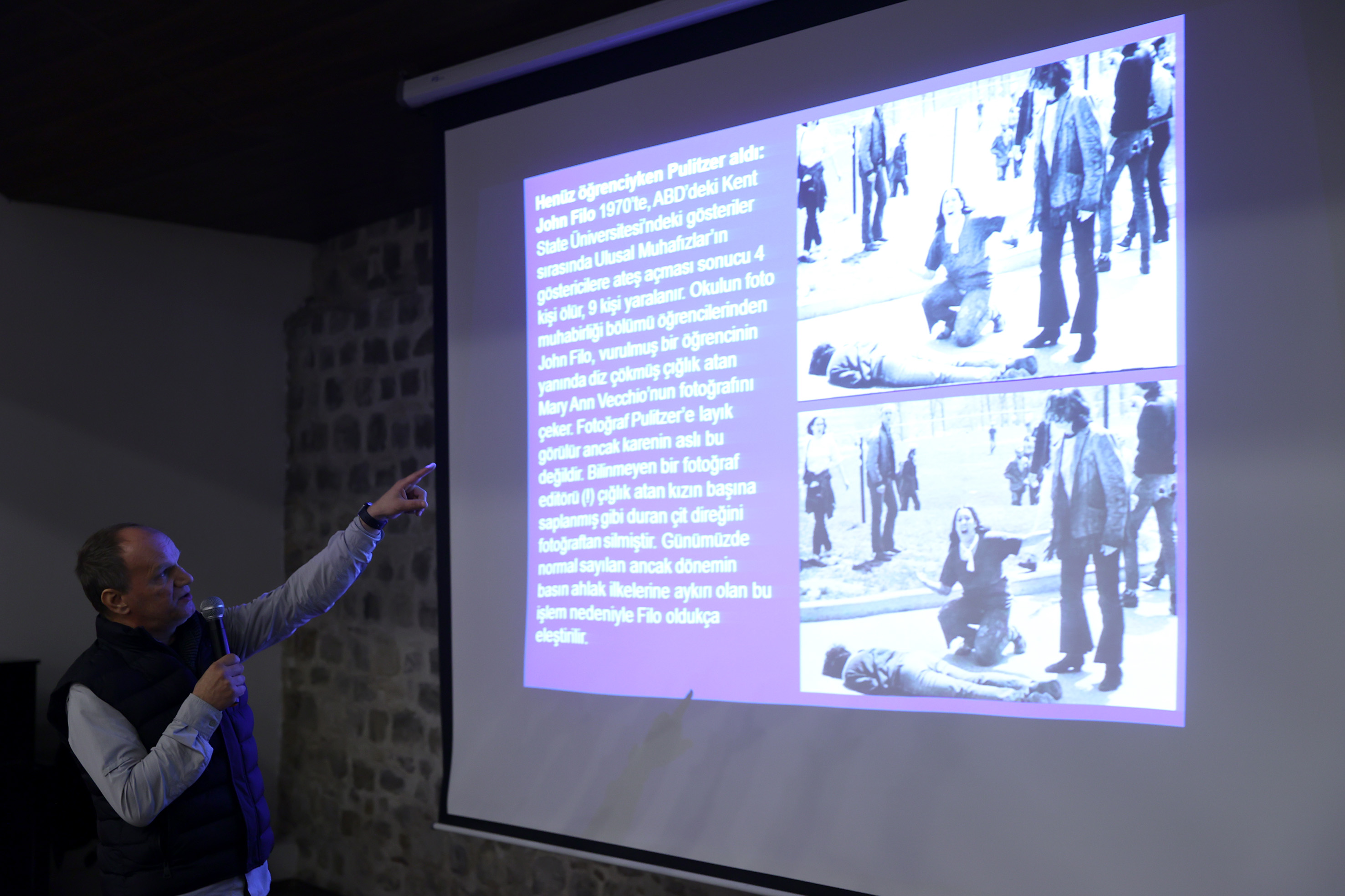 Anadolu Ajansı Fotoğraf Editör Yardımcısı Erhan Sevenler de panelde "Görsel manipülasyon ve haber fotoğrafının gücü" başlıklı sunum yaptı.