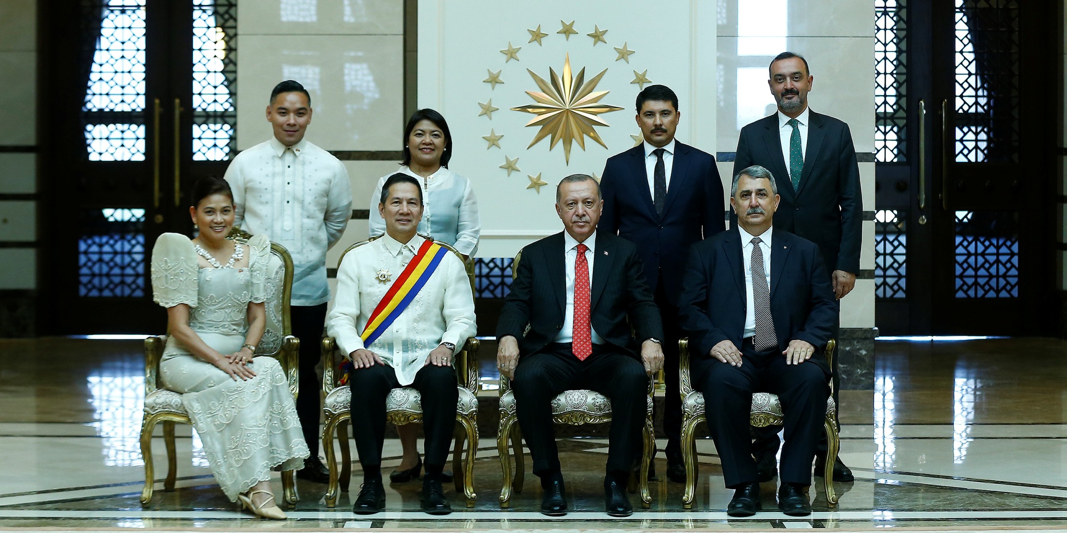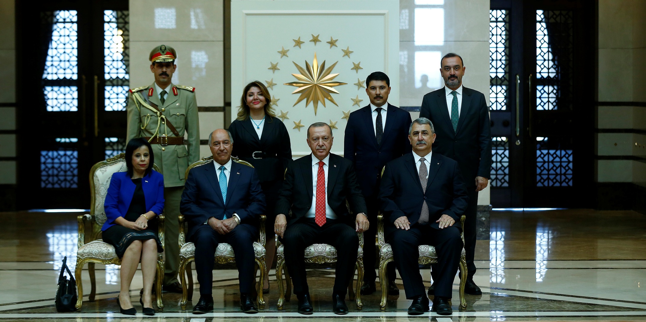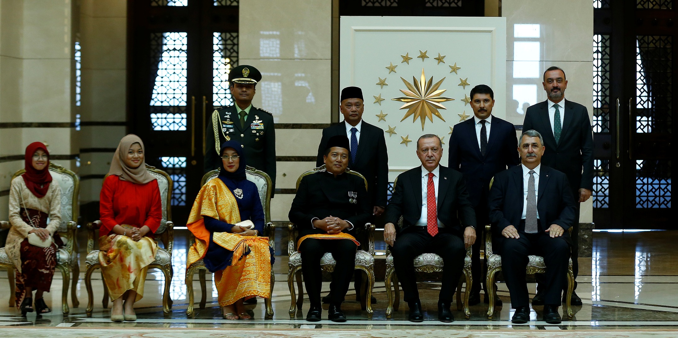 Büyükelçilerin aileleri ve bazı büyükelçilik mensuplarının Cumhurbaşkanı Erdoğan’a takdim edilmesinin ardından hatıra fotoğrafı çektirildi.