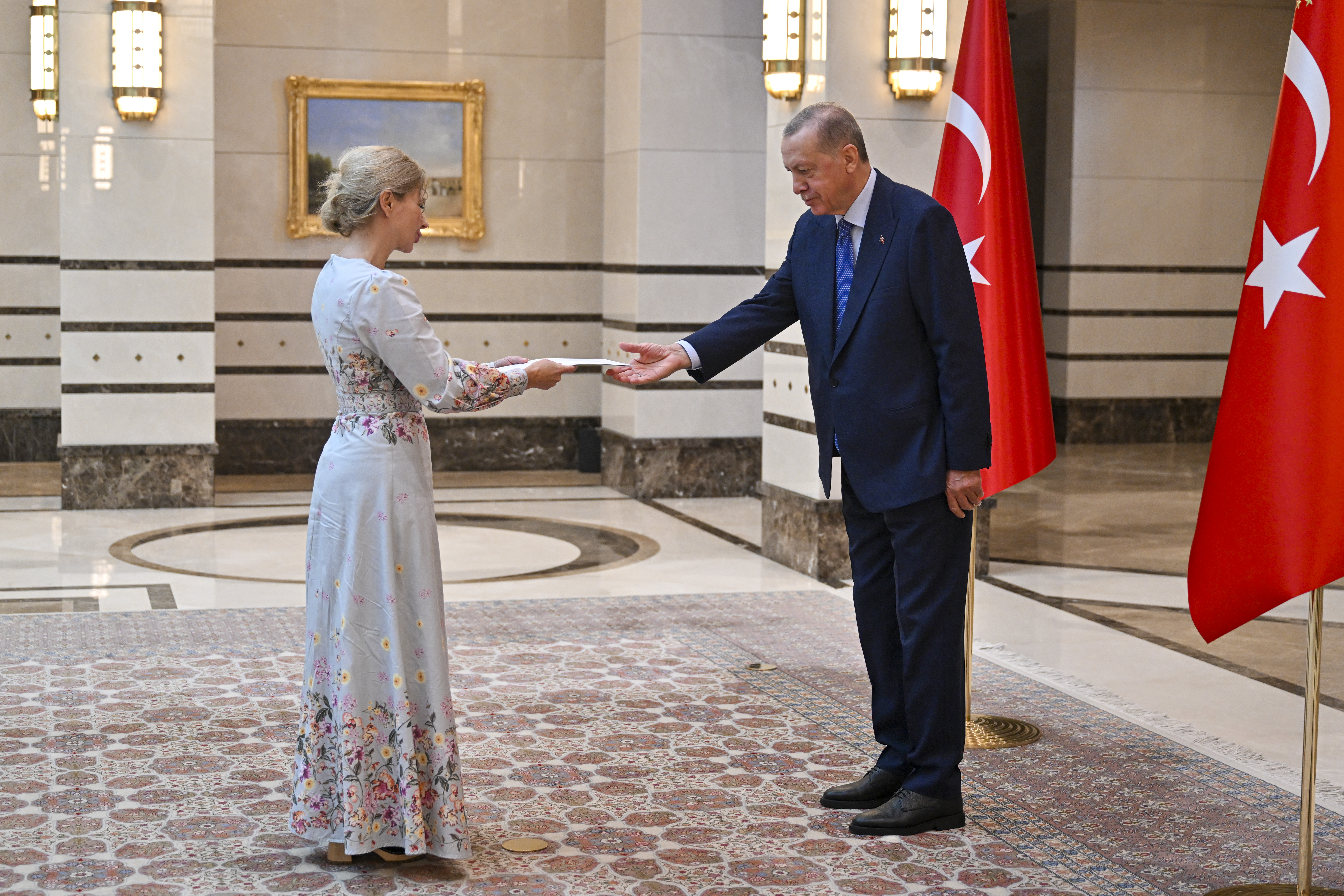 Estonya’nın Ankara Büyükelçisi Vaino Reinart, İsveç'in Ankara Büyükelçisi Malena Mard ve İrlanda'nın Ankara Büyükelçisi Jonh Mccullagh, Cumhurbaşkanı Erdoğan'a güven mektuplarını sundu.