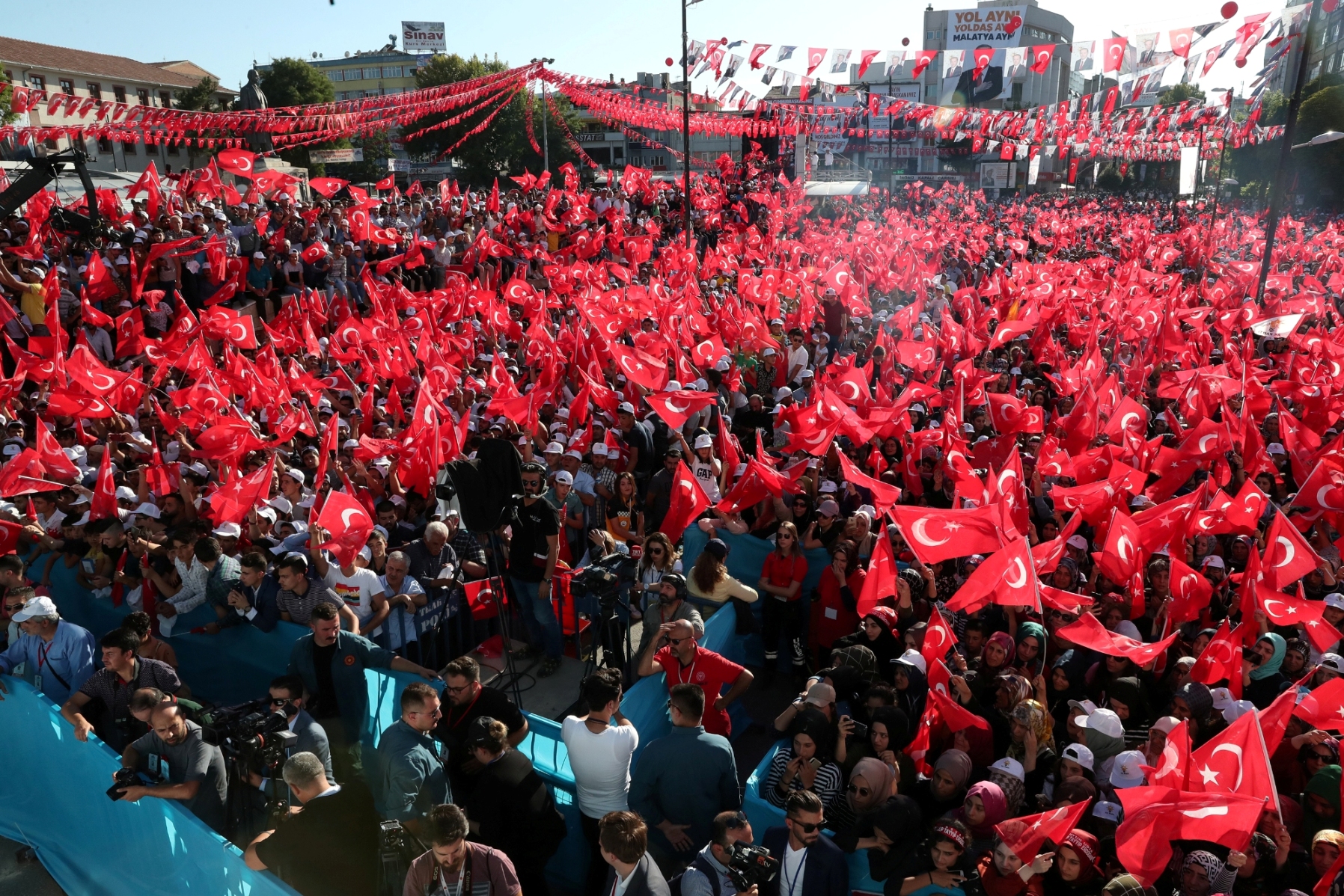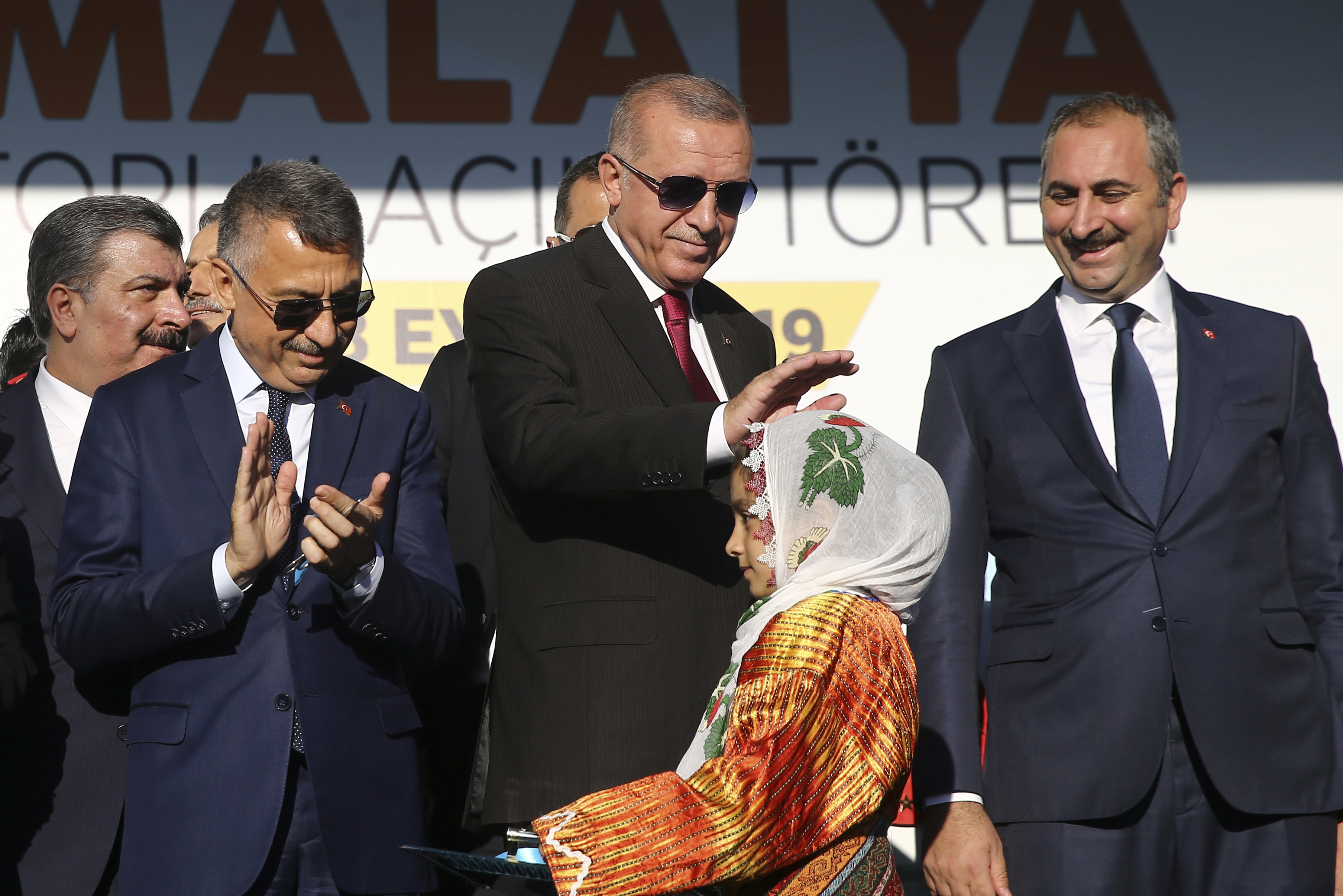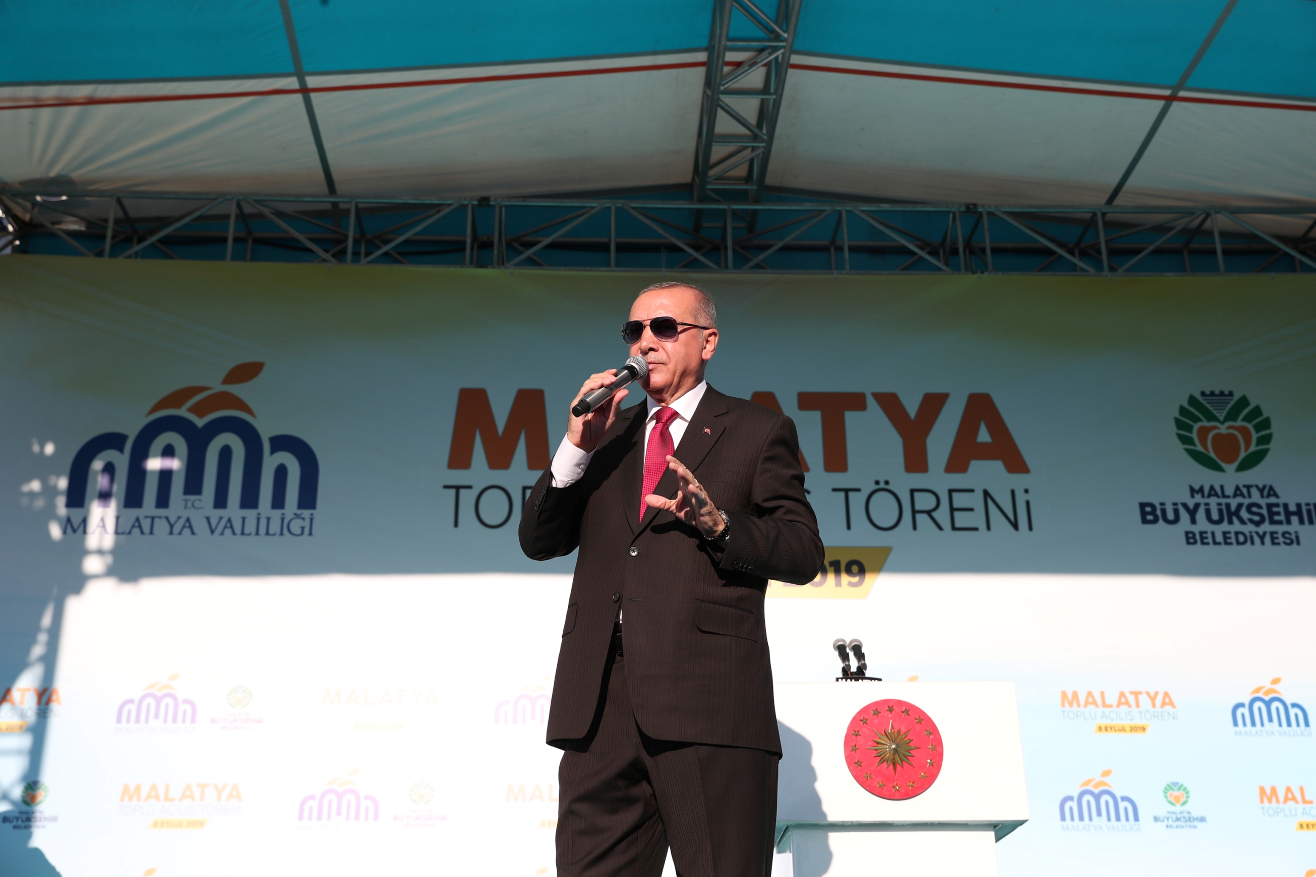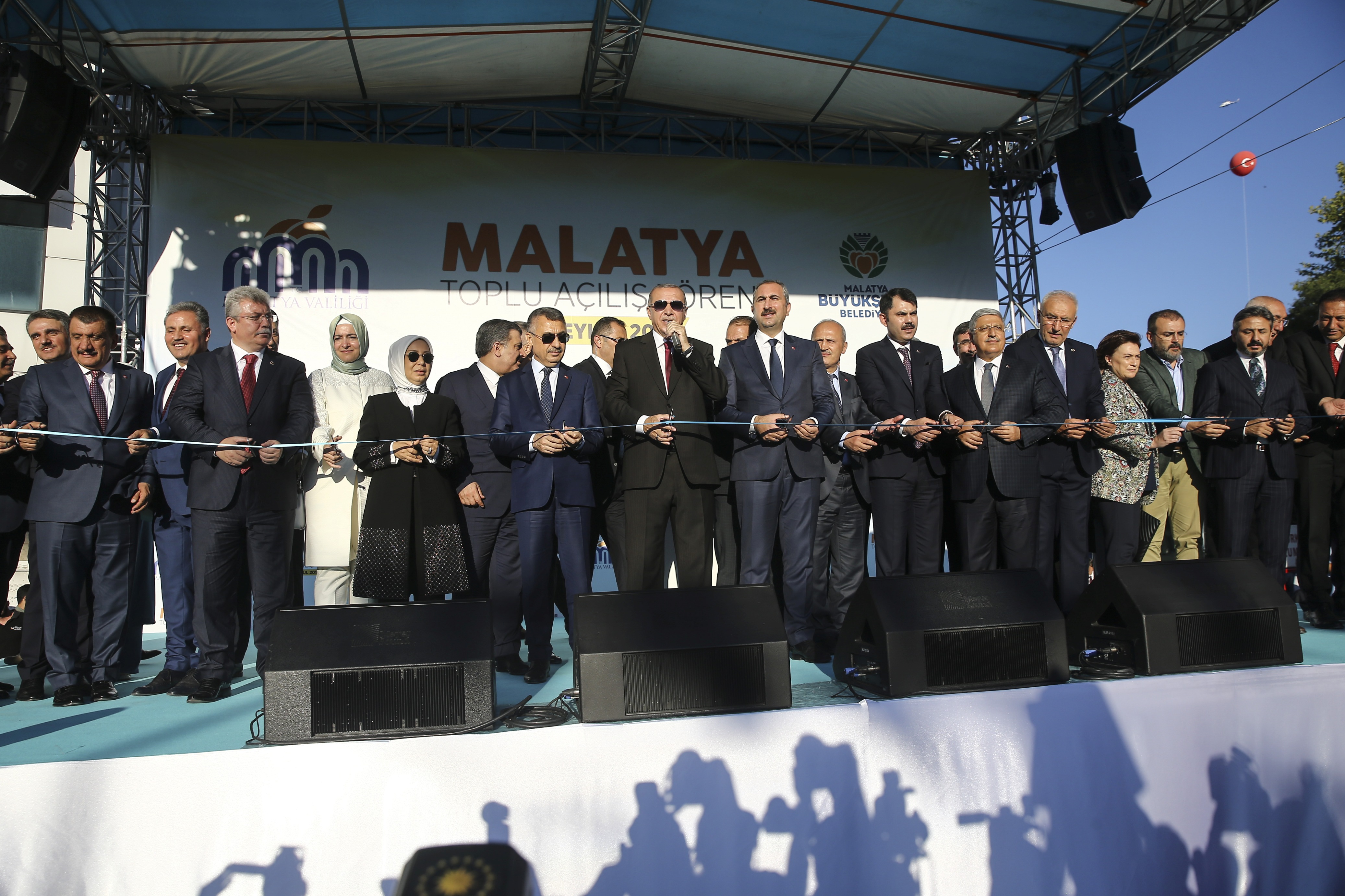 Toplu açılış töreninin yapıldığı alanda, "Sayın Cumhurbaşkanımız, Anadolu’yu anayurt yapan destan şehri Malatya’ya hoş geldiniz", "Yol aynı, yoldaş aynı, Malatya aynı" ve "Burası Malatya Beydağı gibi arkanda" pankartları dikkati çekti.