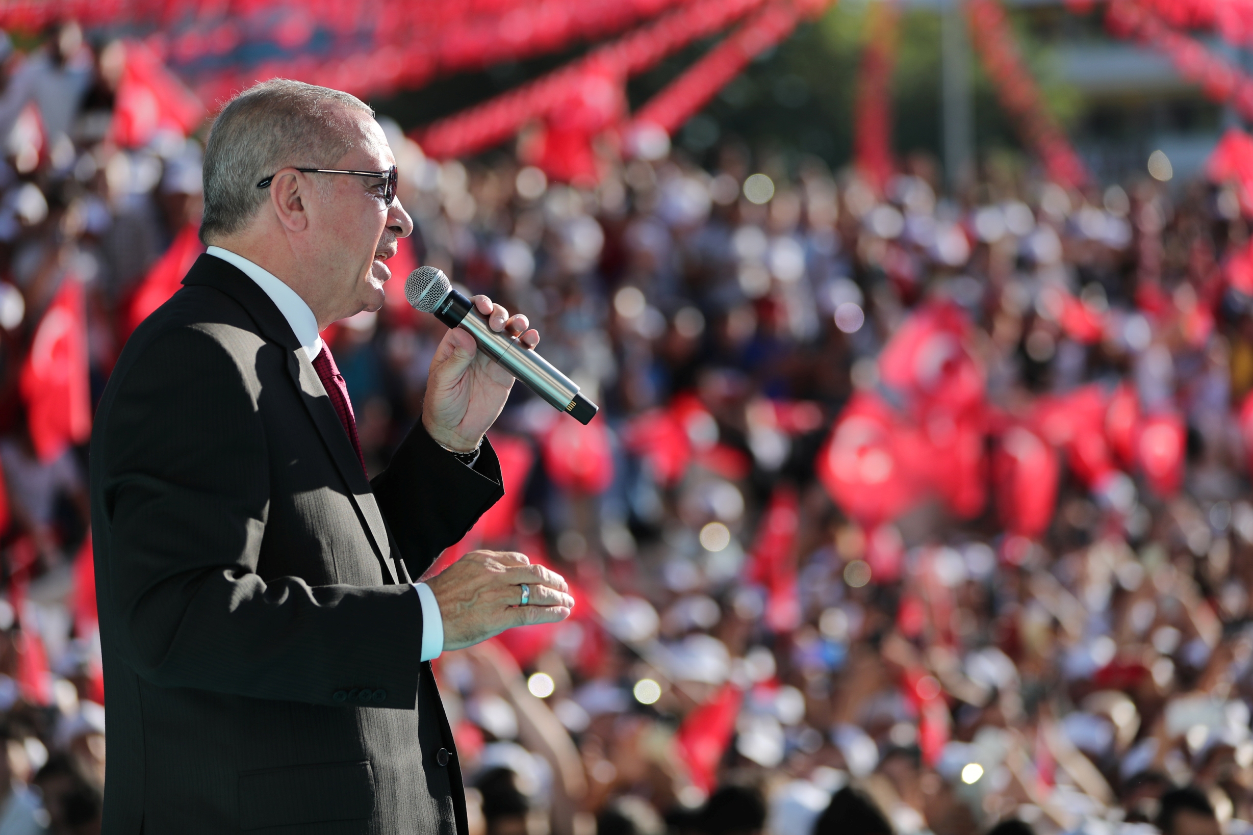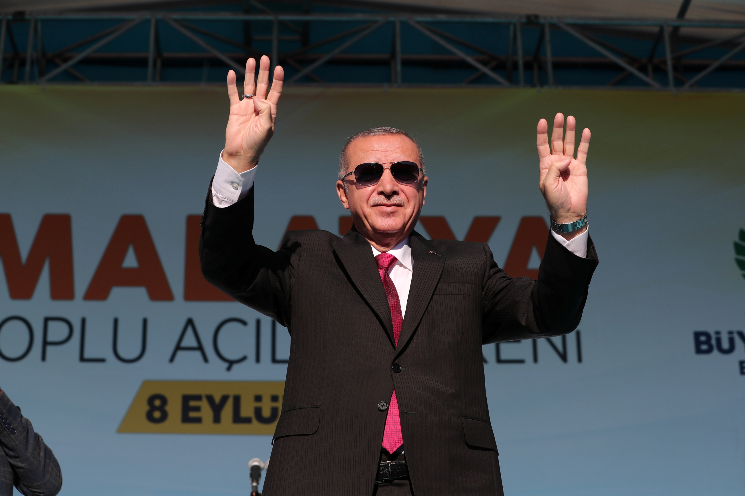 "Rabia" işaretiyle tek millet, tek bayrak, tek vatan, tek devlet vurgusu yapan Erdoğan, Malatya'daki manzaranın ülkenin her yerinde muhafaza edildiğinde Türkiye'nin geleceğinin aydınlık olduğuna işaret etti.