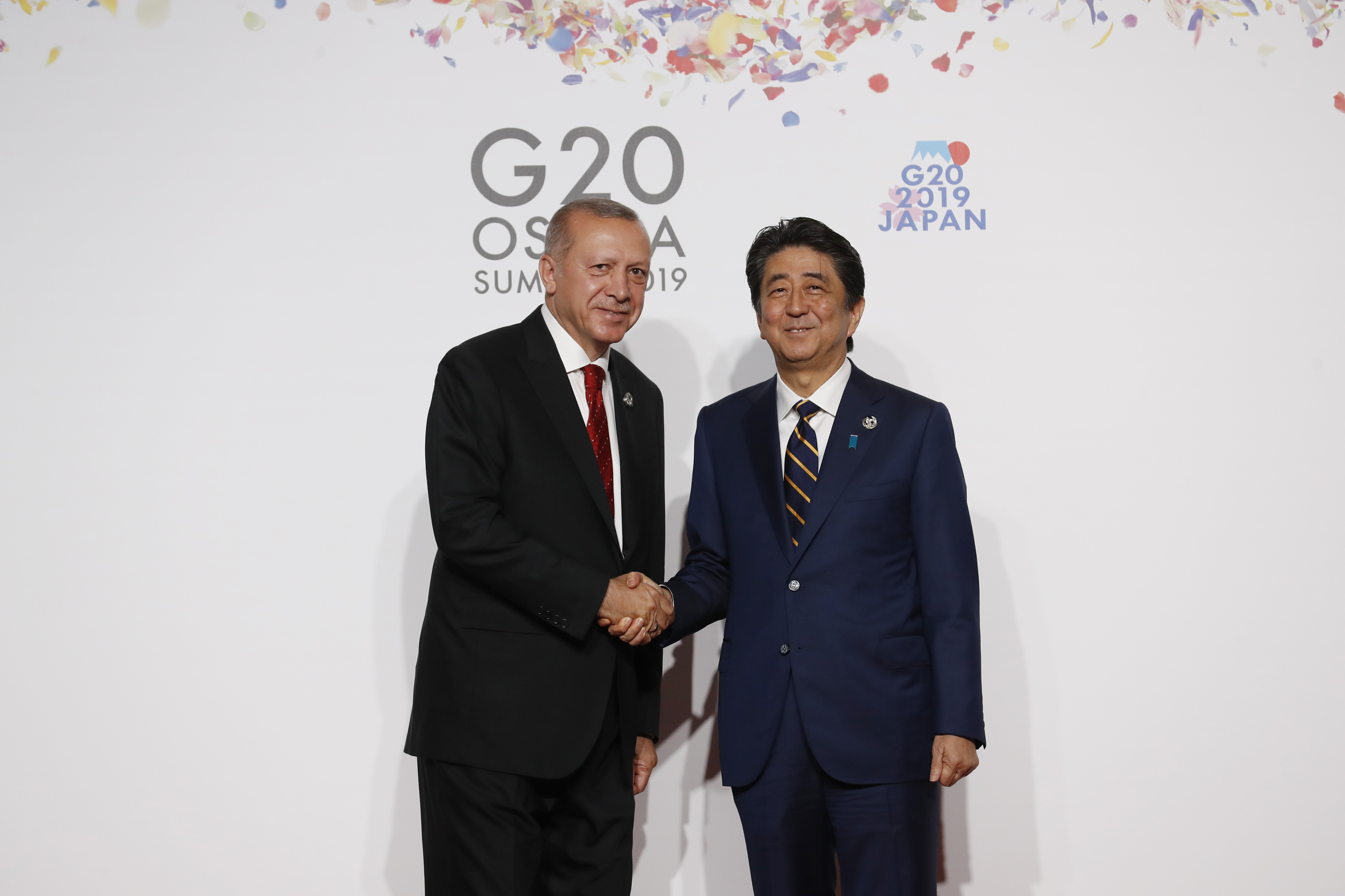 Karşılamanın ardından Başbakan Abe ve aralarında Türkiye Cumhurbaşkanı Recep Tayyip Erdoğan, ABD Başkanı Donald Trump, Rusya Devlet Başkanı Vladimir Putin ve Çin Devlet Başkanı Şi Cinping'in de bulunduğu konuk heyet başkanları, G20 Liderler Zirvesi aile fotoğrafı için hazırlanan platformda, kendilerine ayrılan yerlere geçti.