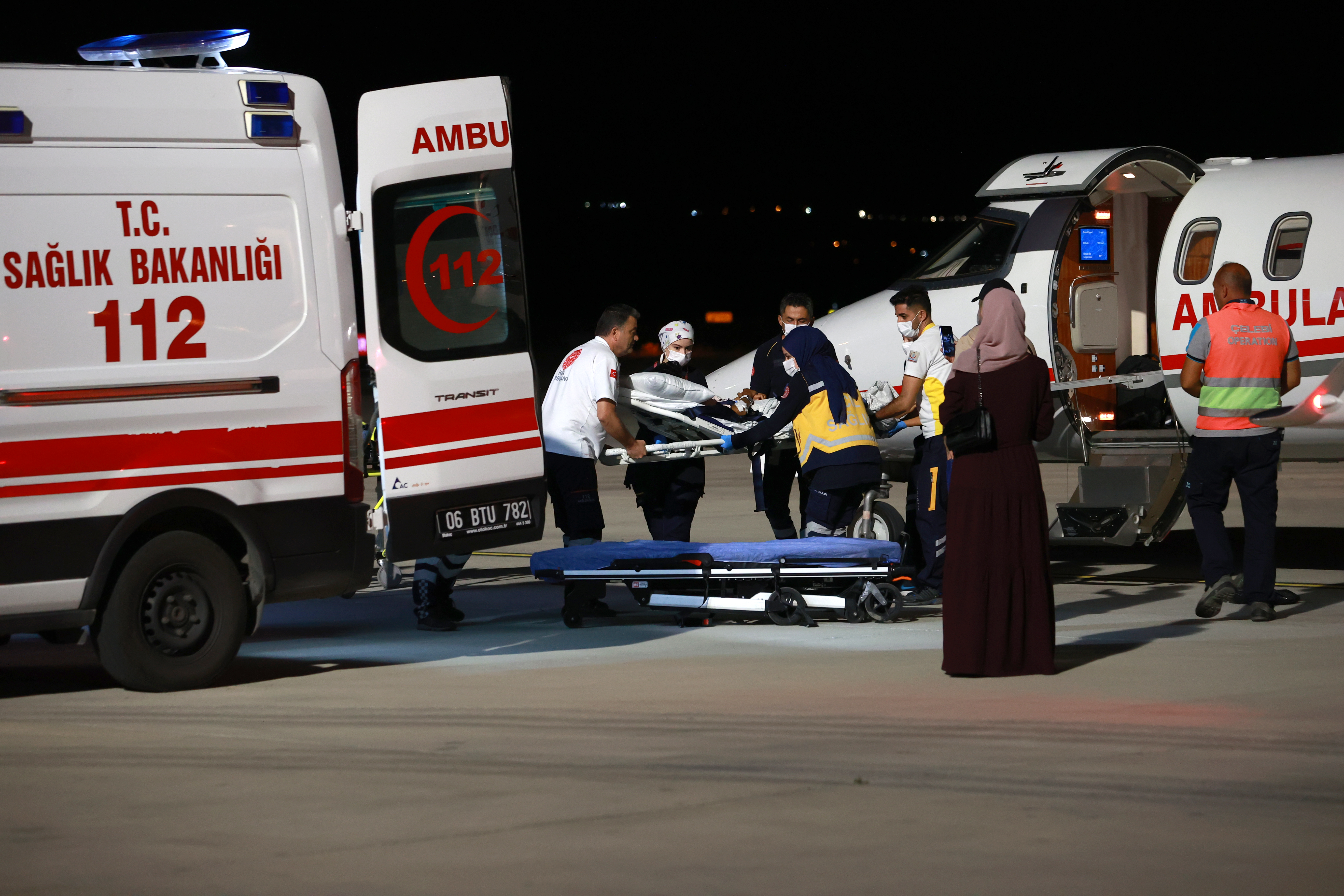 Filistinli kardeşleri Kahire'den getiren ambulans uçak, saat 01.00'de Esenboğa Havalimanı'na iniş yaptı.