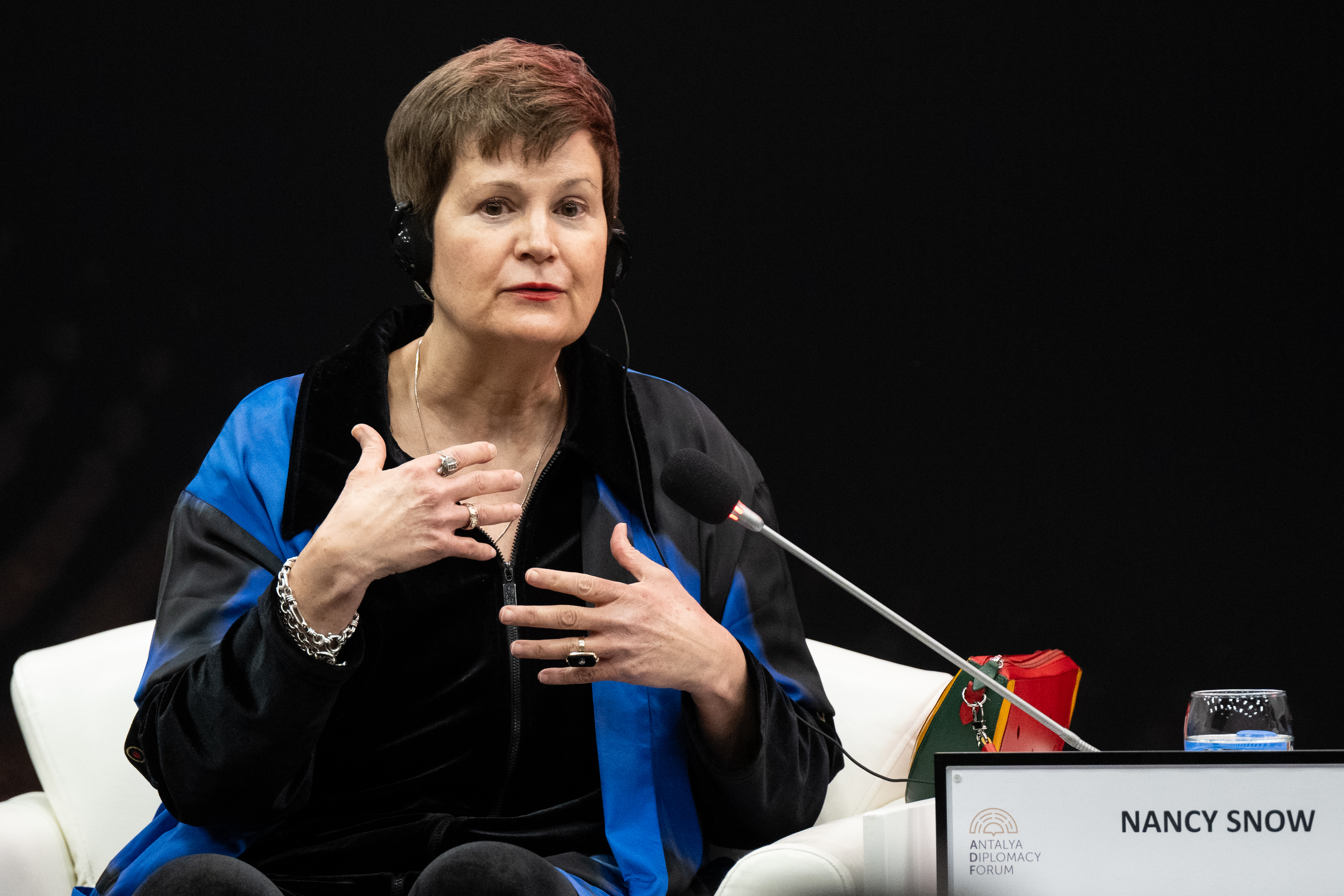Antalya Diplomasi Forumu 2024'te, moderatörlüğünü Kaliforniya Eyalet Üniversitesinden Prof. Dr. Nancy Snow'un yaptığı söyleşiye konuk olan Cumhurbaşkanlığı İletişim Başkan Yardımcısı Çağatay Özdemir kendisine sorulan soruları yanıtladı.