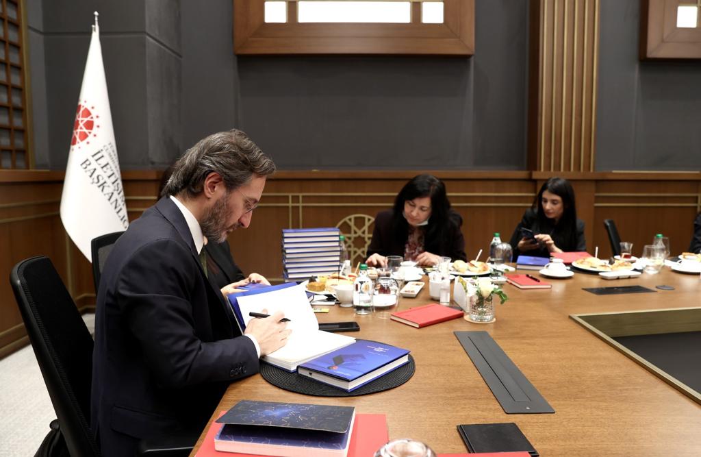 İletişim Başkanı Altun, İngilizce olarak kaleme aldığı "Türkiye as a Stabilizing Power in an Age of Tormoil (Küresel Kaos Çağında İstikrar Sağlayıcı Bir Güç: Türkiye)" adlı kitabını da toplantıya katılan gazetecilere imzalayarak hediye etti.