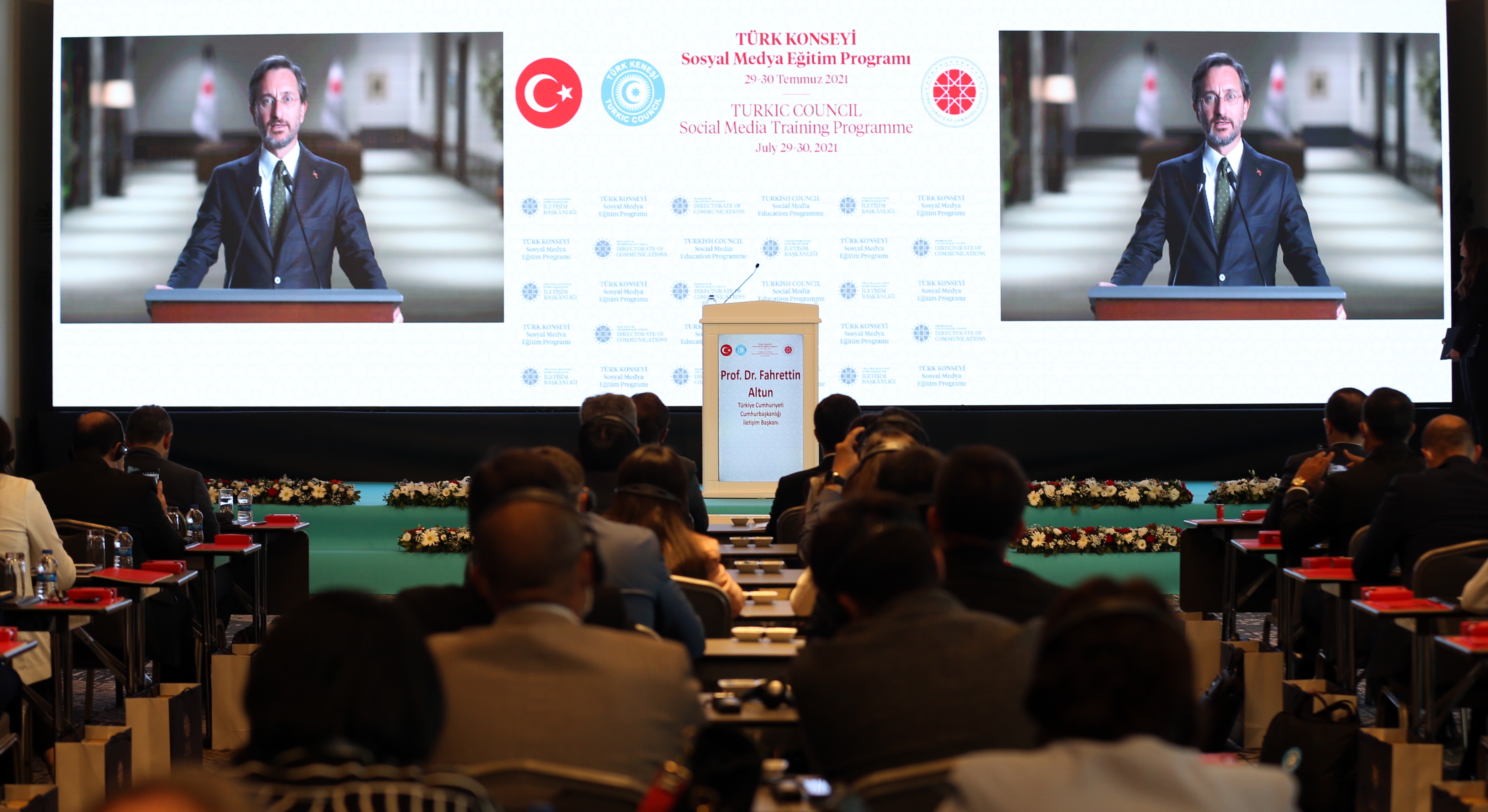 Türk Konseyindeki kardeş ülkelerin genç ve dinamik bir nüfusa sahip olduğuna işaret eden Altun, “Dijital iletişimle birlikte yaşadığımız devasa değişimler, dönüşümler hepimizi yoğun bir şekilde etkiliyor. Bugün ortak dilimiz Türkçe dünyada internet içeriklerinde en çok kullanılan 4. dildir. Dünyada nüfusuna oranla sosyal medya kullanıcı sayıları en hızlı artan ülkeler arasında Türk dünyası ülkeleri de bulunuyor. Buradan da anlaşılacağı üzere, Türk dili konuşan ülkeler, dijital dünyadaki tehditlere karşı kurban değil, hakikati savunarak bu dünyadaki fırsatları kullanması ve bu alanı düzenlemesi gereken gerçek aktörlerdir.” ifadelerini kullandı.