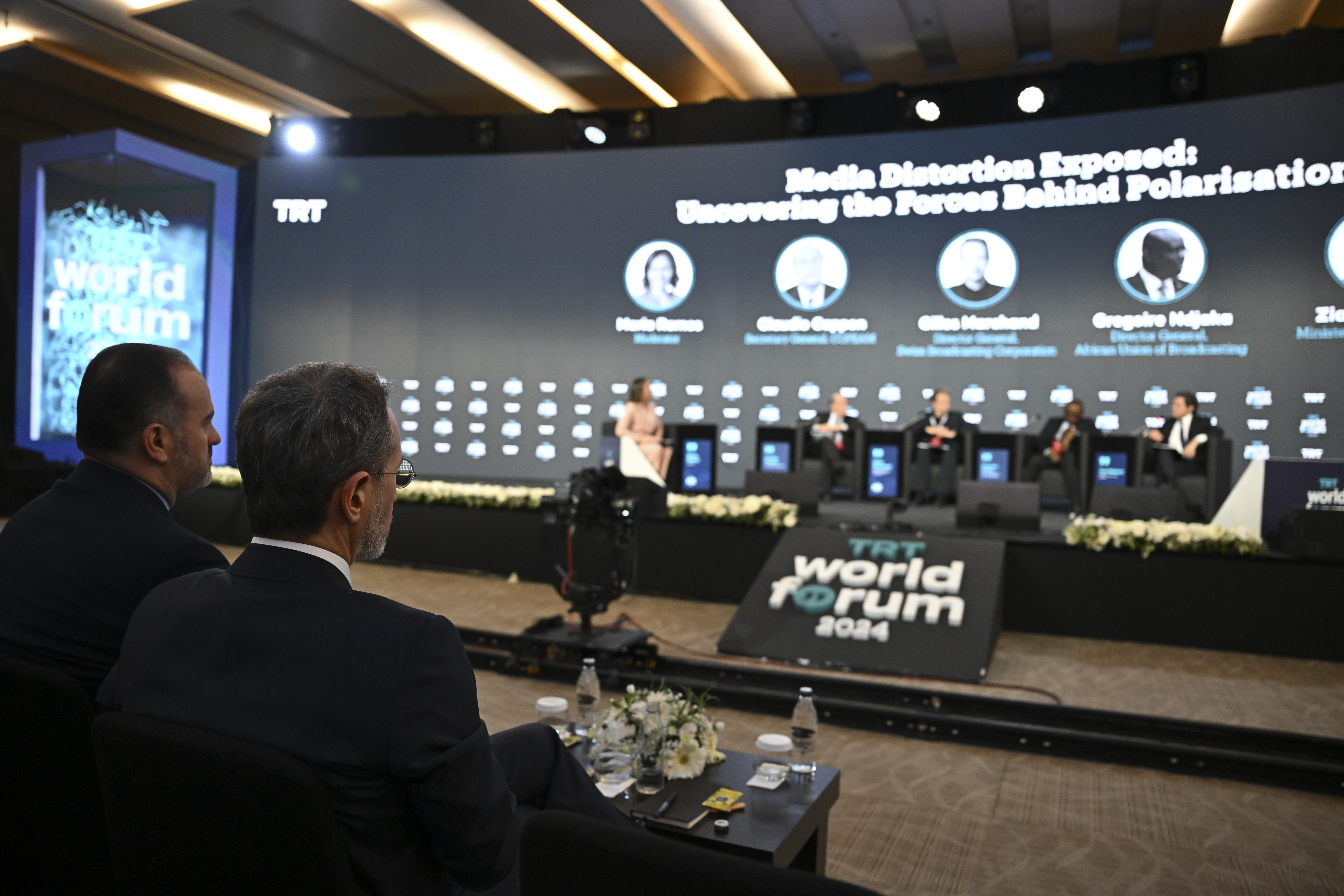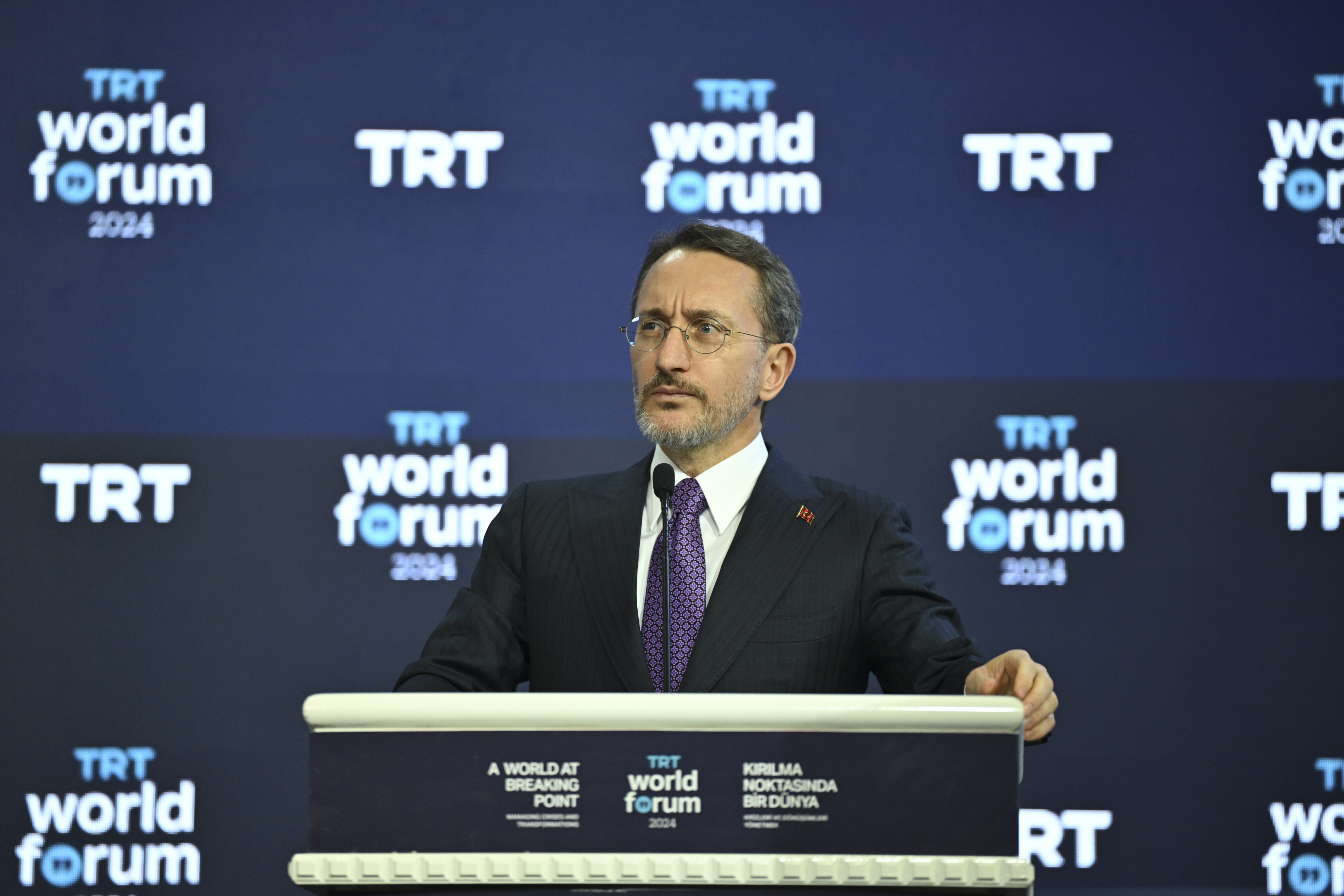 Cumhurbaşkanlığı İletişim Başkanı Fahrettin Altun, İstanbul Kongre Merkezi'nde düzenlenen TRT World Forum 2024'ün "Medya Taraflılığının İnşası: Kutuplaştırmanın Arkasındaki Güçleri Deşifre Etmek" başlıklı oturumda konuştu.