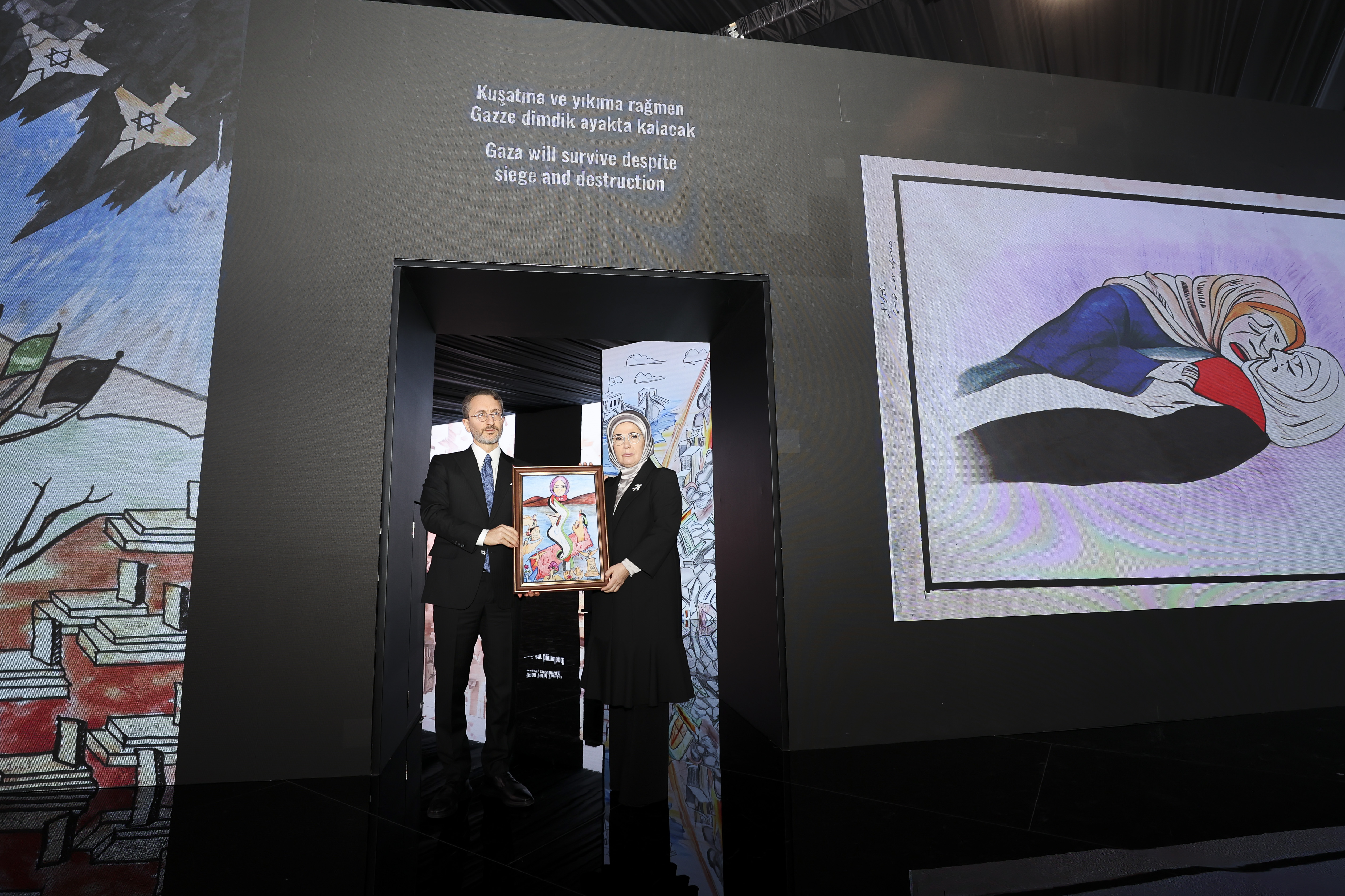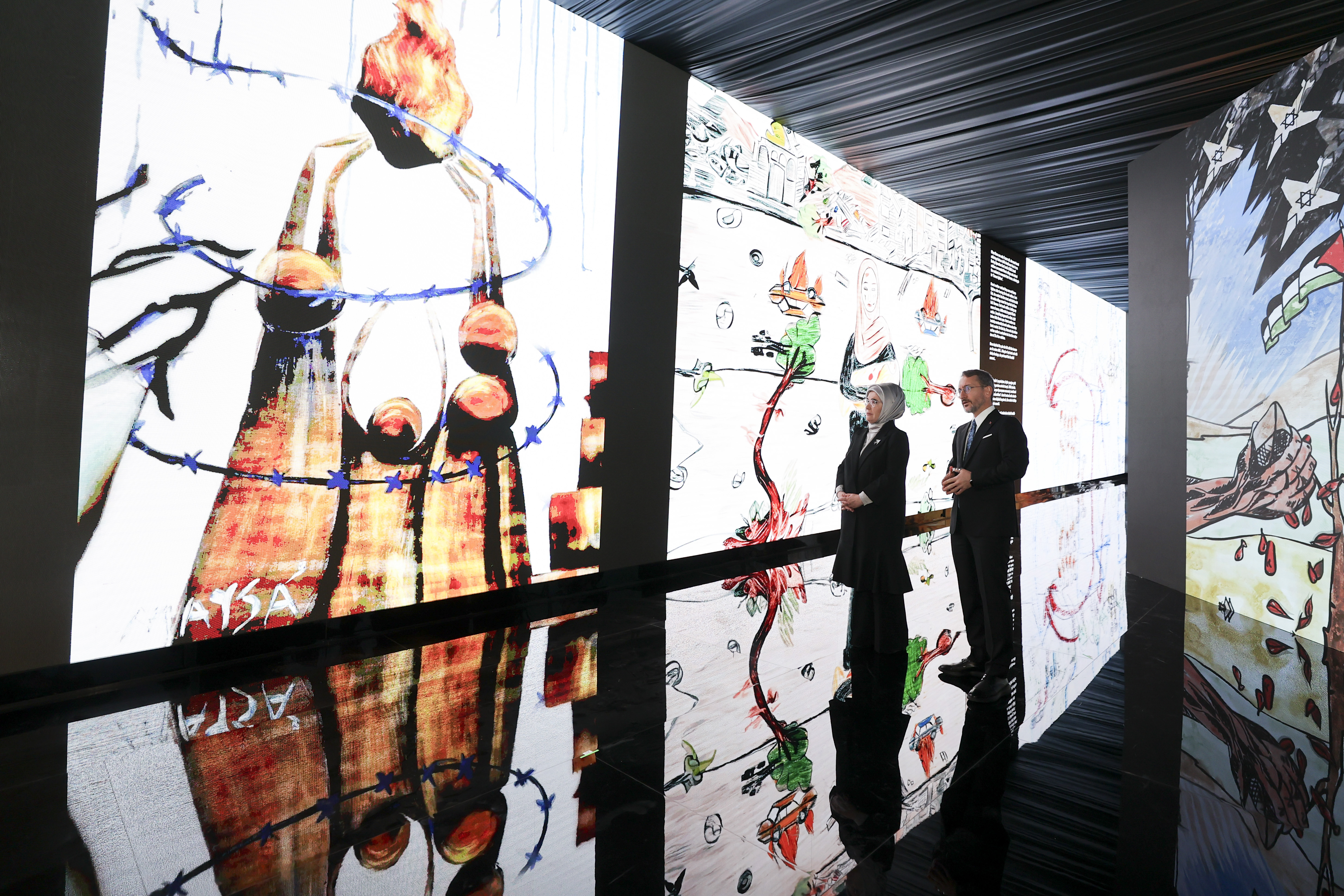 “Yıllardır İsrail zulmü altında, ölümle yaşam arasında büyüyen çoğu artık hayatta olmayan Gazzeli çocukların geride bıraktığı emanetlere yer verilen ve İletişim Başkanlığımızın hazırladığı "Kurşun Geçirmez Düşler: Gazzeli Çocuk Ressamlar" sergisini, Sayın Emine Erdoğan Hanımefendinin teşrifleriyle vatandaşlarımızın ziyaretine açtık.