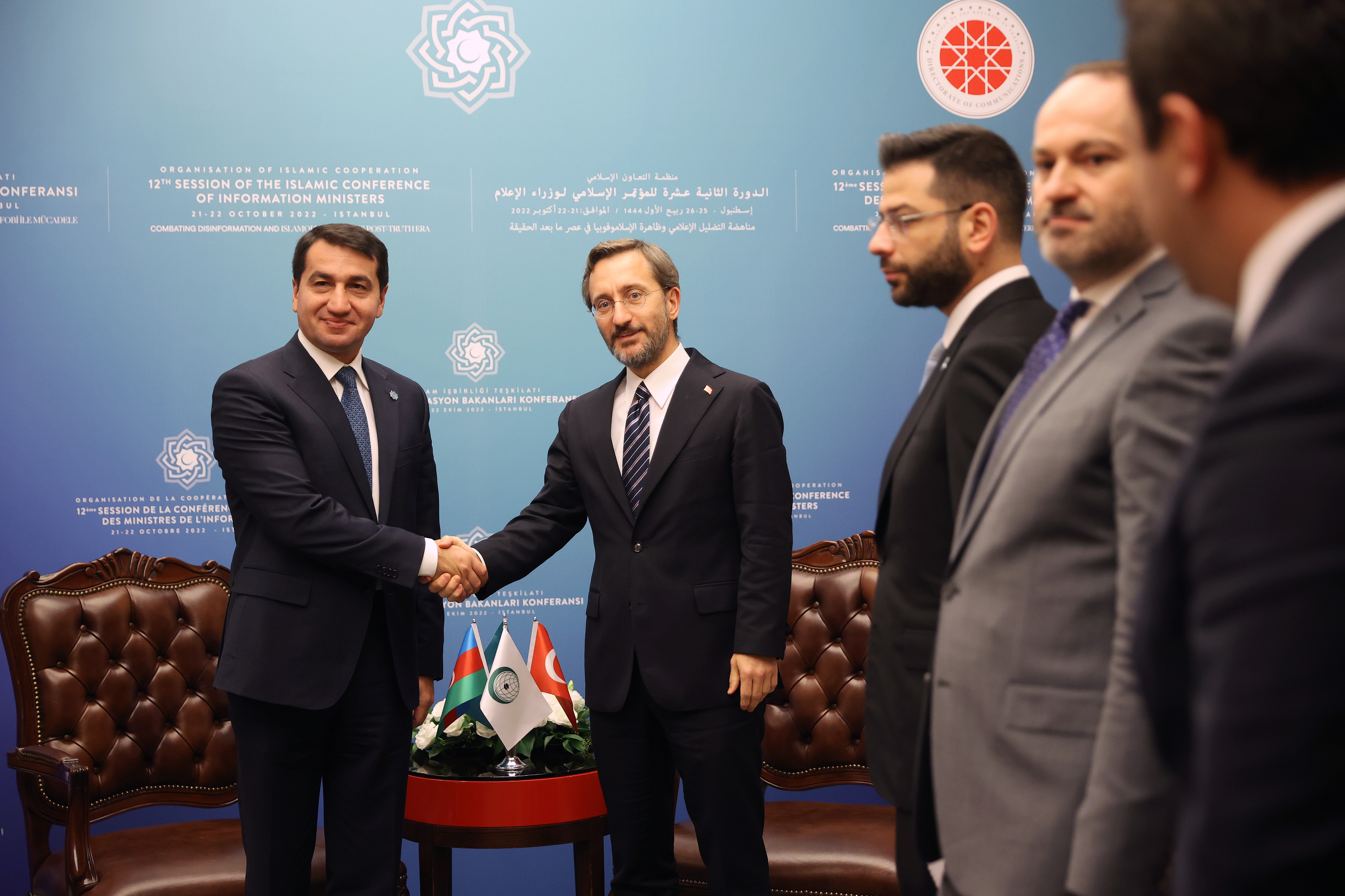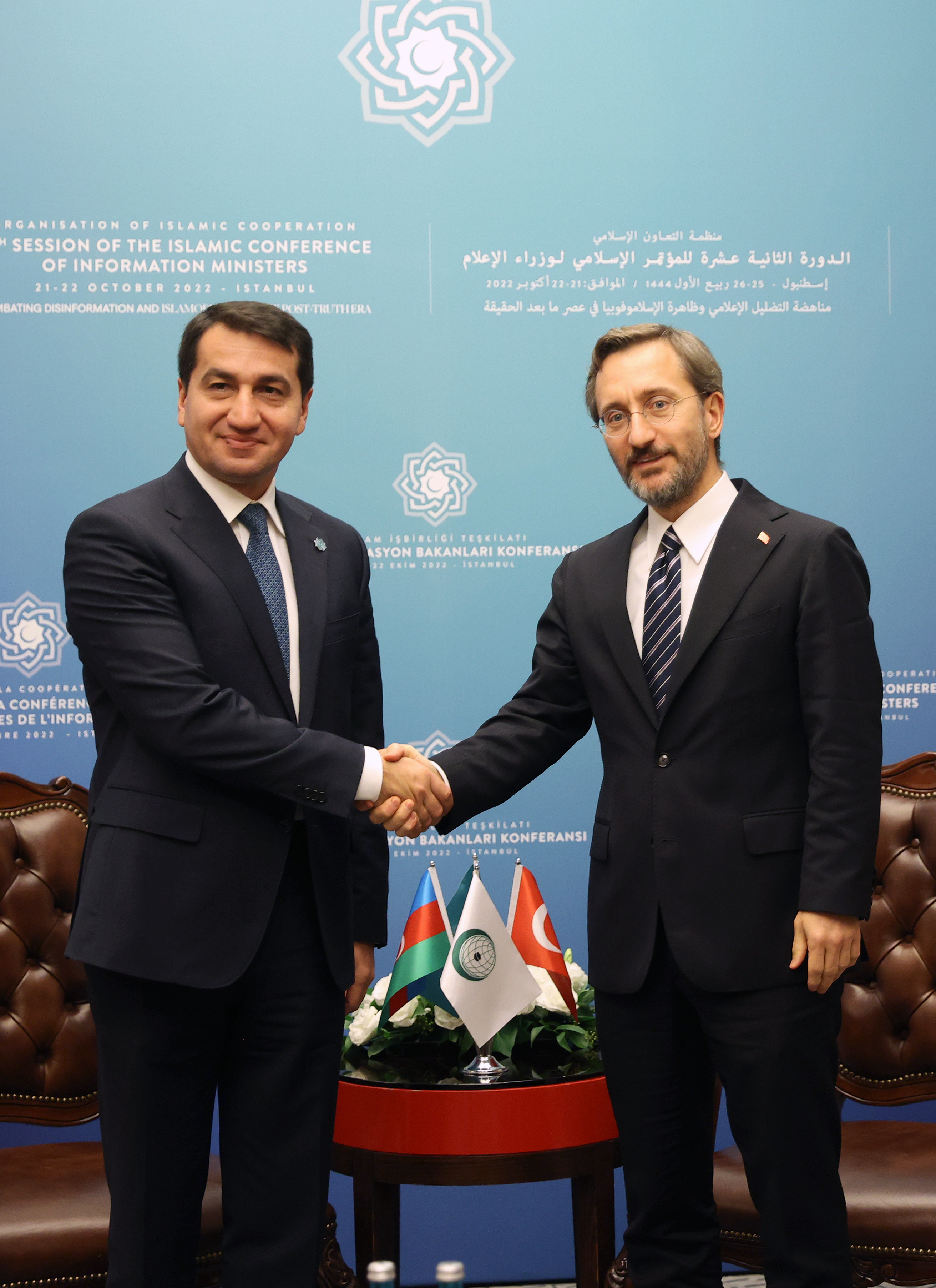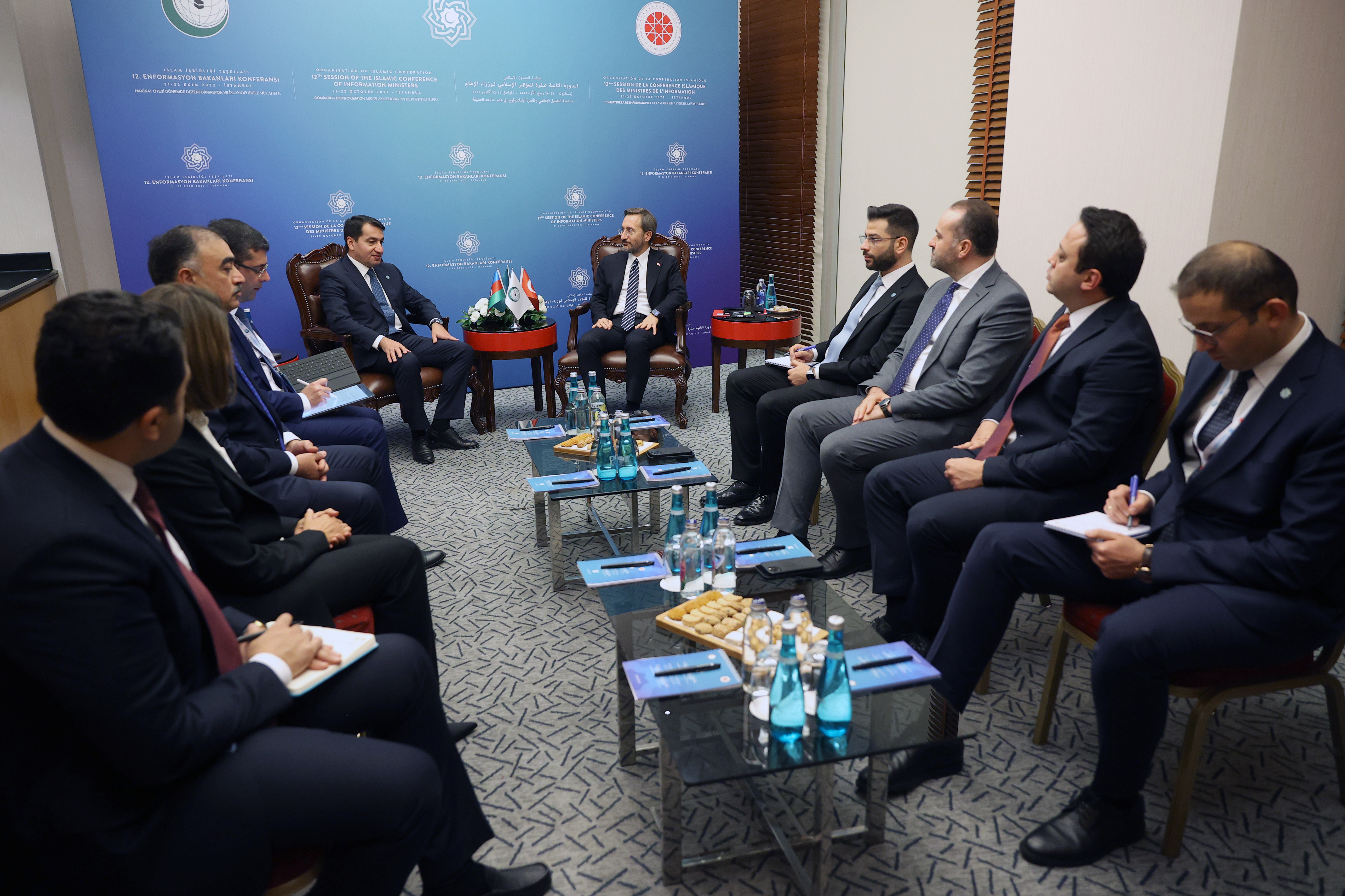 İletişim Başkanı Altun, Azerbaycan Cumhurbaşkanı Müşaviri Hikmet Hacıyev ile yaptığı görüşmede ise Türkiye-Azerbaycan Ortak Medya Platformu'nun yansımalarını, İslam dünyasından da birçok ülke ile konuştuklarını ifade etti.