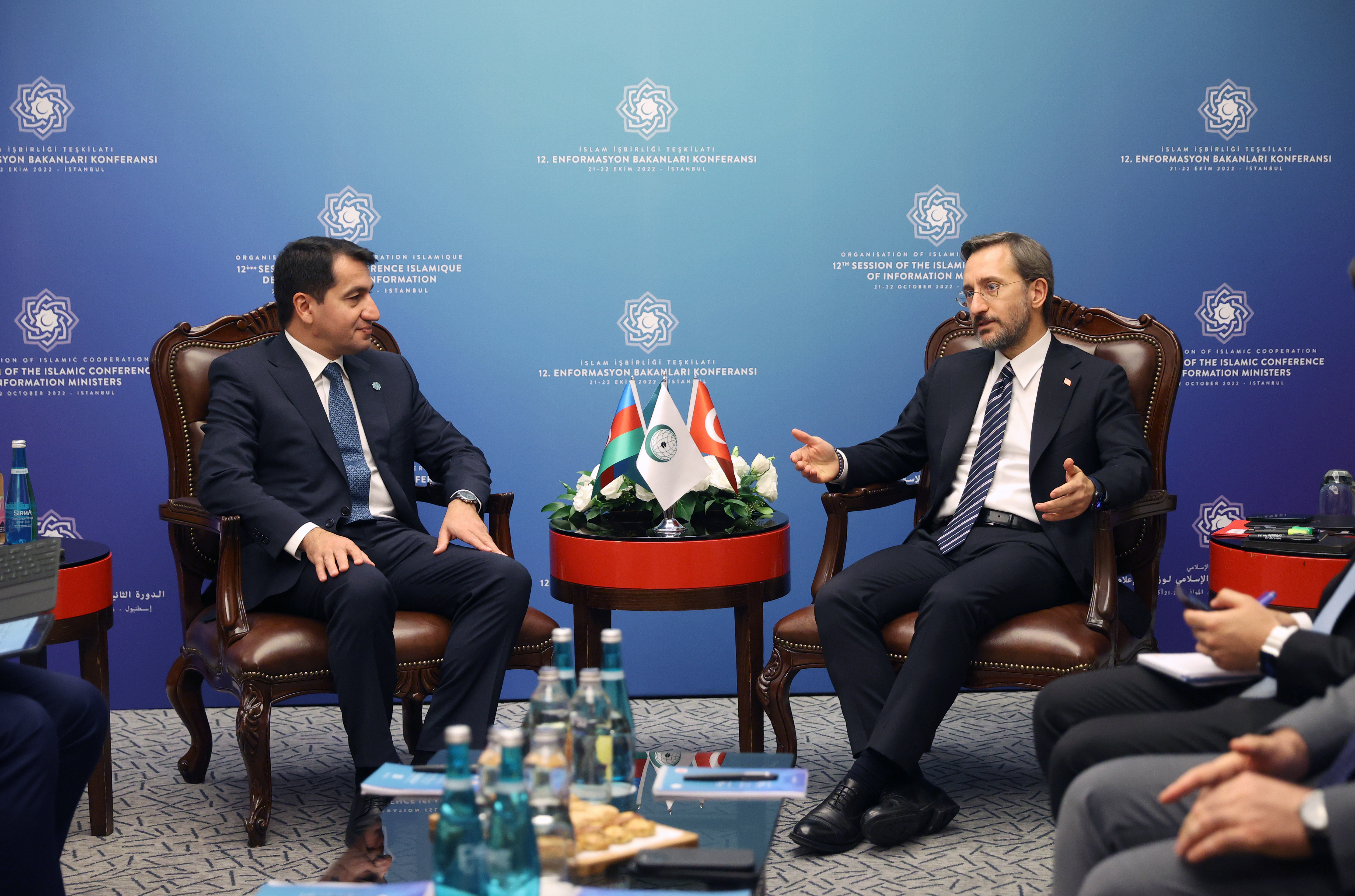 İletişim Başkanı Altun, Türkiye'nin ev sahipliğinde Beşiktaş’taki Conrad Otel’de düzenlenen konferans kapsamında, İİT Genel Sekreteri Hüseyin İbrahim Taha, Suudi Arabistan Ticaret ve Enformasyon Bakanı Macid Bin Abdullah Al Kasabi, Somali Enformasyon, Kültür ve Turizm Bakanı Daud Aweis Jama ve Azerbaycan Cumhurbaşkanı Müşaviri Hikmet Hacıyev ile görüştü.