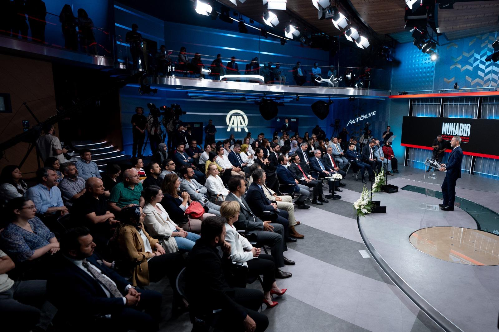 Anadolu Ajansı ve TRT başta olmak üzere bu köklü medya kuruluşlarımız, bir yandan habercilik mesleğinin nitelikli örneklerini ortaya koyarken diğer taraftan dünyada, küresel vicdanın sözcülüğünü üstleniyorlar. Bakınız şimdi Muhabir kitabını konuşuyoruz. Çok kısa bir süre önce ise İsrail'in dünyanın gözü önünde gerçekleştirdiği Gazze Soykırımı'nı anlatan Kanıt ve Tanık kitaplarının tanıtımını, Kanıt Belgeseli'nin galasını gerçekleştirdik. Esas itibariyle bütün bunlar, Muhabir de Kanıt da Tanık da aynı hakikat ve adalet mücadelesinin bir ürünüdür. Birbirini bütünleyen bir çabanın, aynı mesleki kaygıların ve ahlaki değerlerin bir ürünüdür. Biri olmadan zira diğeri olmaz, eksik kalır."