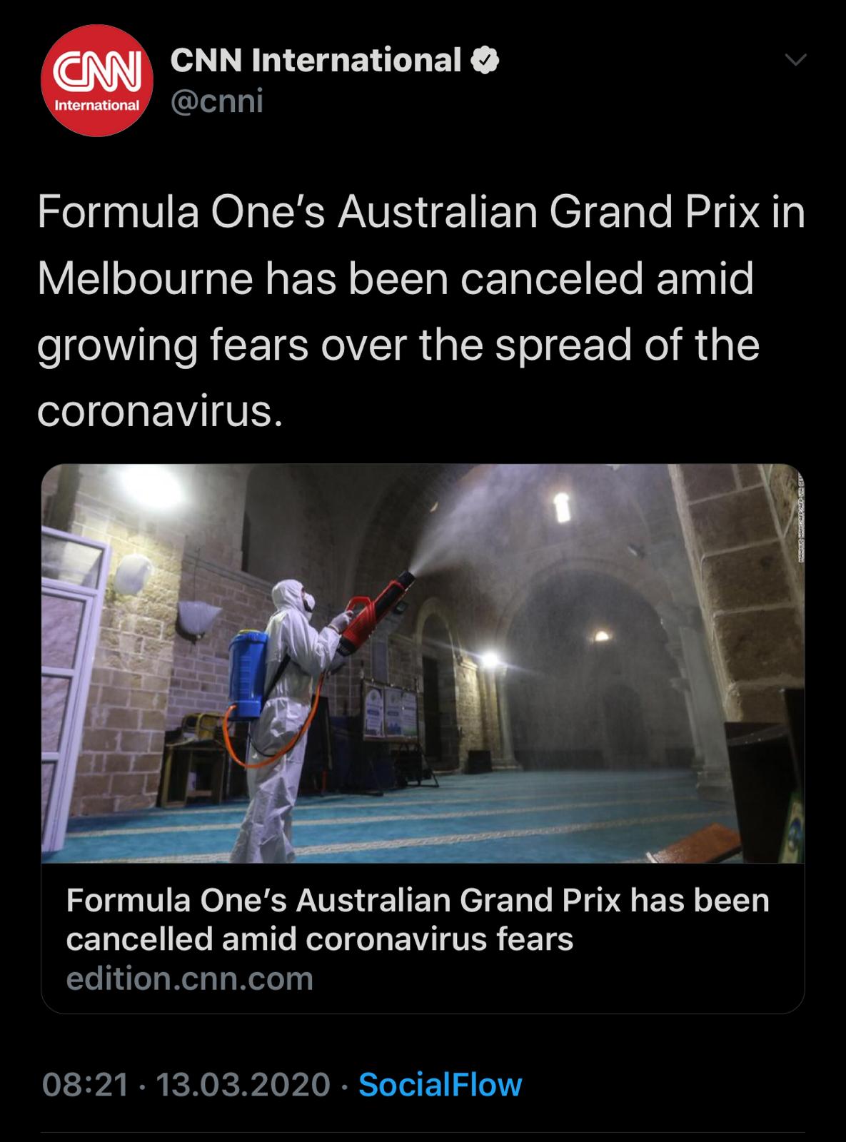 CNN International da Formula 1’in Avustralya’nın Melbourne kentinde yapılacak Grand Prix Yarışının iptali, İtalya’daki kalp cerrahi bölüm başkanı tarafından yapılan açıklama ve Capitol Complex’e kamu erişiminin askıya alınmasına dair açıklama haberlerini İstanbul’dan görsellerle yayınlamıştı.
