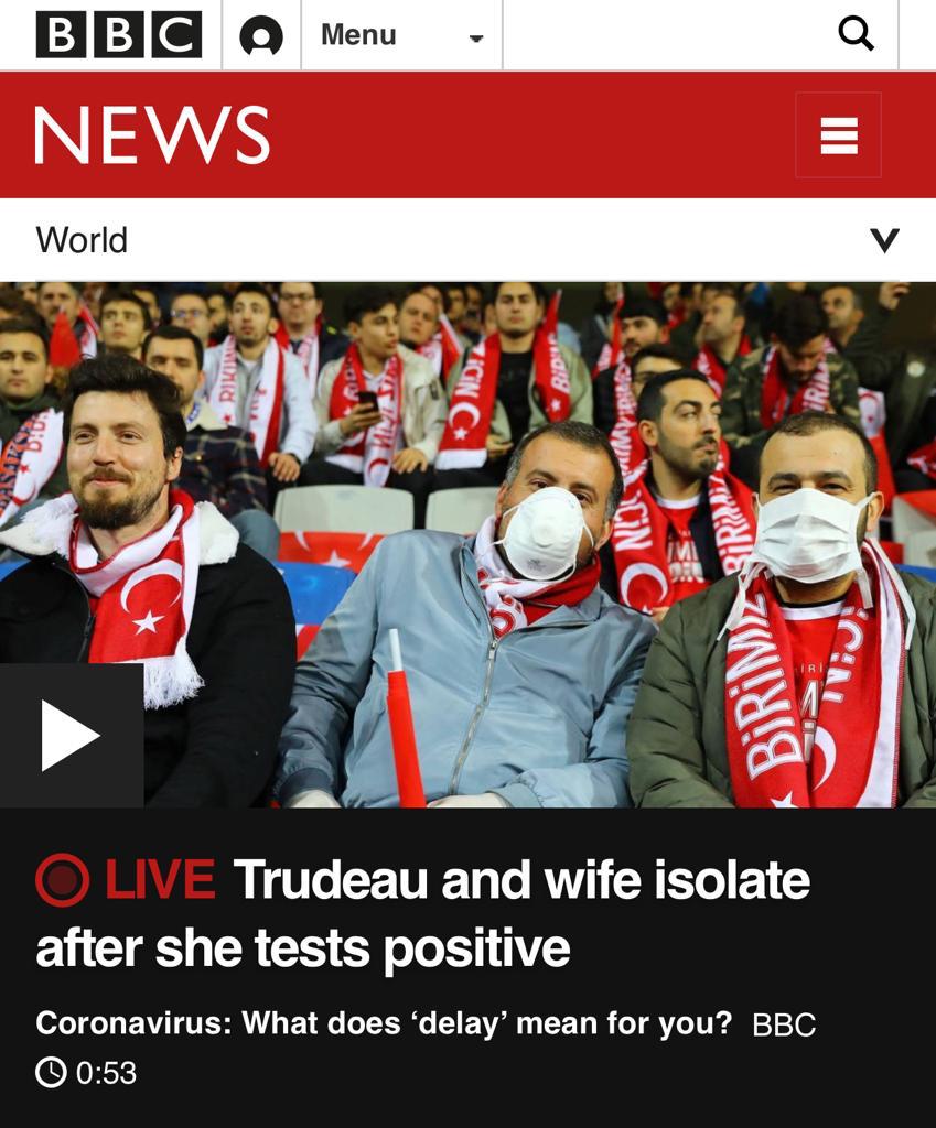 BBC ise Kanada Başbakanı Trudeau ile eşinin karantina altına alınması, ABD’nin seyahat yasağı ve İtalya’da dükkanların kapatılmasıyla ilgili haberlerinde Türkiye’den görsellere yer vermişti.
