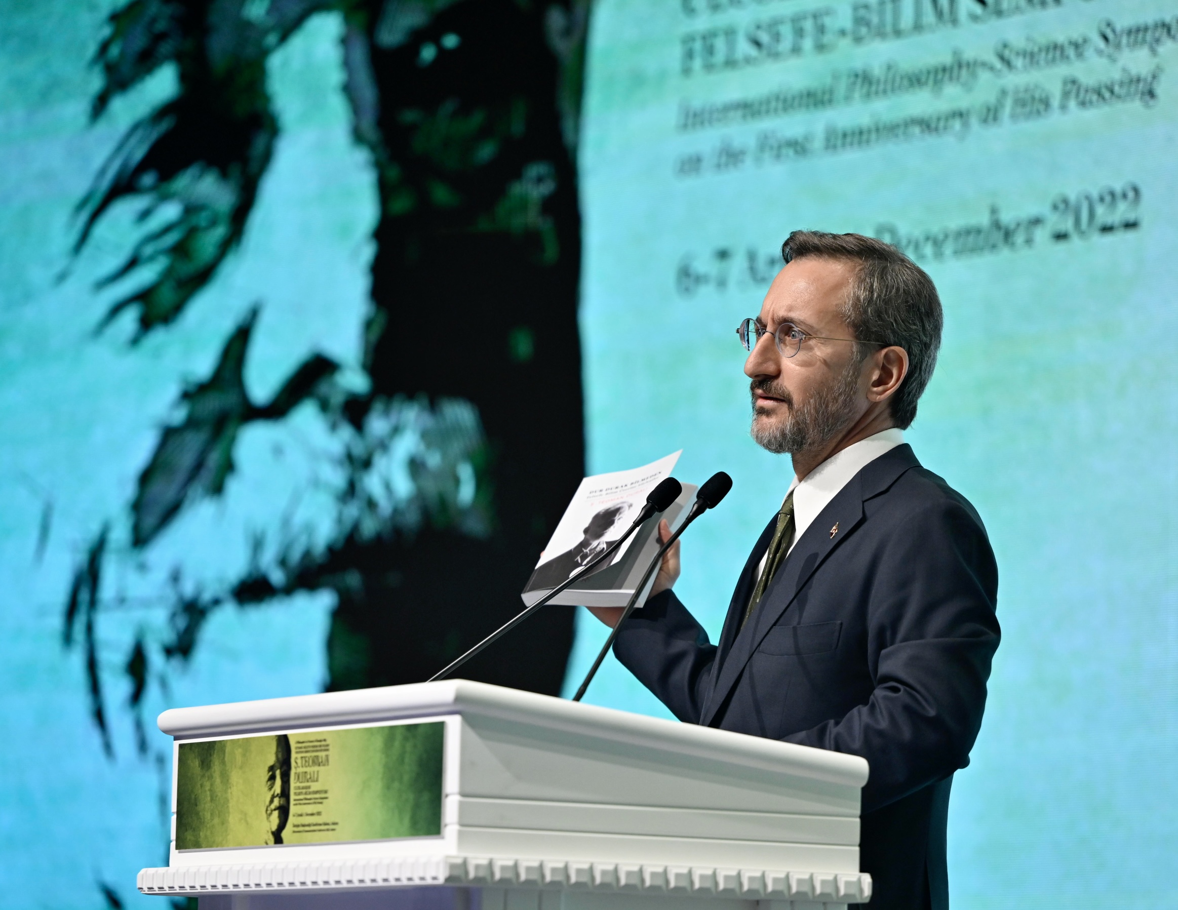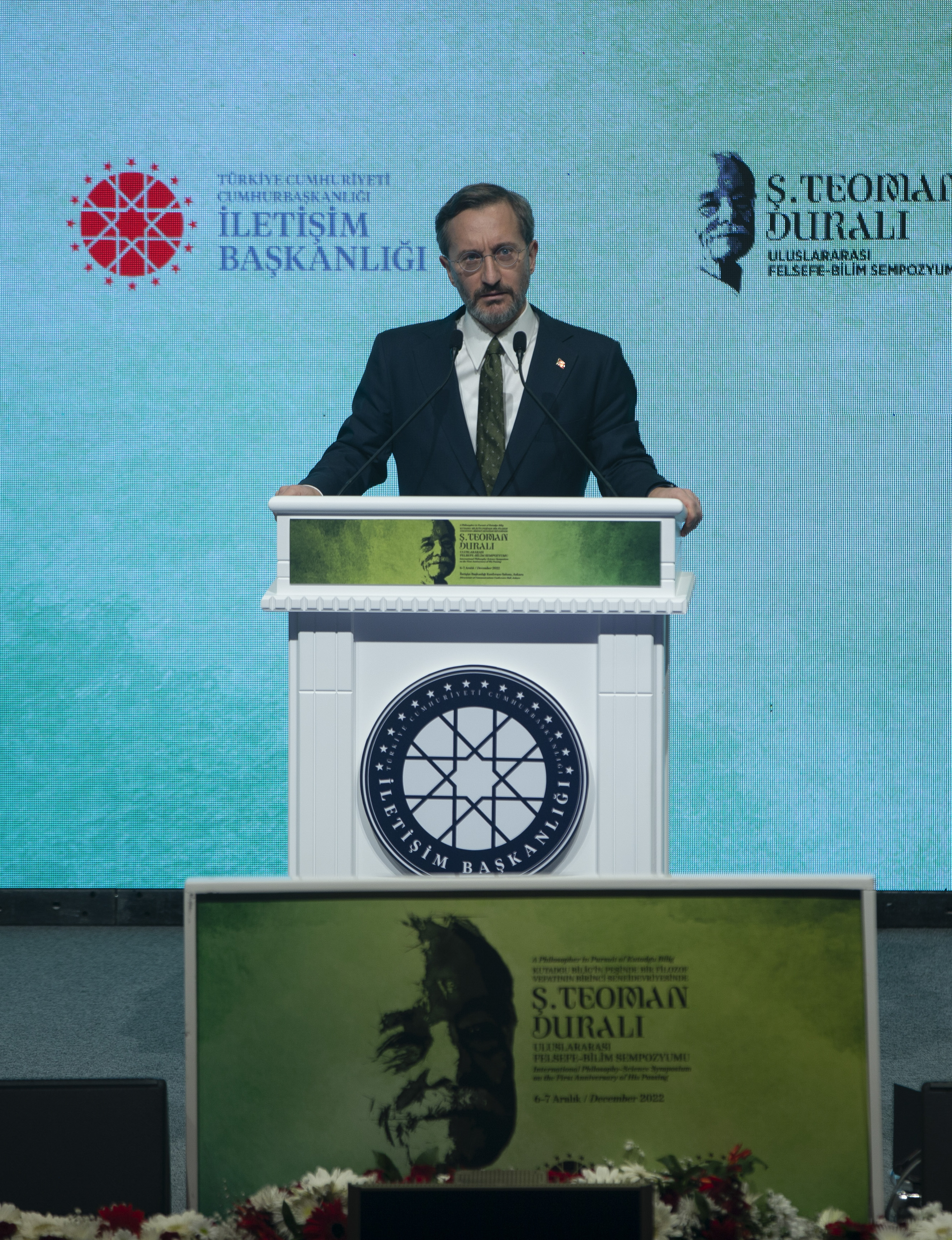 "Teoman Duralı'nın eserleriyle, dersleriyle, konferanslarıyla, televizyon söyleşileriyle, şiirleriyle, hatıralarıyla ortaya koymak istediği derin düşüncelerin ayrıntılı olarak ele alınması elzemdir. İşte buradan hareketle Cumhurbaşkanlığı İletişim Başkanlığı olarak bugünün dünyasıyla, tarihi ve medeniyetleri felsefi bir bütünlük içinde yorumlayan ufuk sahibi, yerli ve yetkin felsefecimiz Teoman Duralı'yı vefatının birinci yılında düzenlediğimiz bir sempozyumla anıyoruz.