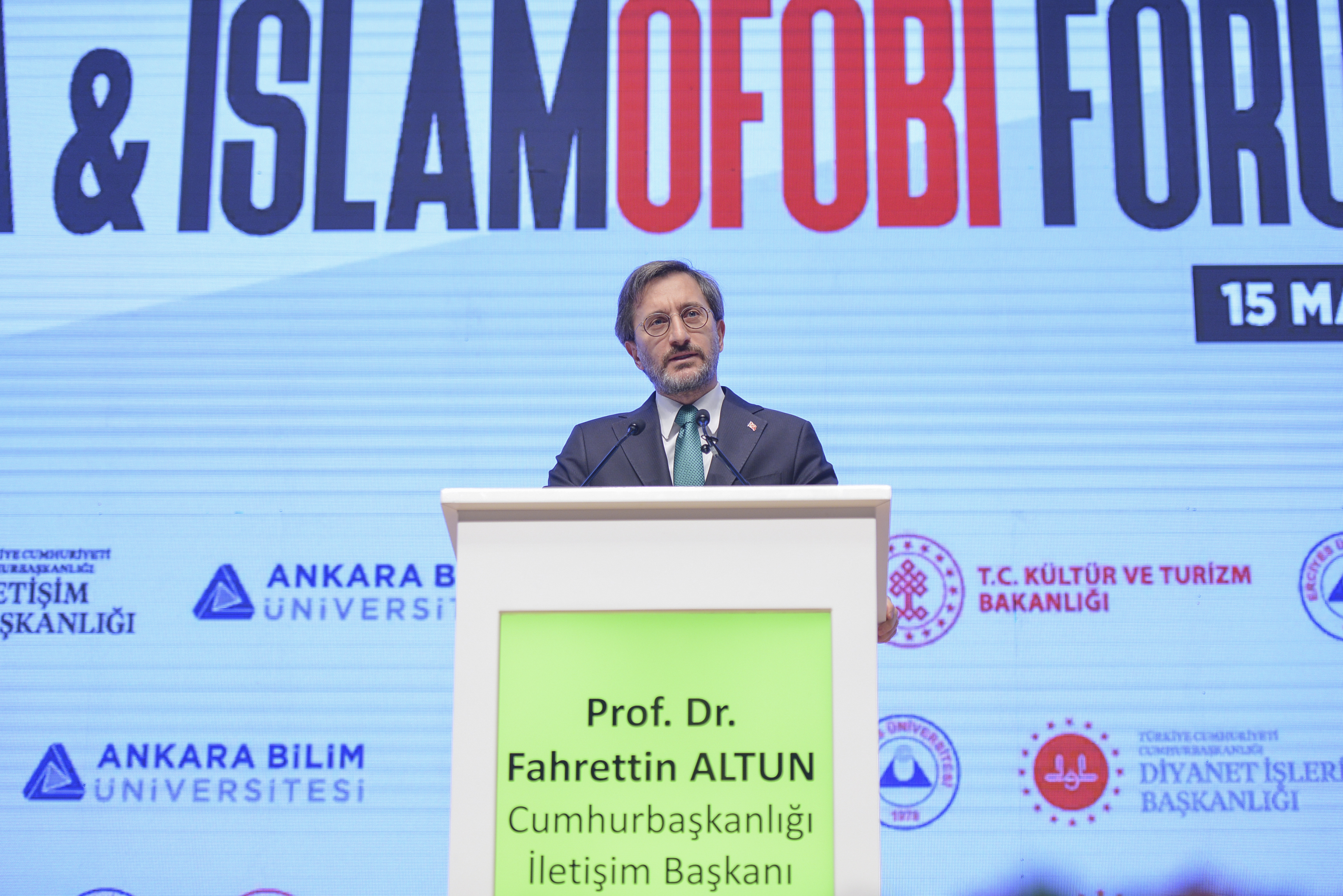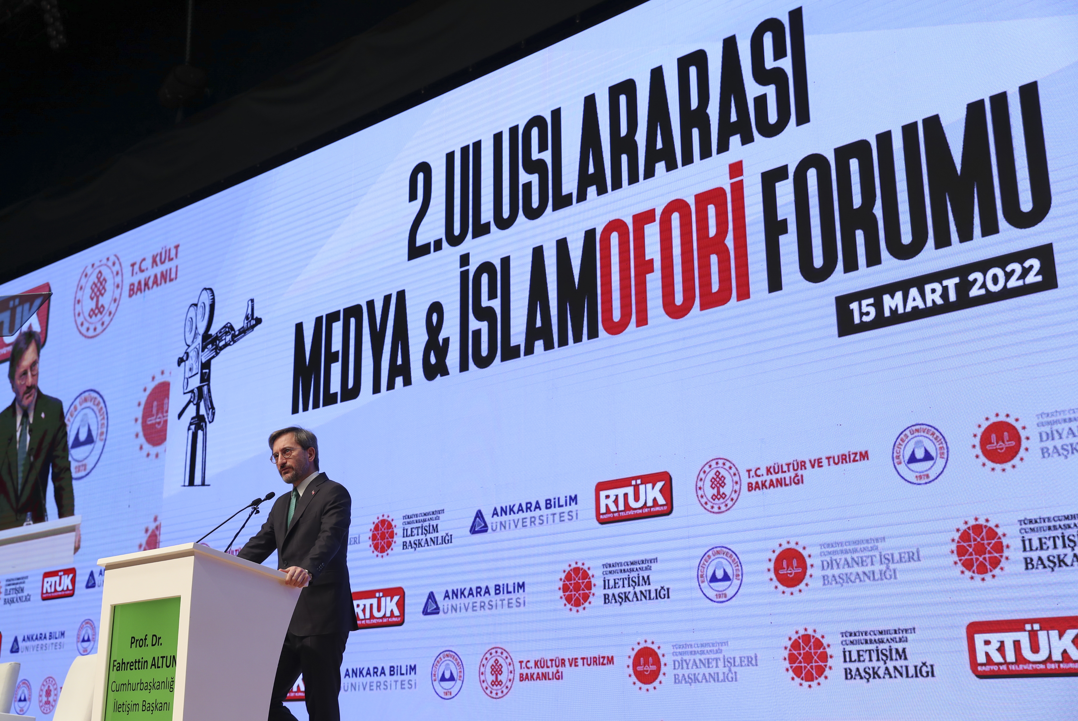 Cumhurbaşkanlığı İletişim Başkanı Fahrettin Altun, ATO Congresium'da düzenlenen 2. Uluslararası Medya ve İslamofobi Forumu'nda yaptığı konuşmada, "Türkiye, küresel düzeyde İslam düşmanlığıyla mücadelede sorumluluk alarak öncü bir rol üstleniyor. Sayın Cumhurbaşkanı'mız, bütün küresel sorunlarda olduğu gibi İslam düşmanlığıyla mücadelenin de liderliğini yapıyor." değerlendirmesinde bulundu.