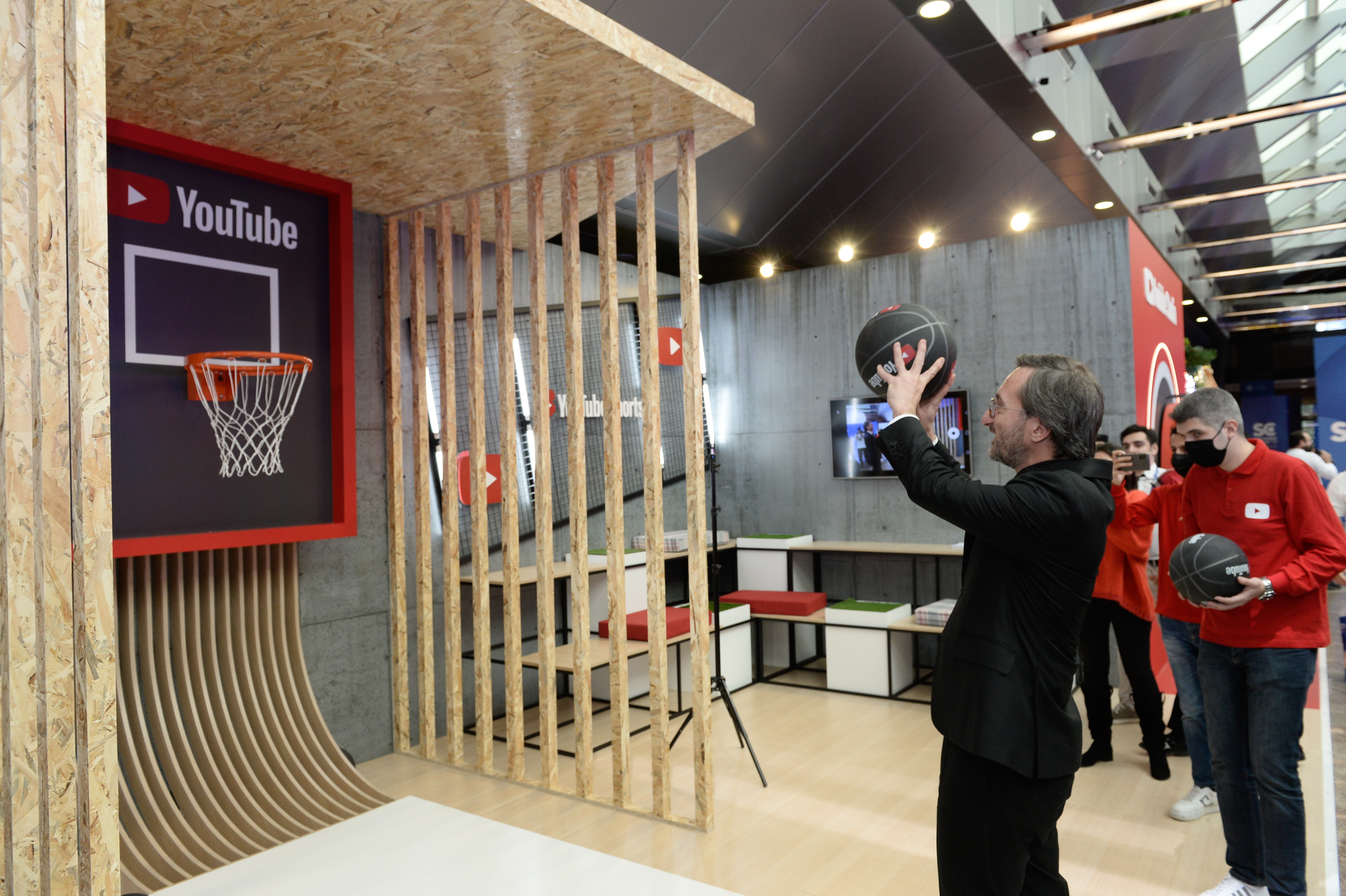 Gençlerin ilgi gösterdiği Zirve'de, YouTube'un kurduğu basketbol potasıyla katılımcılar basket atarak vakit geçiriyor.