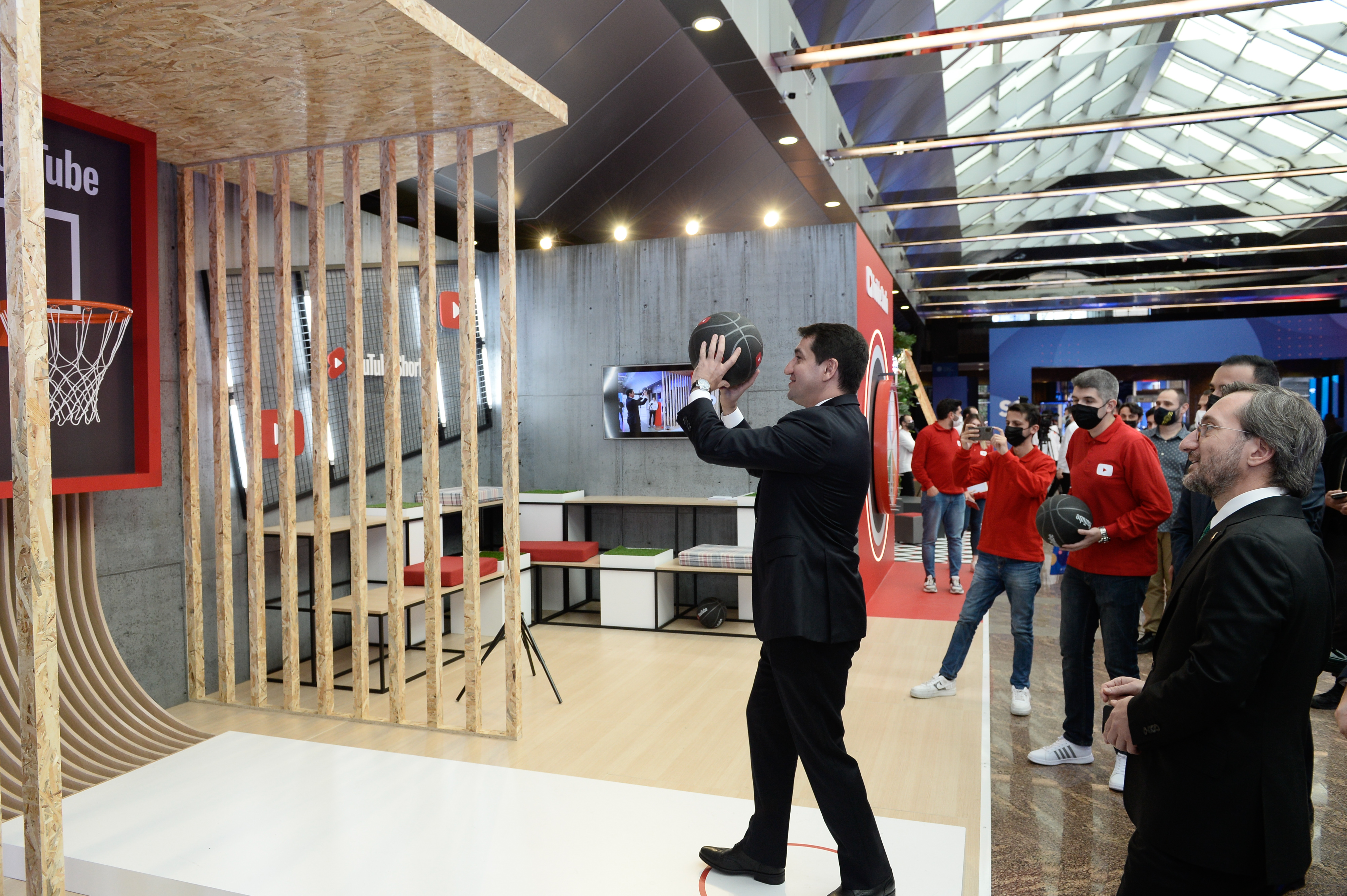 Açılış konuşmalarının ardından İletişim Başkanı Altun ve Azerbaycan Cumhurbaşkanı Yardımcısı Hacıyev de stantları gezerek, basket potasına atış yaptı.
